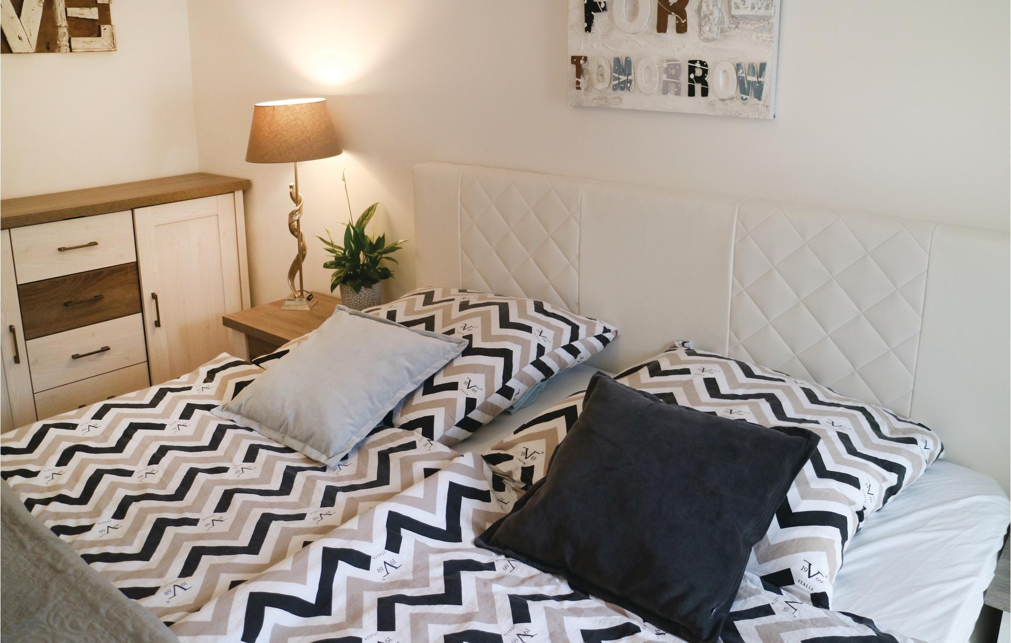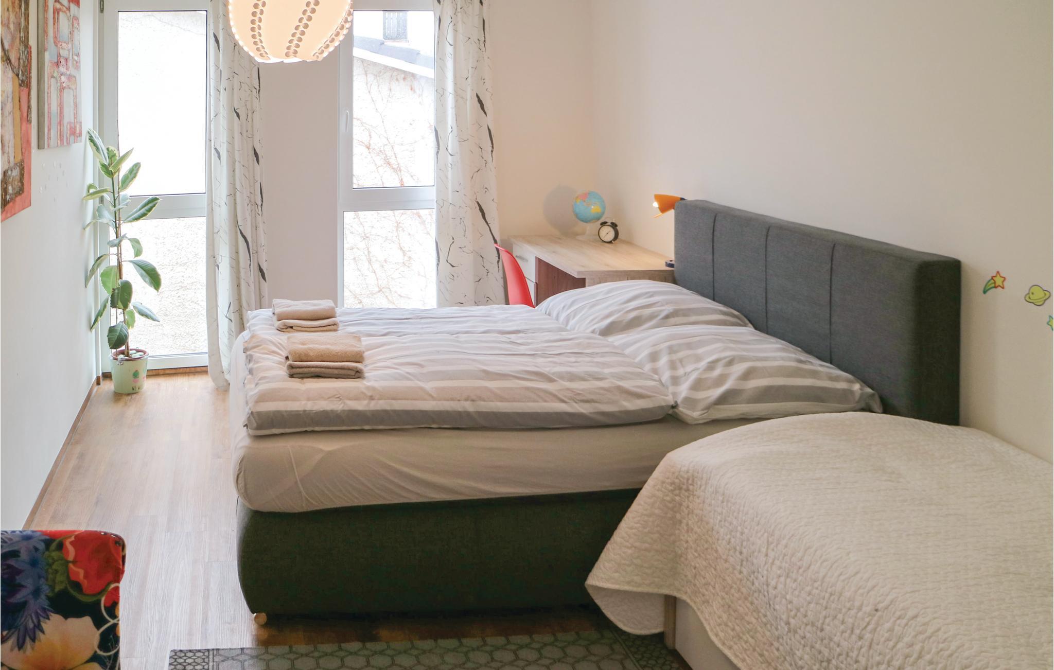 I de to soveværelser er der dobbeltsenge, den ene er Queensize. I stuen er der en soveplads til en. Der er parkeringsplads i parkeringskælder.