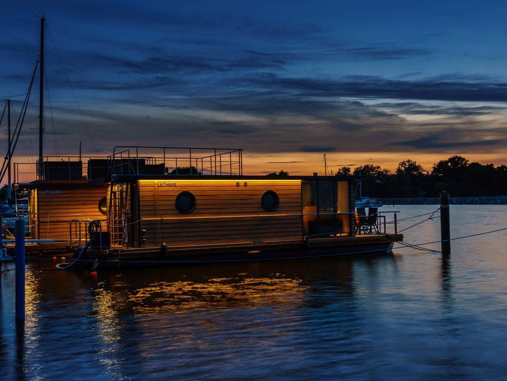 Dieses großzügige festliegende Hausboot in erster Reihe bietet Ihnen auf ca. 50 qm Bootsfläche den ganzen Komfort einer modernen und hochwertigen Ferienwohnung mit Sonnen- und Dachterrasse. Das besondere Highlight von Fjord POLARIS ist die Biosauna am Heck des Bootes.