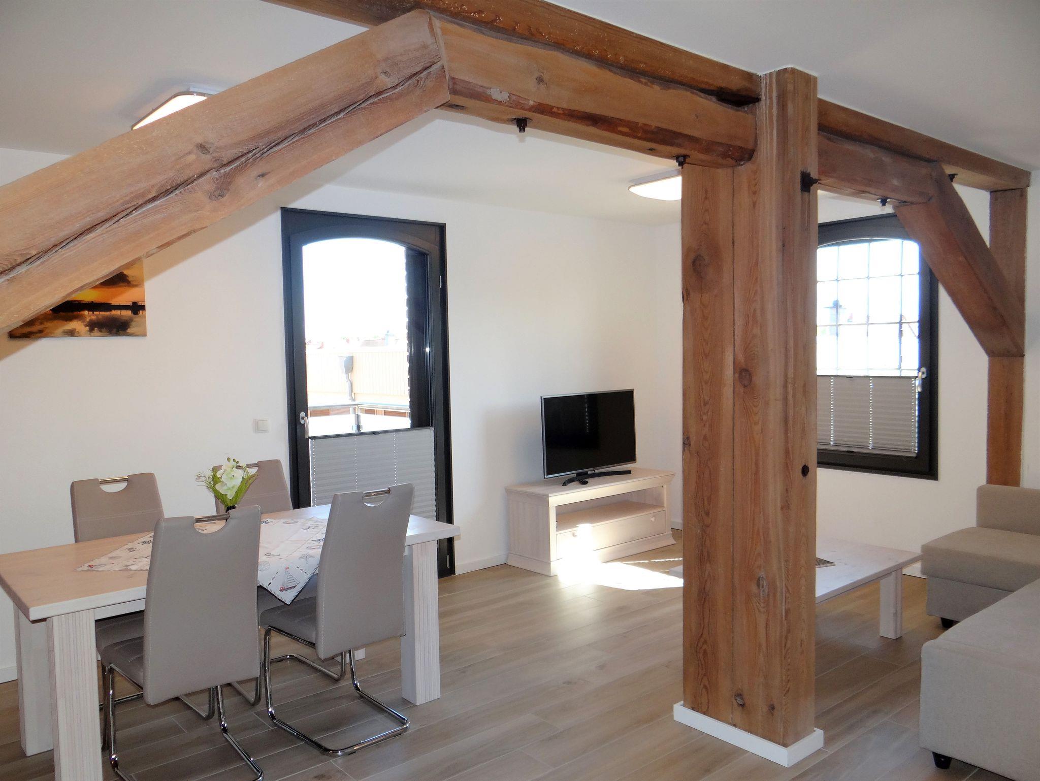 Willkommen in unseren aufwendig sanierten Apartments in einem ehemaligen Getreidespeicher am Barther Hafen. Diese exklusiven Unterkünfte bieten Platz für 1 bis 6 Personen und befinden sich auf der 2. Etage.