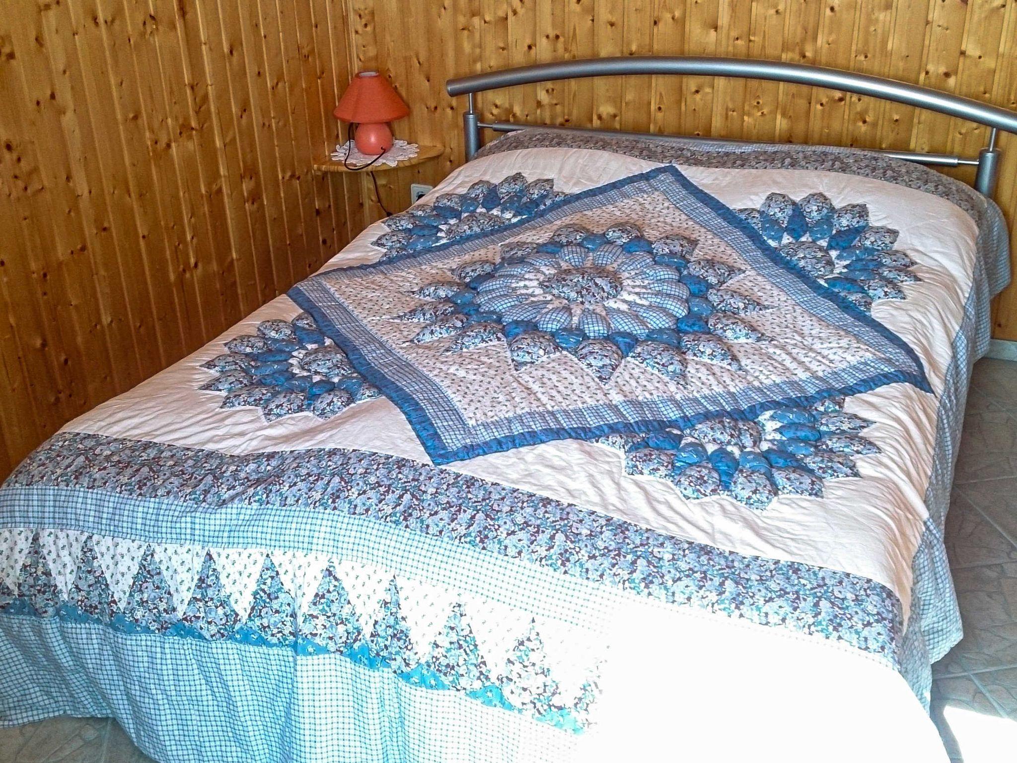 Der 28 m² große Bungalow besitzt ein Schlafzimmer mit französischem Doppelbett (140x200cm) für 2 Personen, eine Wohnküche mit Eckcouch, TV und Küchenzeile mit Kaffeemaschine, Toaster und Wasserkocher etc. sowie ein separates Bad mit Dusche und WC.