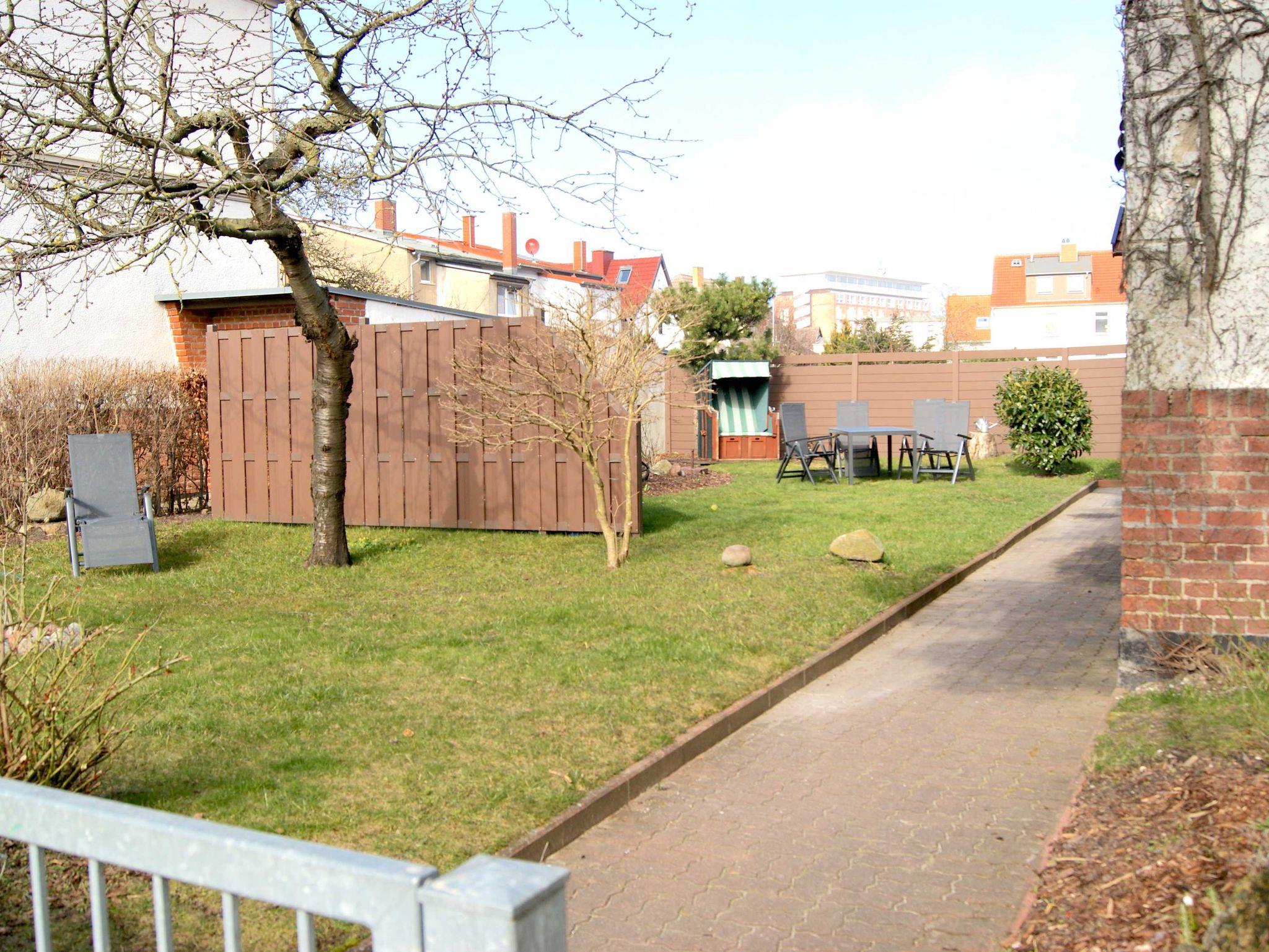 Über sieben Stufen ist die Wohnung im Erdgeschoss/Hochpaterre erreichbar. Der Garten liegt in östlicher Richtung und schützt den möglichen Aufenthaltsbereich durch einen Sichtschutz. Hier befindet sich auch der Strandkorb und die Aufnahme für die Wäschespinne. Die abschließbare Garage beherbergt einen Gasgrill, Gartenmöbel und die Wäschespinne. Dort besteht auch die Möglichkeit Fahrräder sicher unterzubringen. Im Kellergeschoss, mit ca. 1,70 m Deckenhöhe, befindet sich außerdem noch eine Waschmaschine, sowie ein Trockner. Es steht ein Stellplatz vor der Garageneinfahrt zur Verfügung.