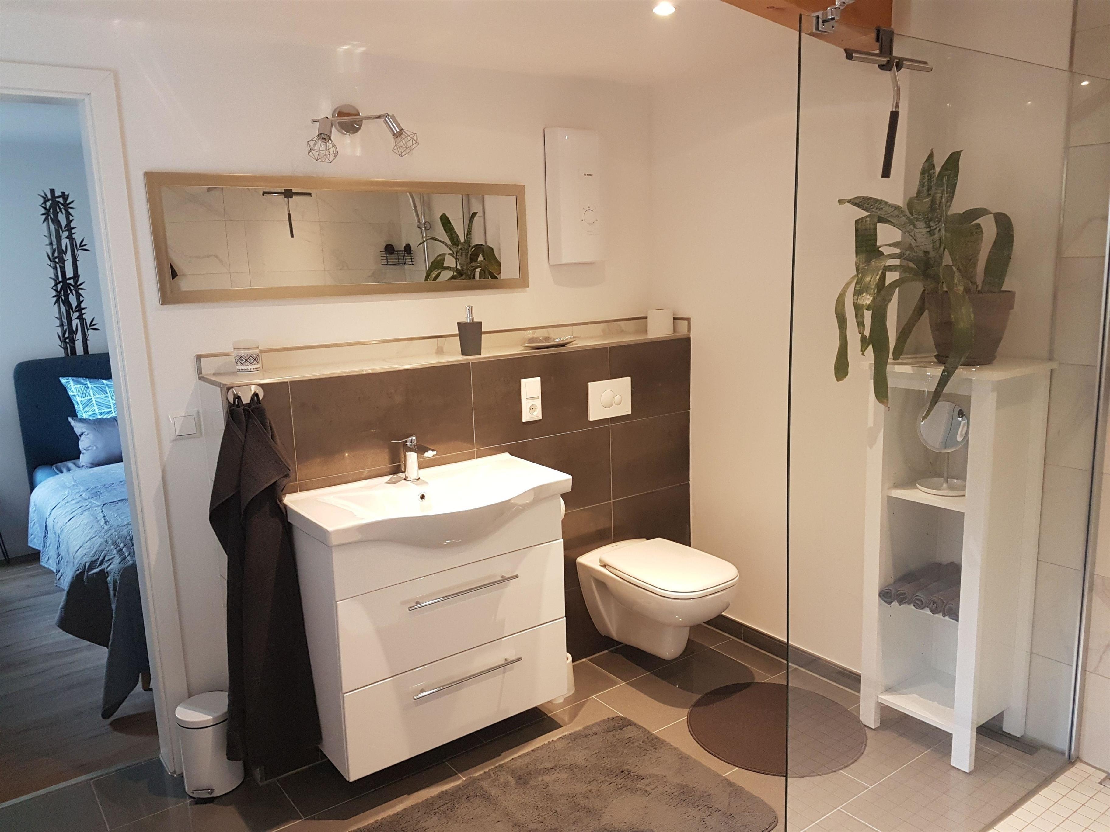 Die komfortable neu erbaute Ferienwohnung hat einen Wohn-Essbereich mit offener Küche, ein großes Duschbad und ein Schlafzimmer mit großem Doppelbett, mit dem Schlafsofa im Wohnbereich bietet die Wohnung für 2–3 Personen Platz.