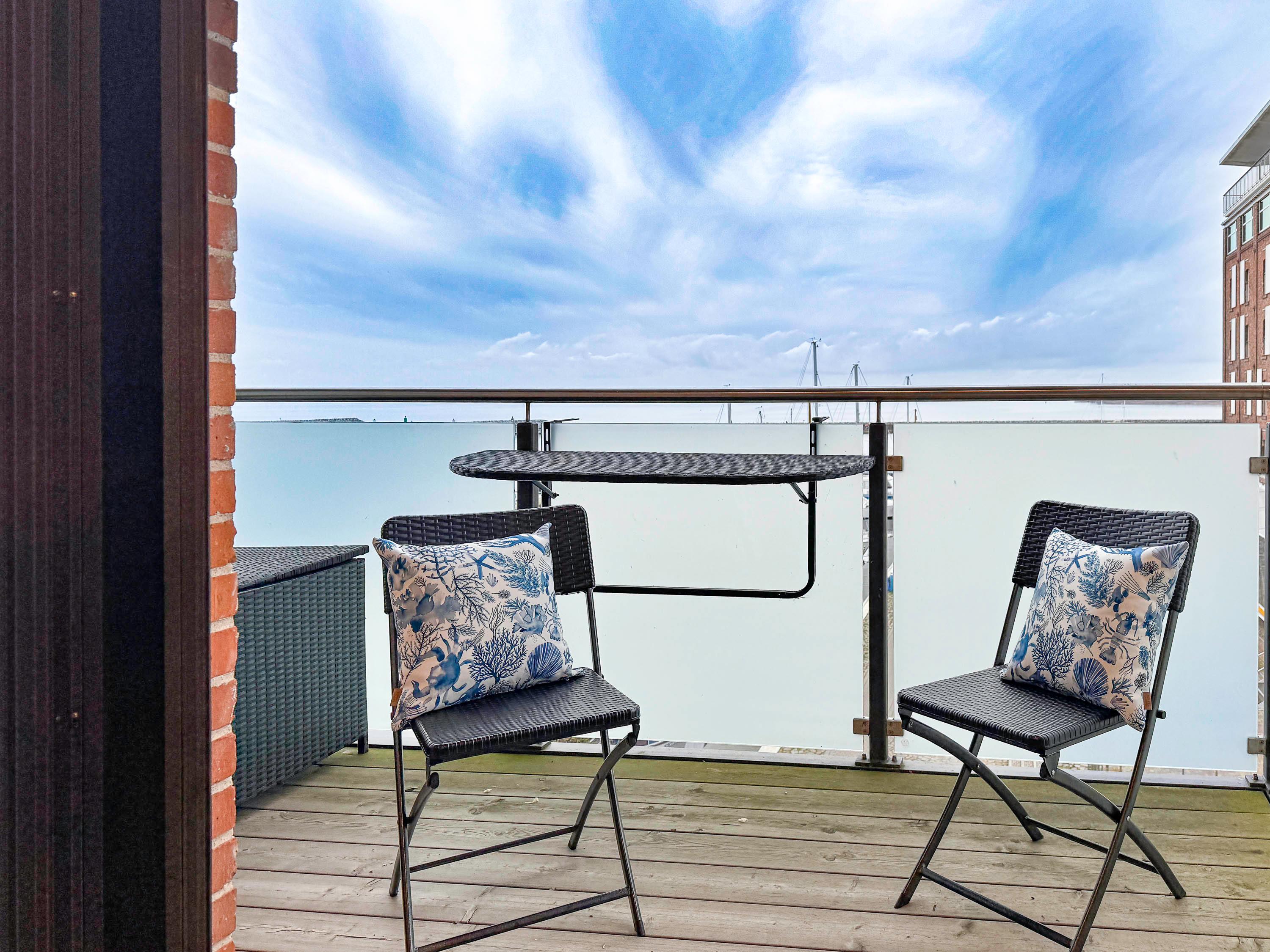 Die Speicherresidenz App. 3.1 empfängt Sie mit einer einladenden Atmosphäre. Der großzügige Wohnbereich mit Schlafcouch und Essplatz lädt zu gemütlichen Abenden ein. In der voll ausgestatteten Küche können Sie Ihre Lieblingsgerichte zubereiten, die Sie anschließend auf dem Balkon mit Wasserblick genießen können. Die Schlafzimmer bieten komfortable Ruhe, während das moderne Badezimmer mit ebenerdiger Dusche und ein zusätzliches Gäste-WC zusätzlichen Komfort bieten.