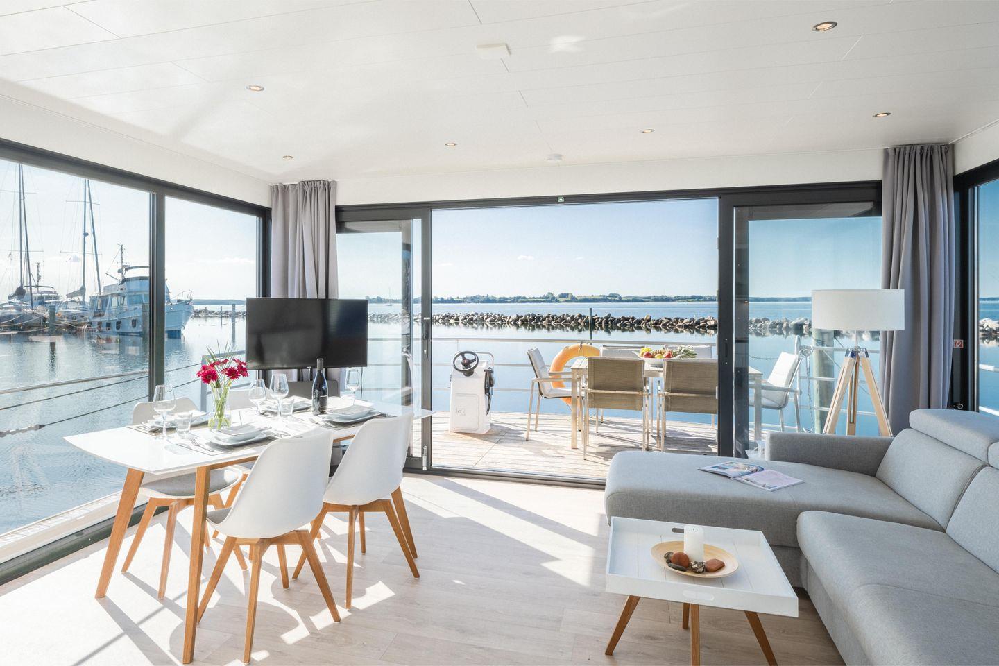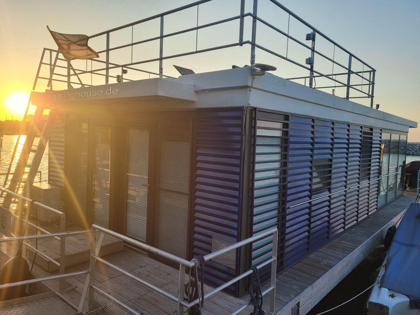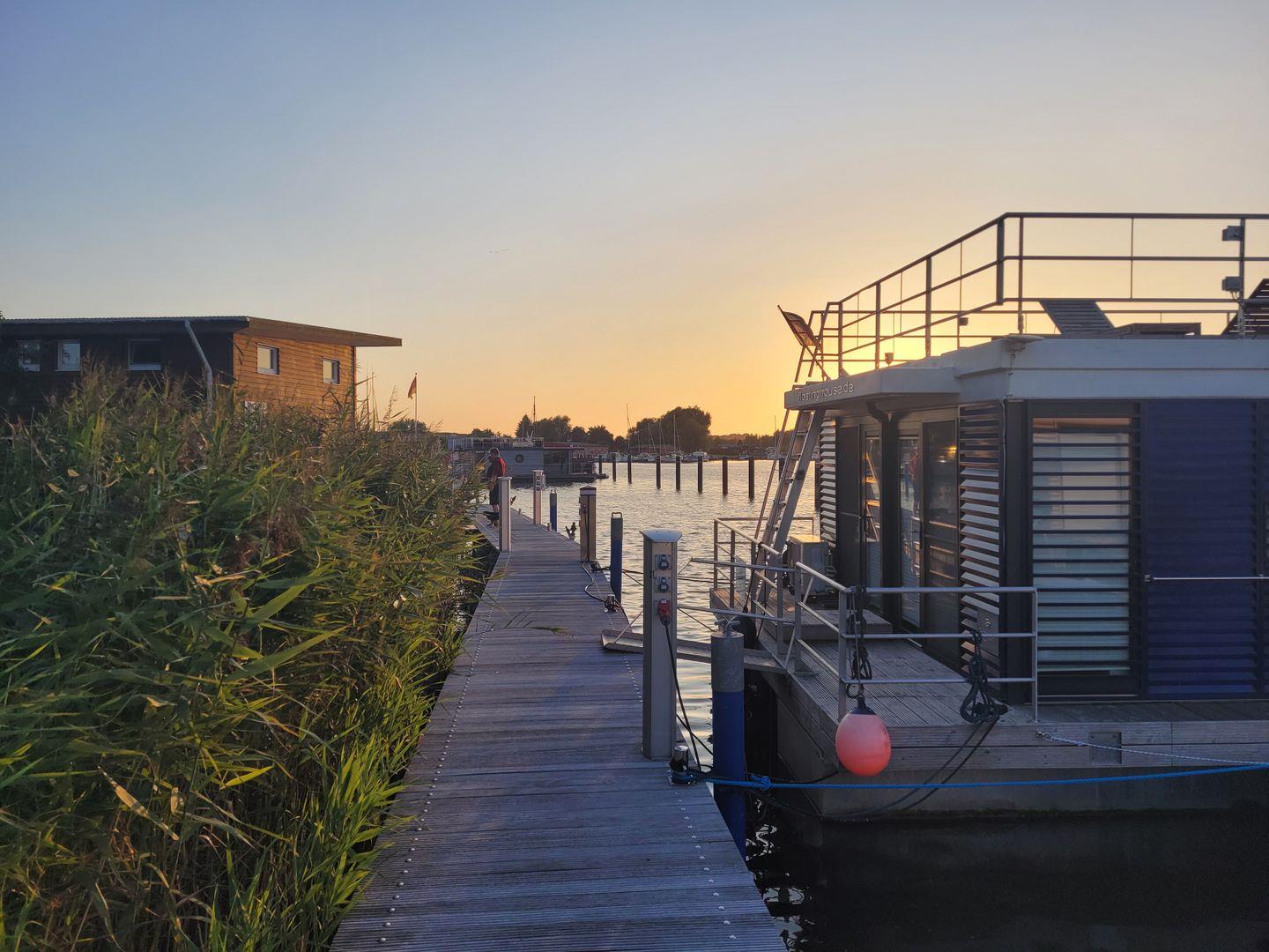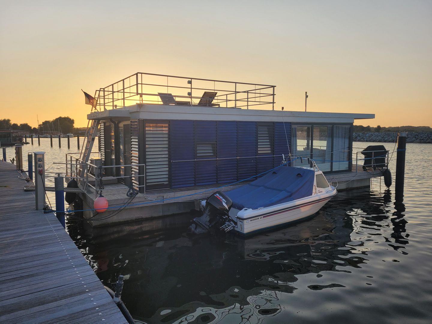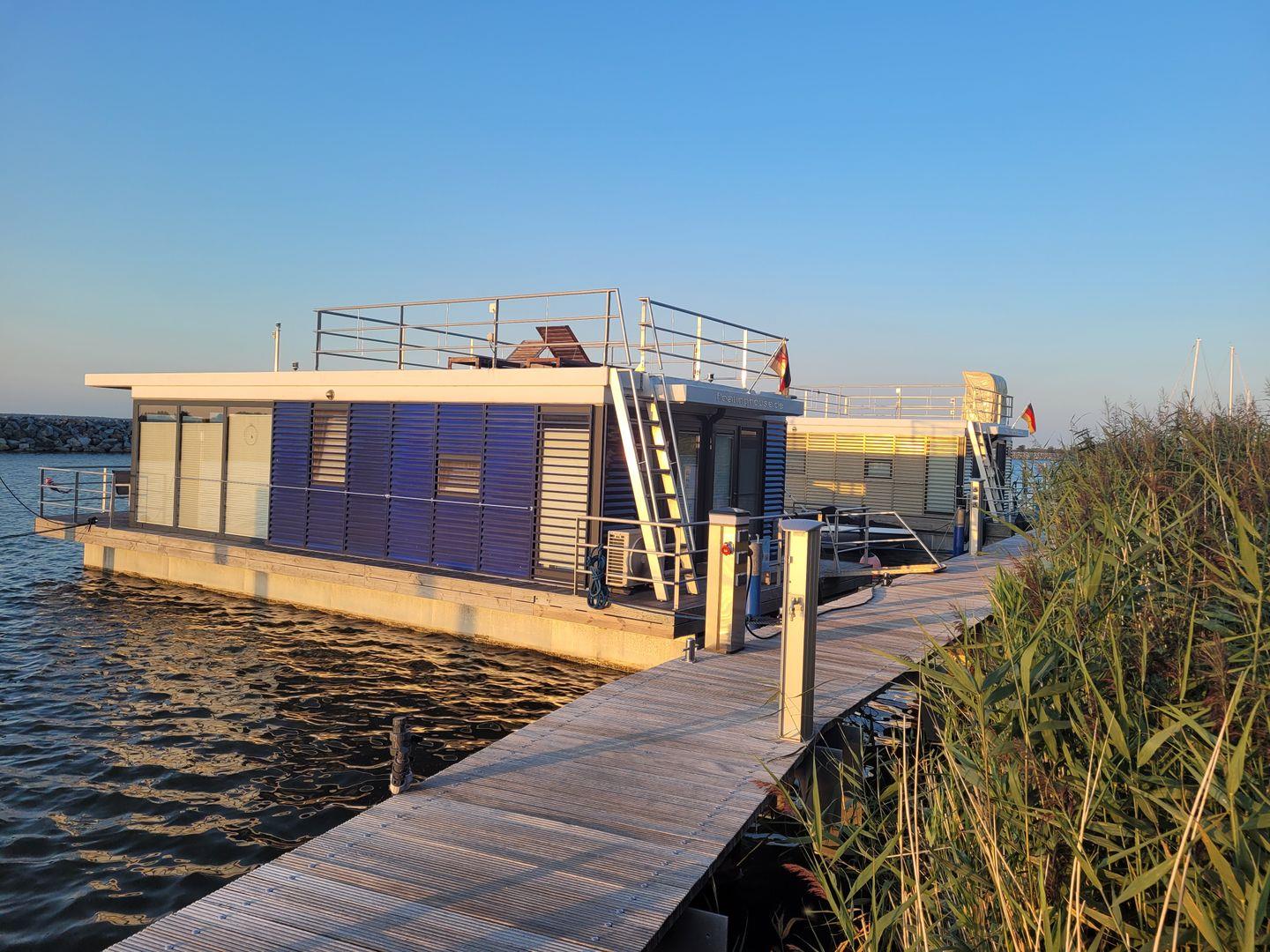 Hausboot "Fjordblik" -komfortables schwimmendes Ferienhaus im Barther Yachthafen