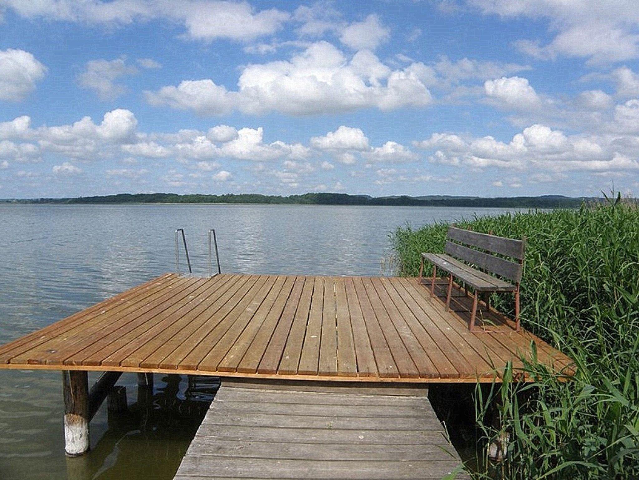 Das Bootshaus II bietet ein großes Wohnzimmer mit TV und zwei Balkonen im Obergeschoss. Hier ist eine Aufbettung möglich. Der Schlafraum mit Doppelbett, die Küche mit Geschirrspüler und Essecke sowie das Bad mit Dusche liegen im Untergeschoss. Das Ruderboot liegt direkt neben dem Haus. Eine Grillecke vor dem Haus steht zur freien Verfügung. Neben der Boothausanlage am Malchiner See gibt es einen kleinen Steg zum baden - den kleinen Strand. Von hier aus sind Angel-, Rad- und Wandertouren um den See möglich. Ruderboote, Kanus und Fahrräder können am großen Strand (ca. 1km entfernt) ausgeliehen werden.