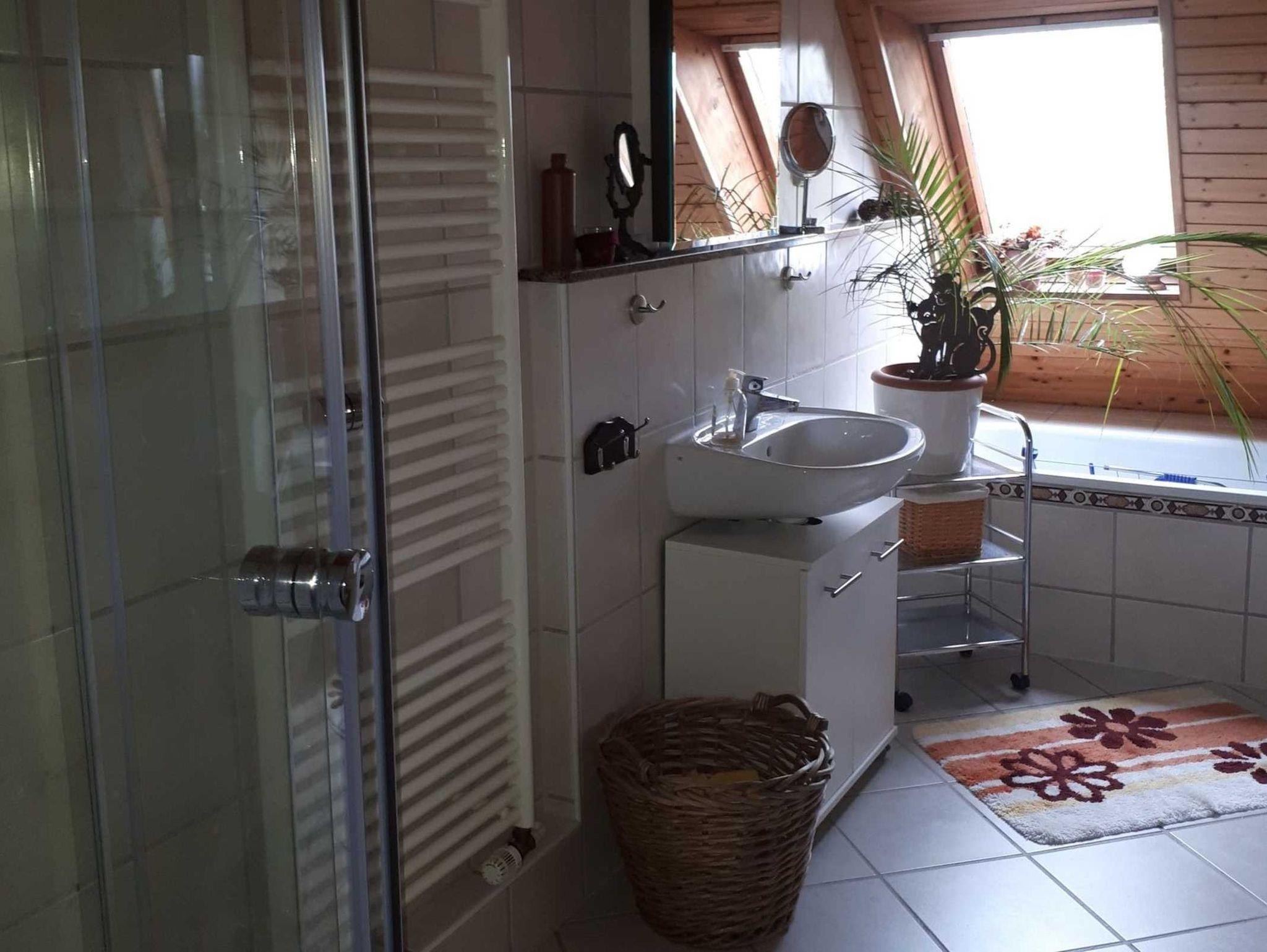 • ein Bad mit Dusche und Badewanne