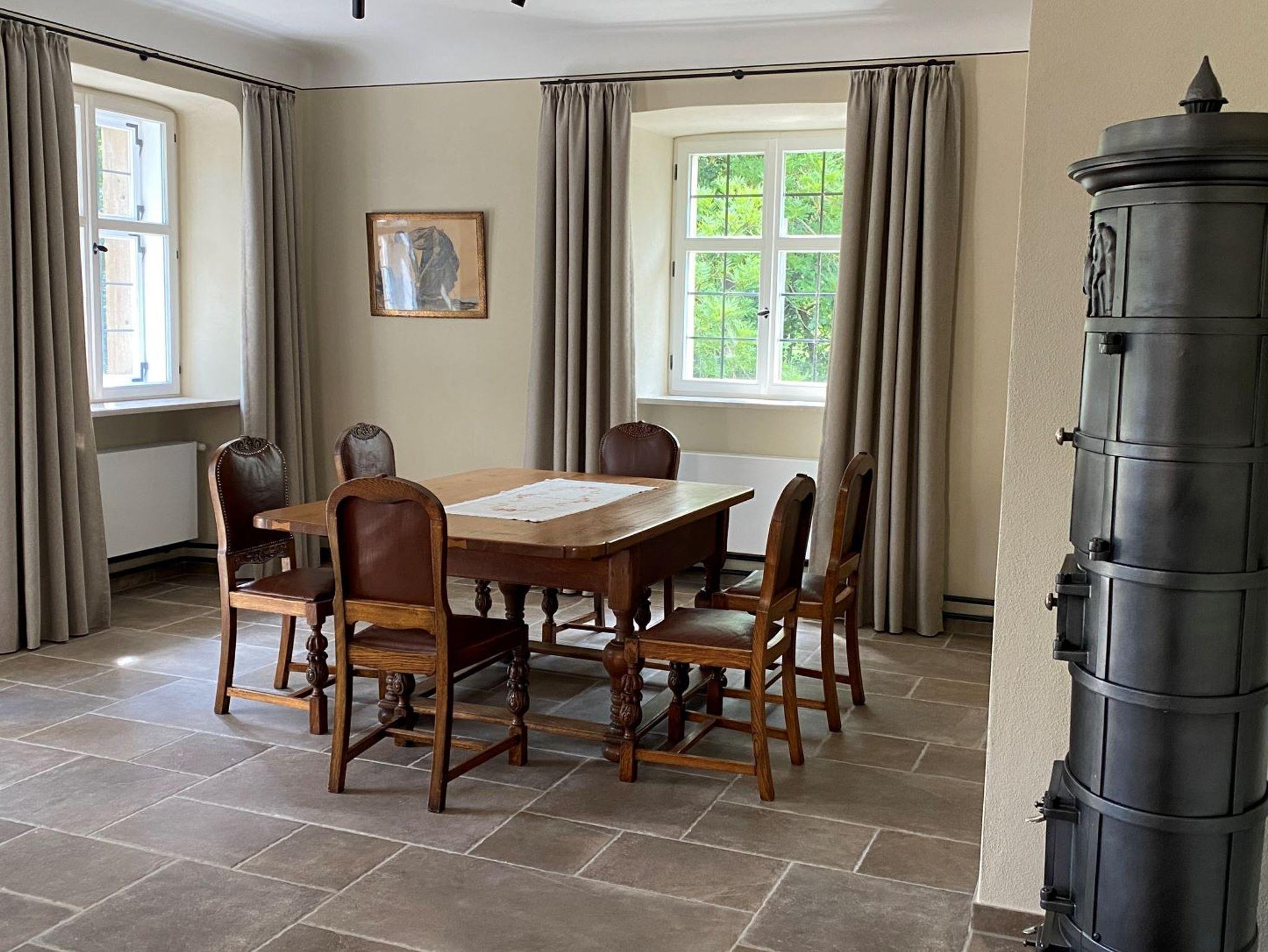 Weiterhin steht Ihnen unser weitläufiger Garten mit Schwimmteich zur Verfügung. Auch der romantische Innenhof lädt zum Verweilen ein. Neben der modernen Pelletszentralheizung schaffen Guss- und Kachelofen auch im Winter eine wohlige und heimelige Atmosphäre.