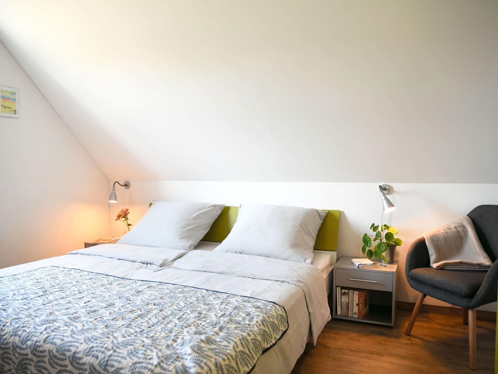 Jedes Haus bietet mit je 85 qm, auf 2 Etagen verteilt, ausreichend Platz für bis zu 5 erwachsene Gäste und 2 Kleinkinder bis 2 Jahre. Drei großzügige Schlafzimmer, 2 Dusch-Bäder, eine große Sauna und ein gemütlicher Wohn- Essbereich mit Kamin und angrenzender Terrasse mit freier Sicht zur Ostsee machen den Aufenthalt hier wirklich angenehm.