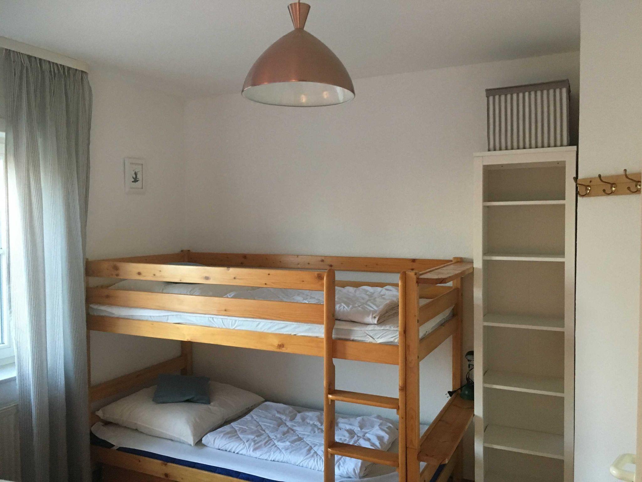 Für kleine Kinder sind ein Baby-Hochstuhl sowie ein Kinderessstuhl (ab 4 Jahre) vorhanden. Das Schlafzimmer verfügt über ein Doppel- und ein Etagenbett sowie geräumige Kleiderschränke; Platz für ein Baby-Reisebett ist vorhanden. Angrenzend zum Schlafbereich befindet sich ein Duschbad mit WC. Wäschepakete (Bettwäsche, Handtücher, Duschvorleger, Geschirrhandtücher) können für 14 EUR/Person auf Wunsch dazu gebucht werden.