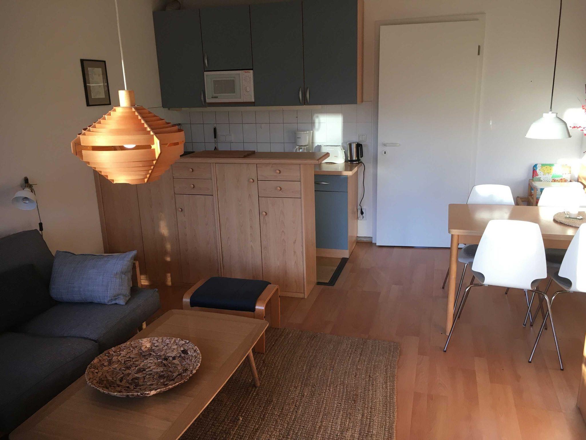 1 Wohn- und 1 Schlafraum, vollausgestattete Küche mit Küchenzeile.