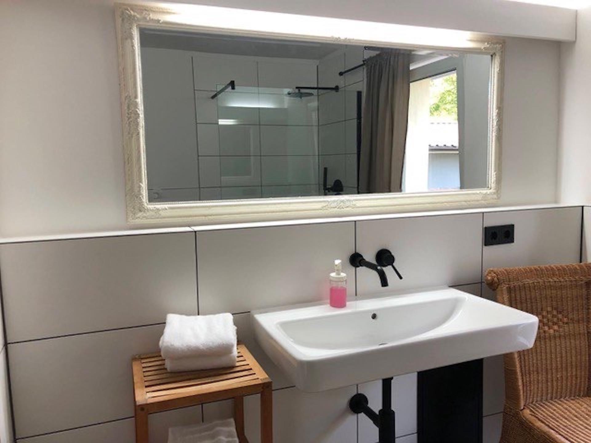 Zwei Schlafzimmer mit jeweils einem Doppelbett (Boxspring), eine große Wohnküche (komplett ausgestattet), Veranda und Terrasse am großen Duschbad. Komplett renoviert 2023.