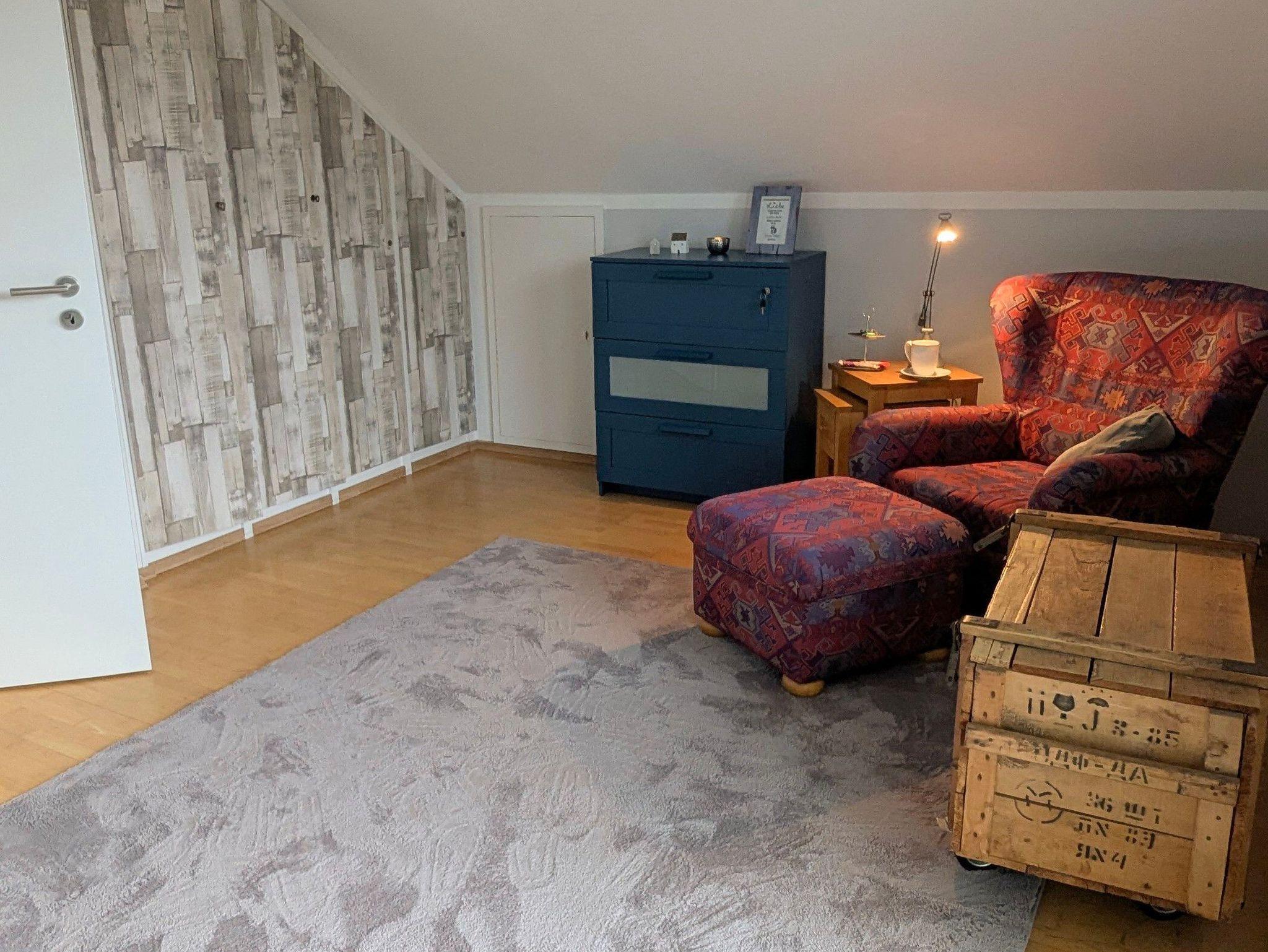 Im Schlafzimmer : 1,40 m Bett, Leseecke mit gemütlichem Sessel, Balkon mit Sitzbereich