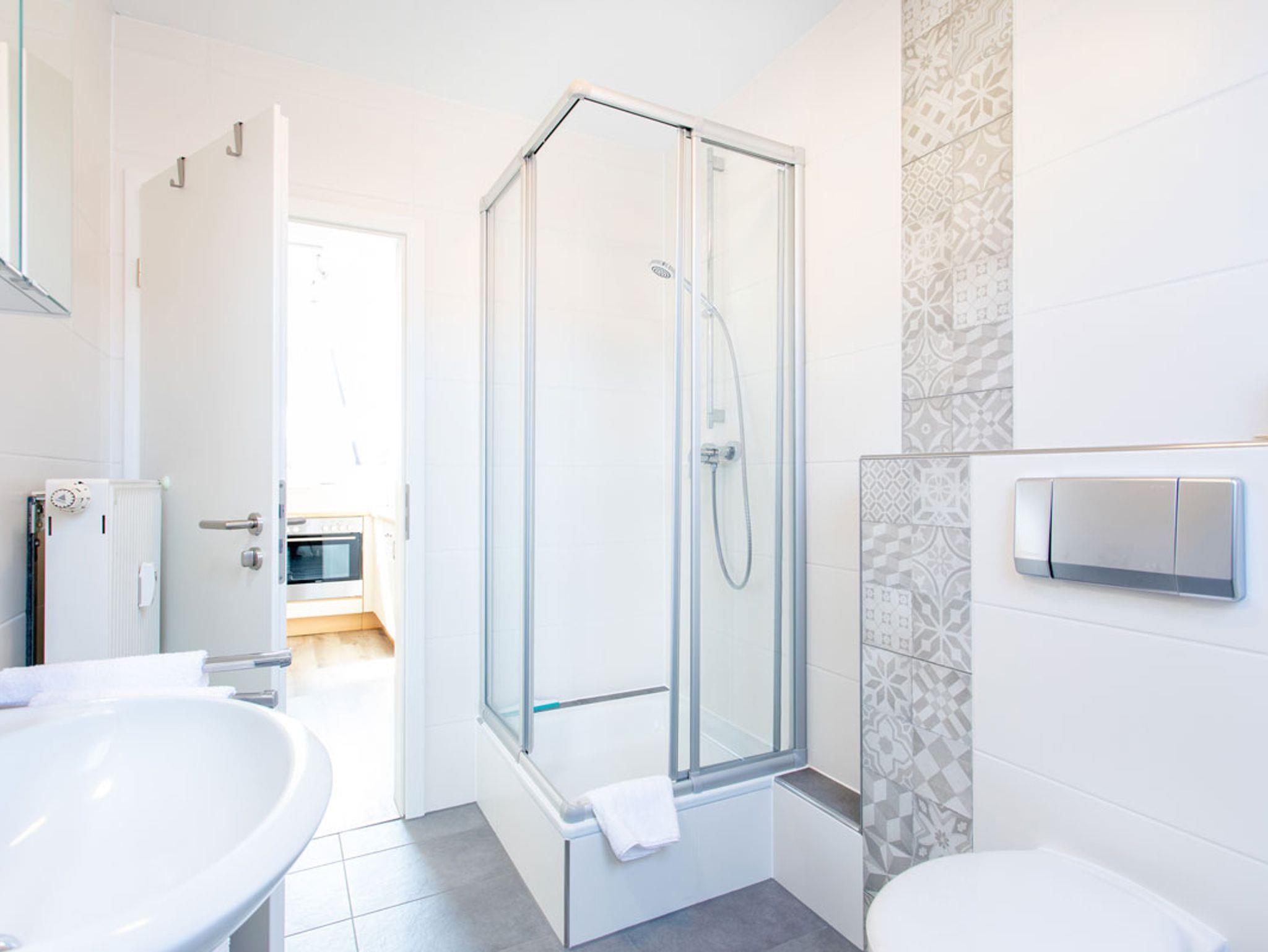 Unsere moderne Nichtraucher-Ferienwohnung mit 50m² Wohnfläche bietet Platz für bis zu 5 Personen. Das gemütliche Wohn-Esszimmer mit Schlafsofa, Esstisch und Flachbild-TV lädt zum Verweilen ein. Die komplett ausgestattete Küche mit Geschirrspüler, Kühlschrank, Herd, Backofen, Mikrowelle, Eierkocher, Toaster und Gewürzen lässt keine Wünsche offen. Die Ferienwohnung verfügt über 2 Schlafzimmer mit einem Doppelbett und zwei Einzelbetten, je einem Schrank und einer Kofferablage. Das geräumige Badezimmer mit Dusche, Badewanne, WC, Spiegel und Fön rundet das Gesamtbild ab. WLAN, Handtücher, Bettwäsche und Geschirrtücher stehen Ihnen kostenfrei zur Verfügung.