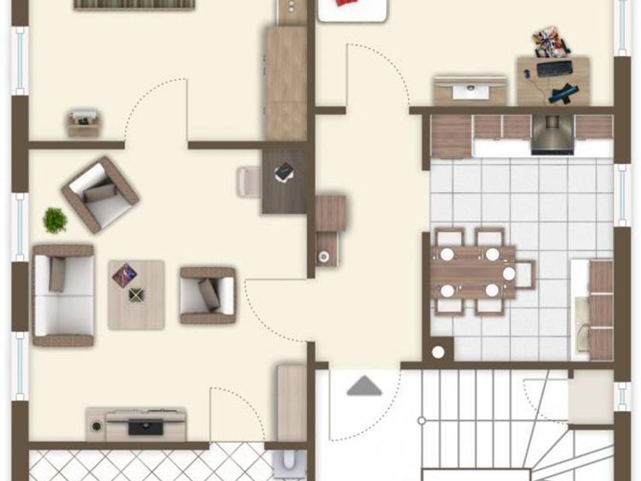 2 Schlafzimmer (1x Doppelbett, 2x Funktionsbetten) Wohnzimmer mit Schlafsofa max. 8 Personen