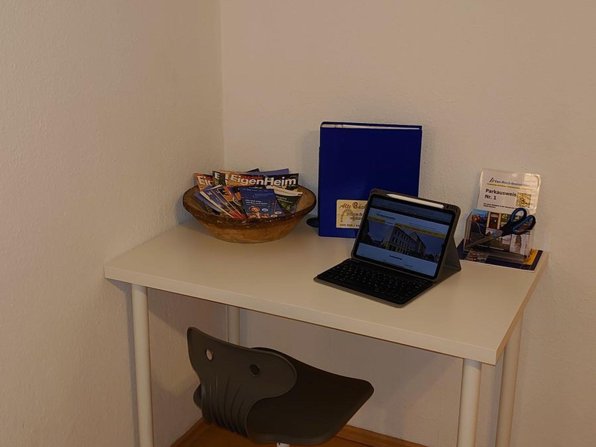 Zum Objekt gehört ein eigener Parkplatz, Garten mit Sitzmöglichkeit, sowie kleiner Innenhof mit Sitzecken. In den Wohnungen selbst gibt es Küchen mit üblichen Geräten zur Selbstversorgung (Supermarkt gegenüber) und teils Esstresen für einen schnellen Start in den Tag. Bäder mit Dusche, Wohn- & teils Esszimmer und Schlafzimmer oder auch Kinderzimmer mit Doppelstockbetten, sodass Sie bis zu acht Personen entspannt unter bekommen. Für Business Gäste haben wir Wohnungen mit Schreibtischen und schnellen Internet, neben W-LAN gibt es teils auch Lan-Dosen.