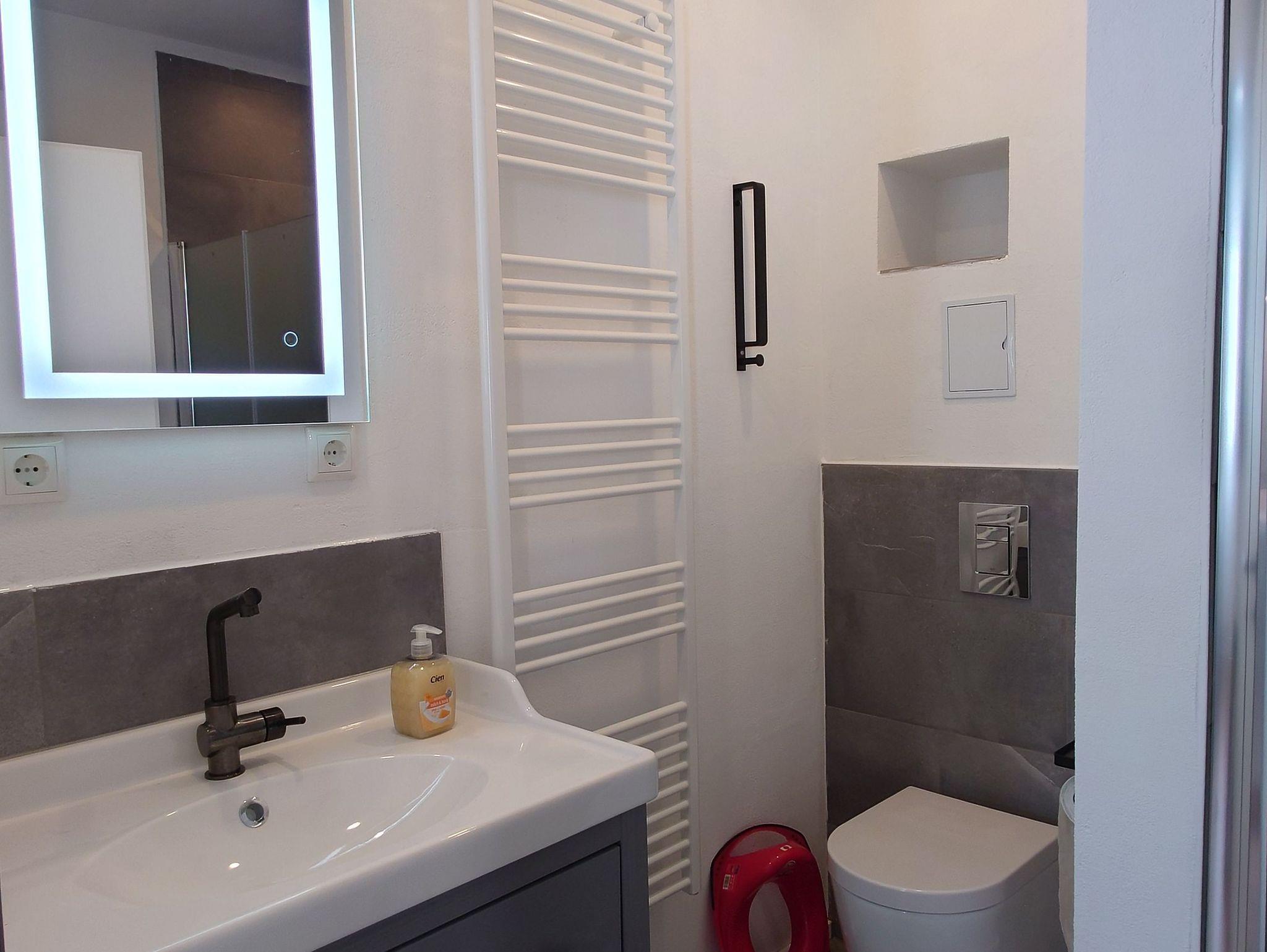 In der Wohnung gibt es ein Etagenbett für Kinder, zwei Doppelbetten, Schlafsofa, Einzelbett, sowie Wickeltisch und Babybett im Hauptschlafzimmer. Highlight ist die offene Küche mit großzügigem Essbereich, ideal für ein Essen mit der großen Familie, samt Kamin. Modern, hell und reichlich Platz.