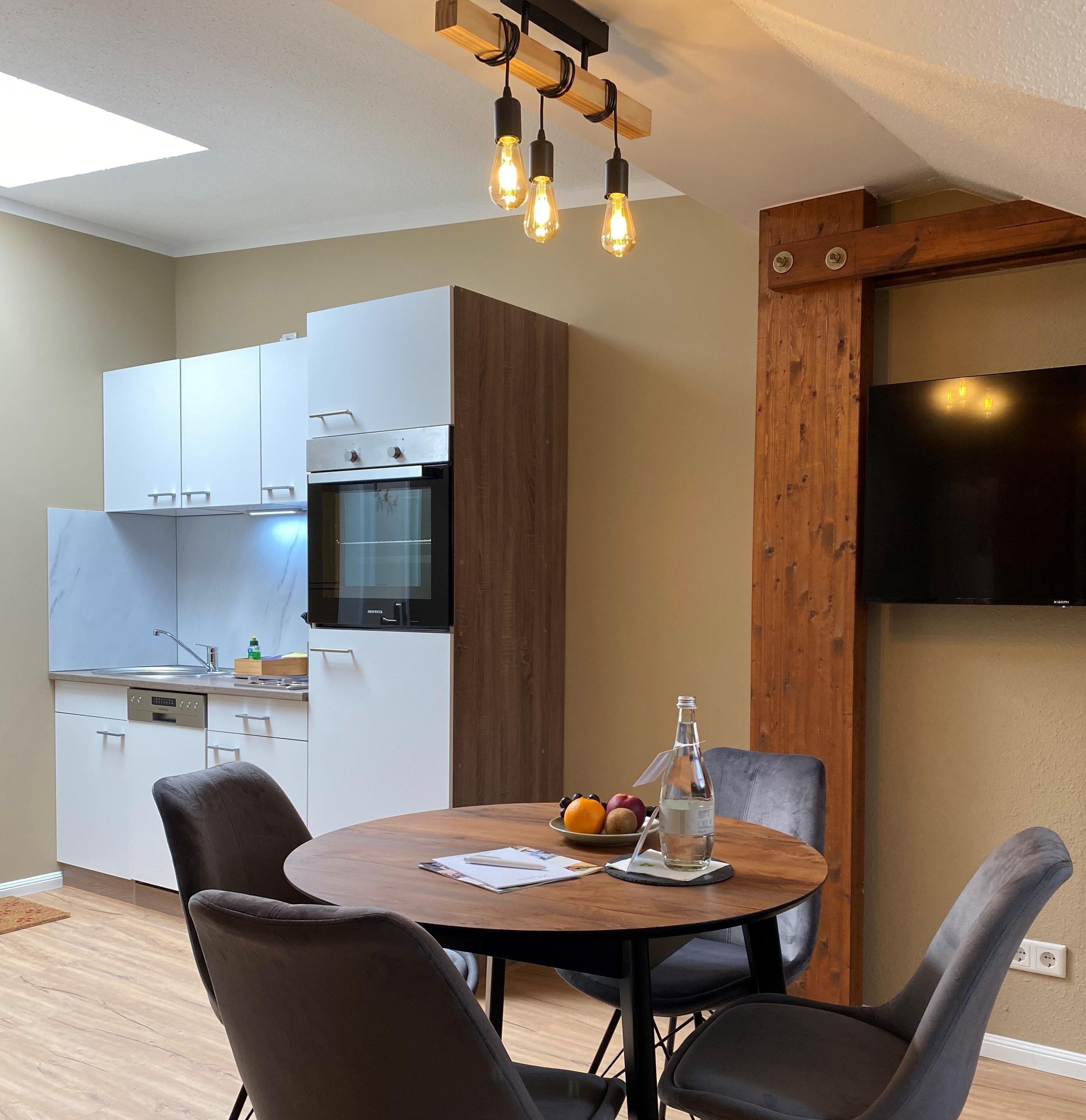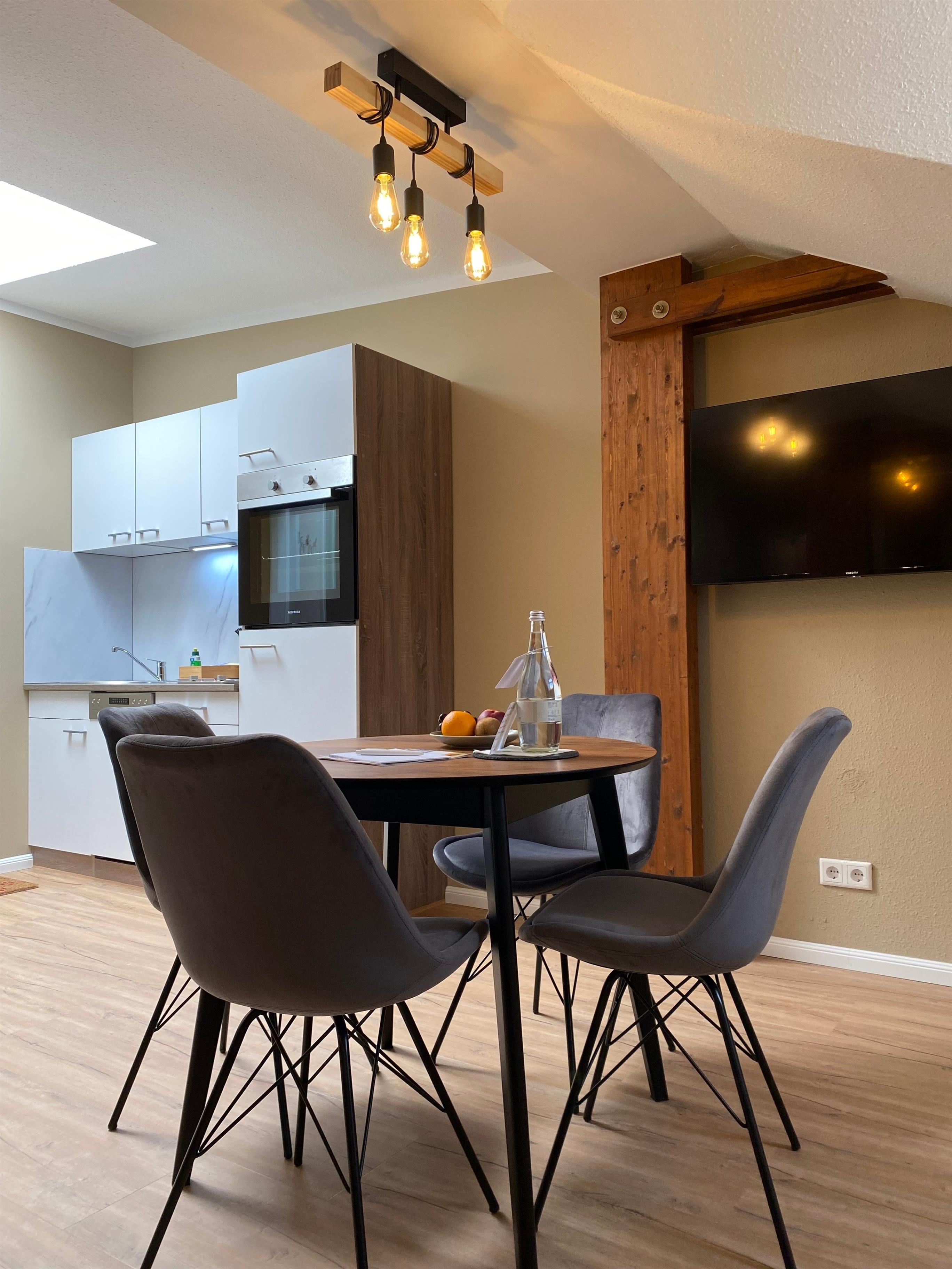 Unsere Ferienwohnung "Zur Post 4" begrüßt Sie auf ca. 58 m² mit einem freundlichen Ambiente für bis zu vier Personen. Die stilvoll und modern eingerichtete Ferienwohnung bietet Ihnen einen gemütlichen Wohn- und Küchenbereich, ein schönes Schlafzimmer mit einem Doppelbett und einem Extrabett. Weiterhin erwartet Sie ein schönes Badezimmer mit Tageslicht und einer Dusche.