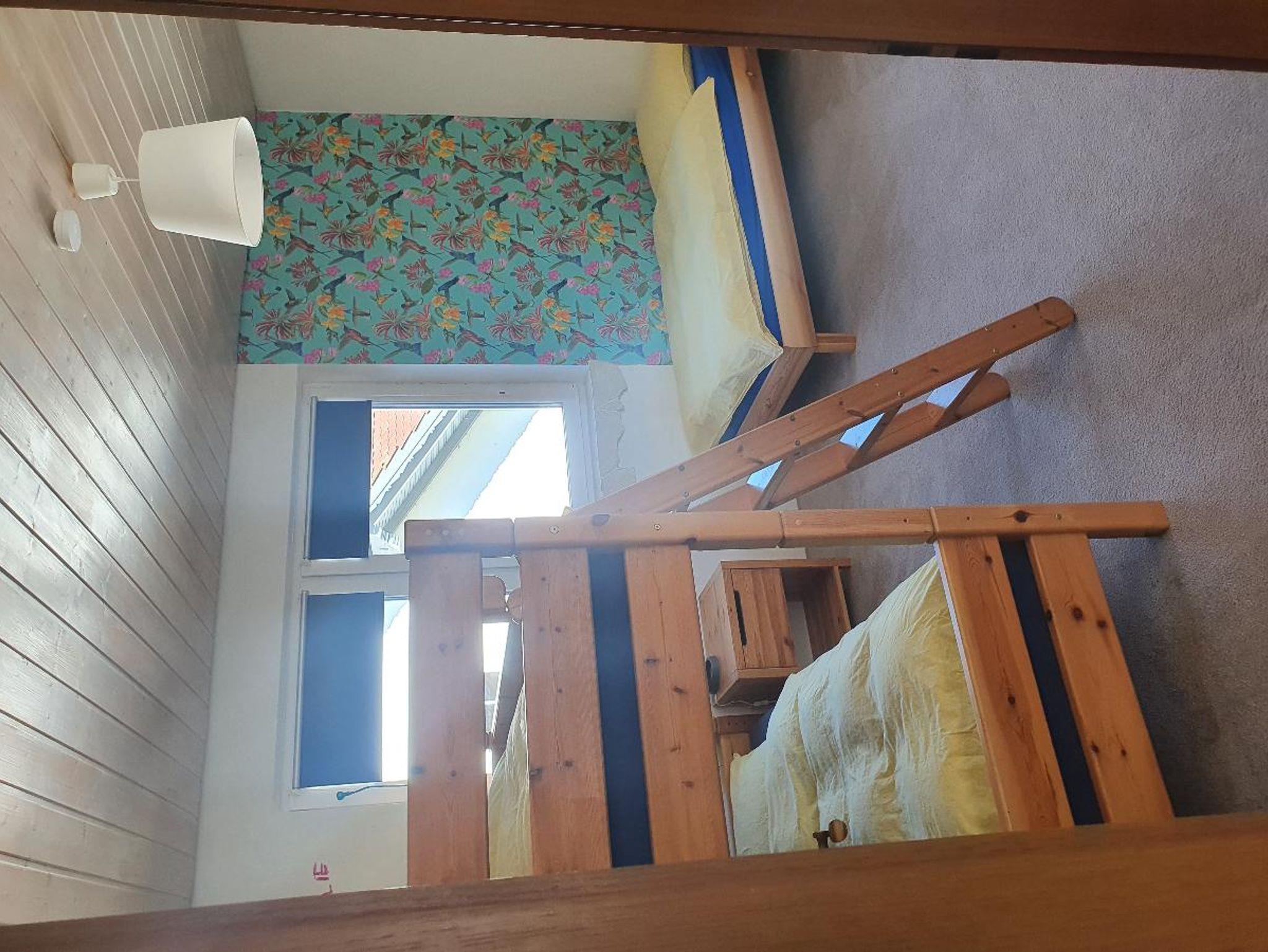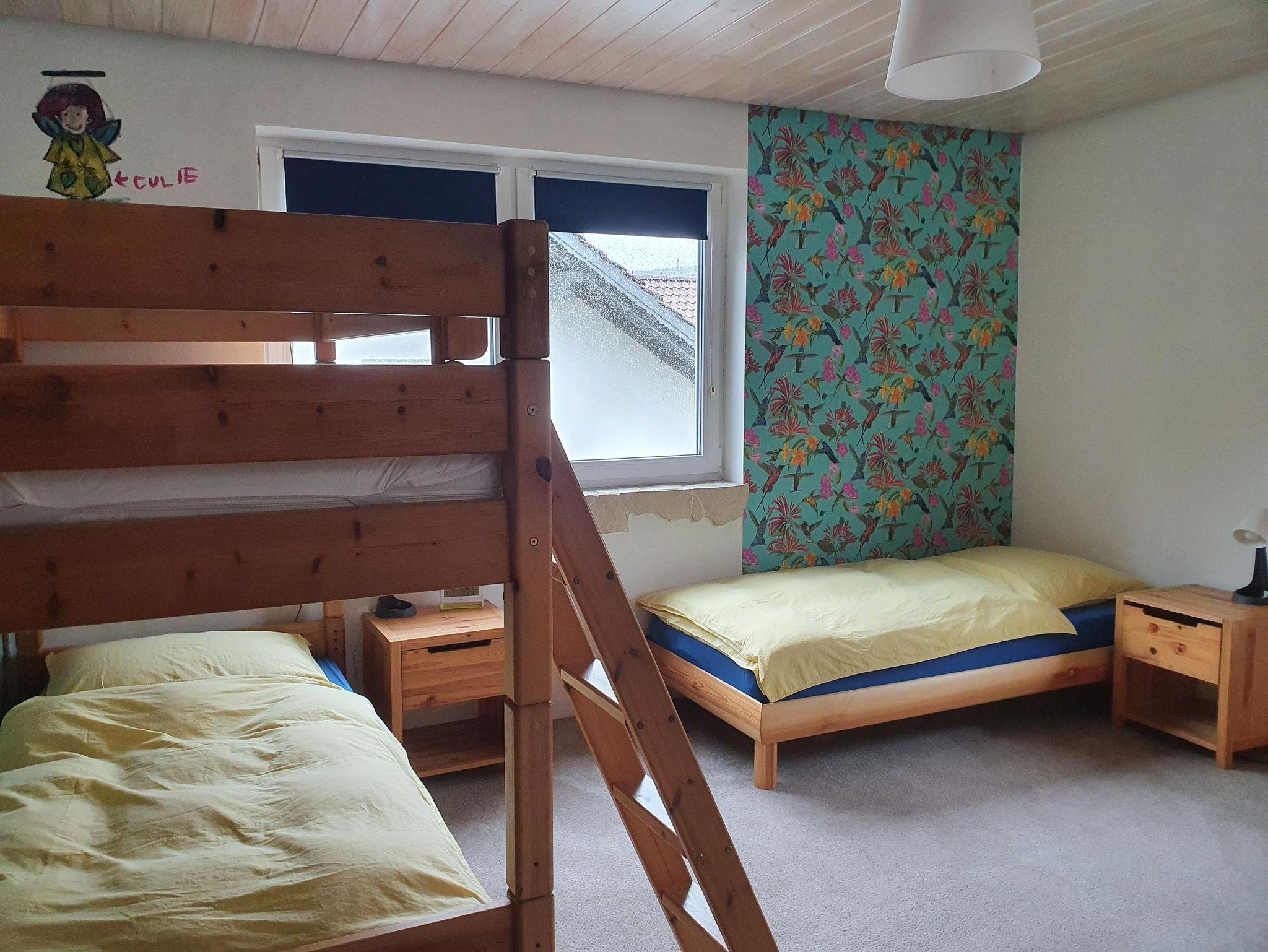 Doppelbett und zwei Schlafzimmer mit jeweils einem Stockbett und einem