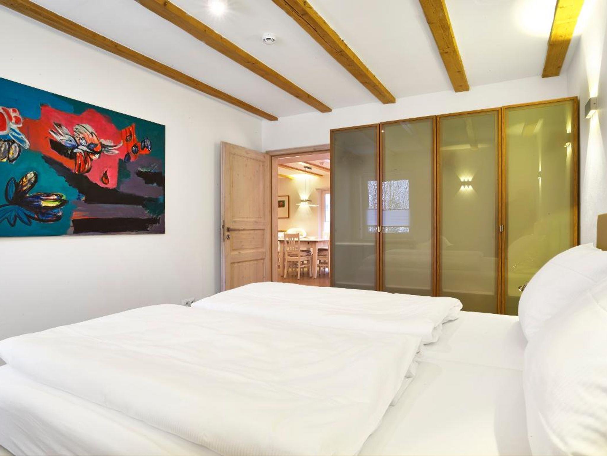Eine weitgehend offen gestaltete Loft mit großem Wohn-Essbereich und Zugang zum Südbalkon. Zwei Schlafzimmer (mit Doppelbett und zwei Einzelbetten) liegen auf der Rückseite des Hauses zur kleinen Defernik hin gelegen, deren leichtes Rauschen zu hören ist. Das Bad verfügt über eine eigene Sauna. Die komplett eingerichtete Küche verfügt über einen Kühlschrank mit Gefrierfach, Wasch- und Spülmaschine und natürlich ein Kaffeevollautomat. Die Wohnung ist ausgestattet mit vier Boxspringbetten, die bei Bedarf auch zu zwei Doppelbetten umgestellt werden können.