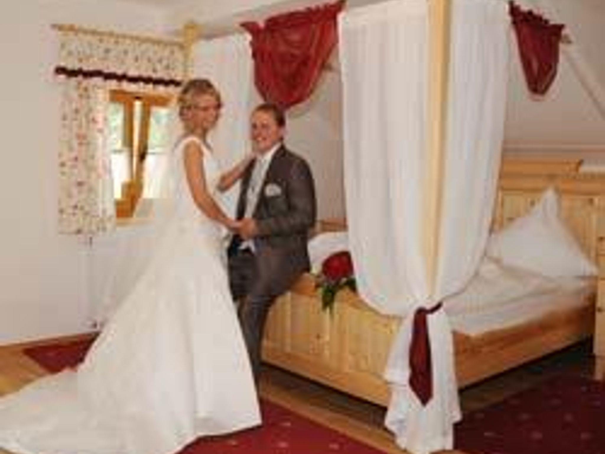Hochzeitszimmer empfehlen. Mit großem Himmelbett und einem beleuchteten