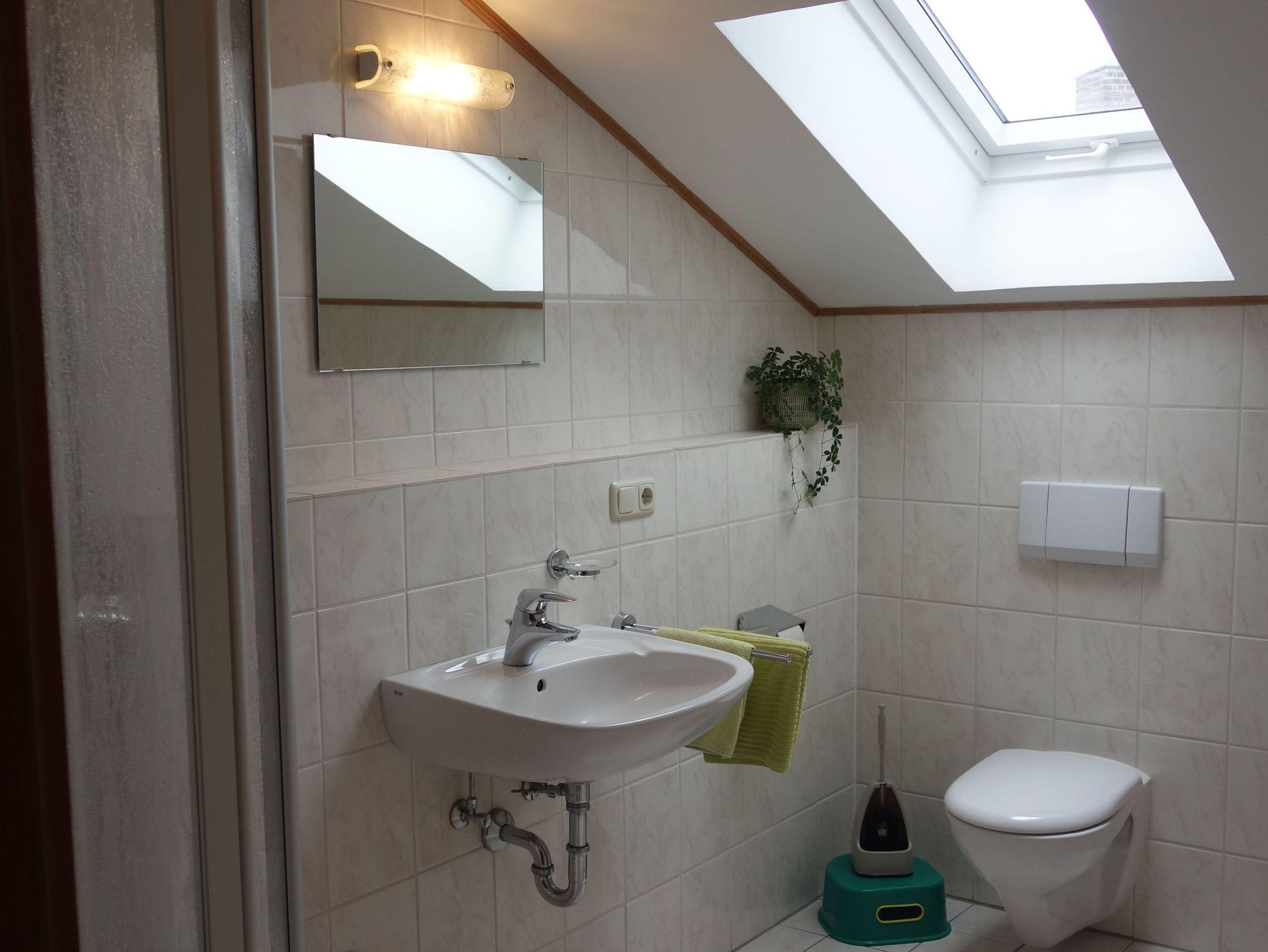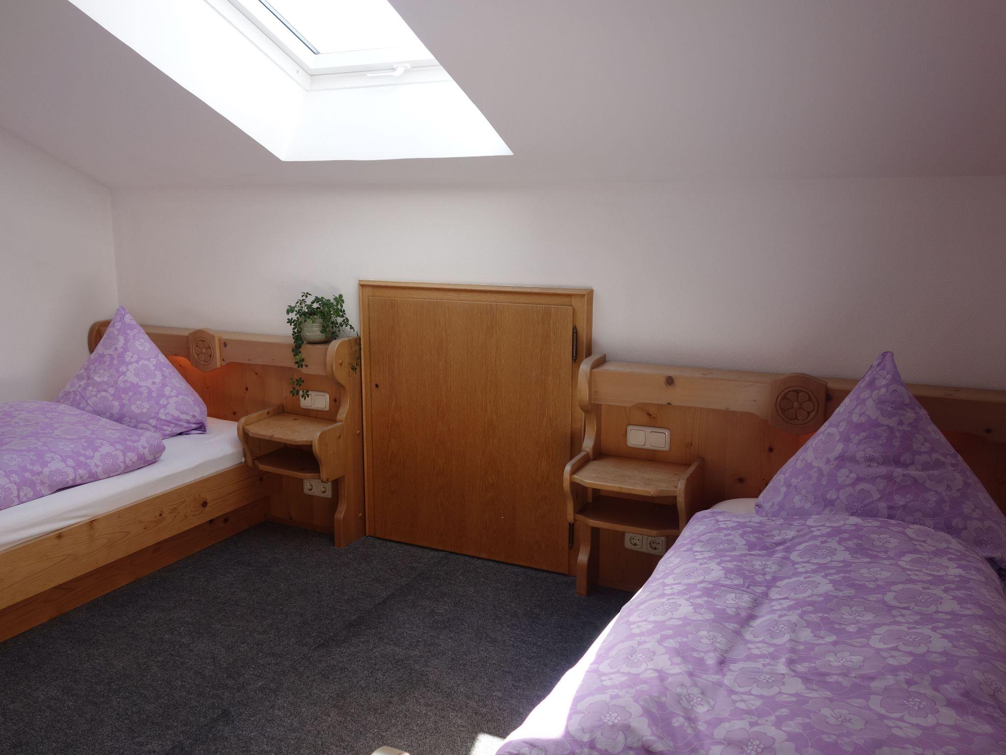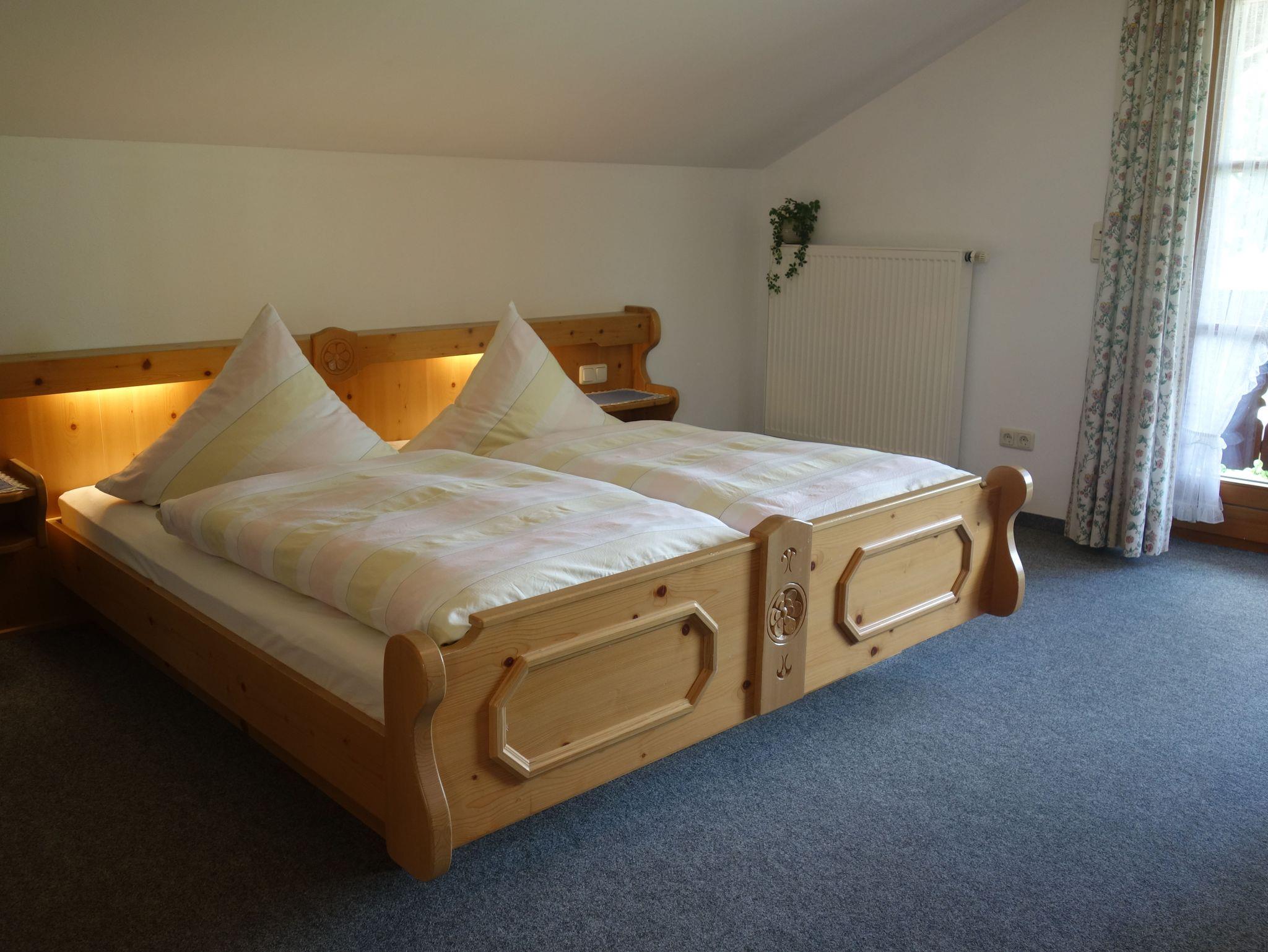 Unsere 64 qm große Ferienwohnung liegt im gut isolierten Dachgeschoss, mit gemütlichen-und ländlich schönen Möbeln ausgestattet. Der Balkon in Richtung Osten lädt auch an heißen Tagen zum gemütlichen Verweilen ein. Der Wohn- Schlafraum verfügt über ein gemütliches Sofa, TV und Esstisch. Das zusätzliche Schlafzimmer bietet auch für 2 Personen die Möglichkeit des getrennten Schlafens. Die Kochnische ist mit Kühlschrank inkl. Tiefkühlfach, 4-Platten Herd, Kaffeemaschine und Wasserkocher ausgestattet. Das Bad ist mit Dusche und WC. Handtücher und WLAN stellen wir Ihnen selbstverständlich kostenlos zur Verfügung.