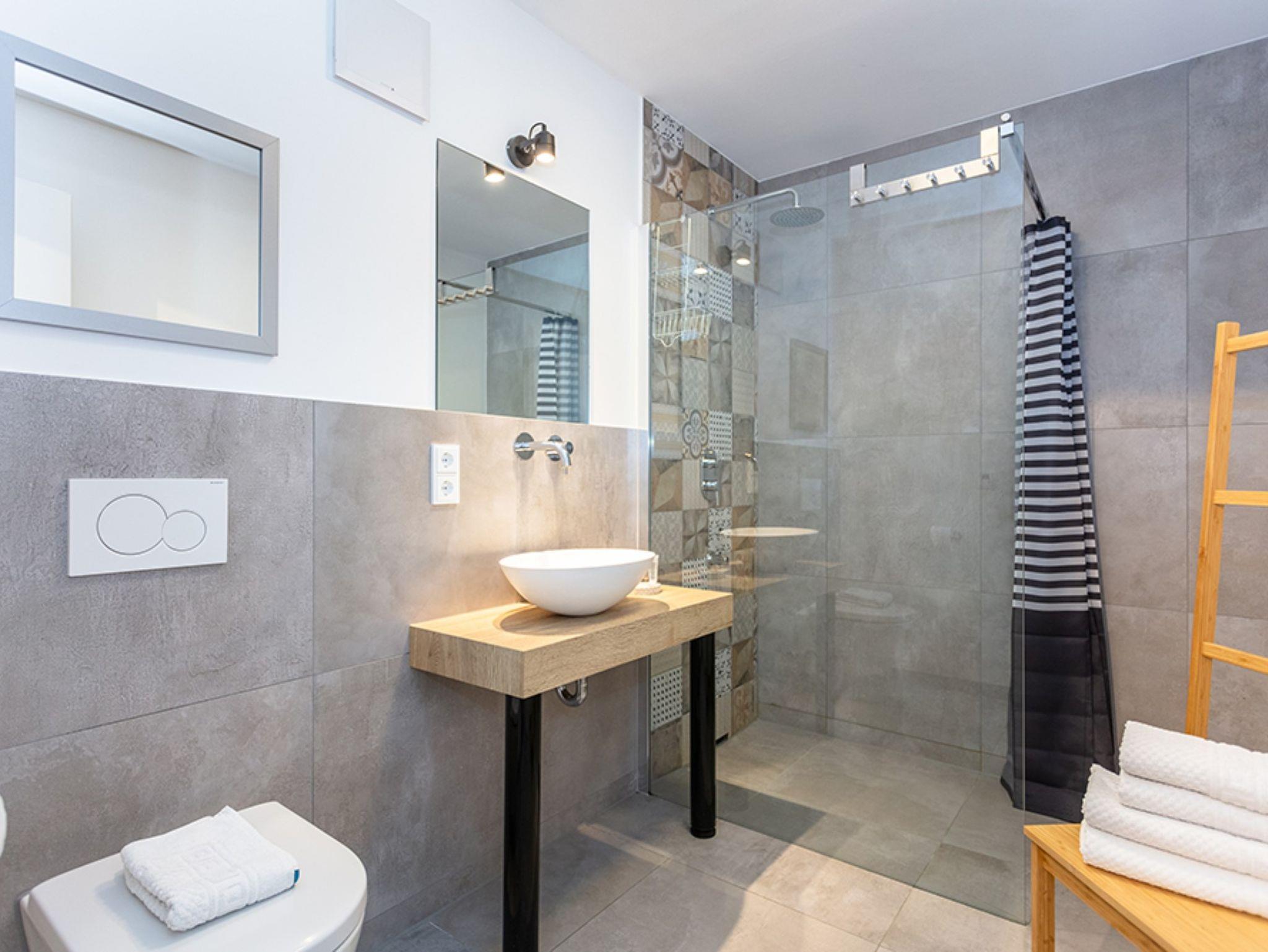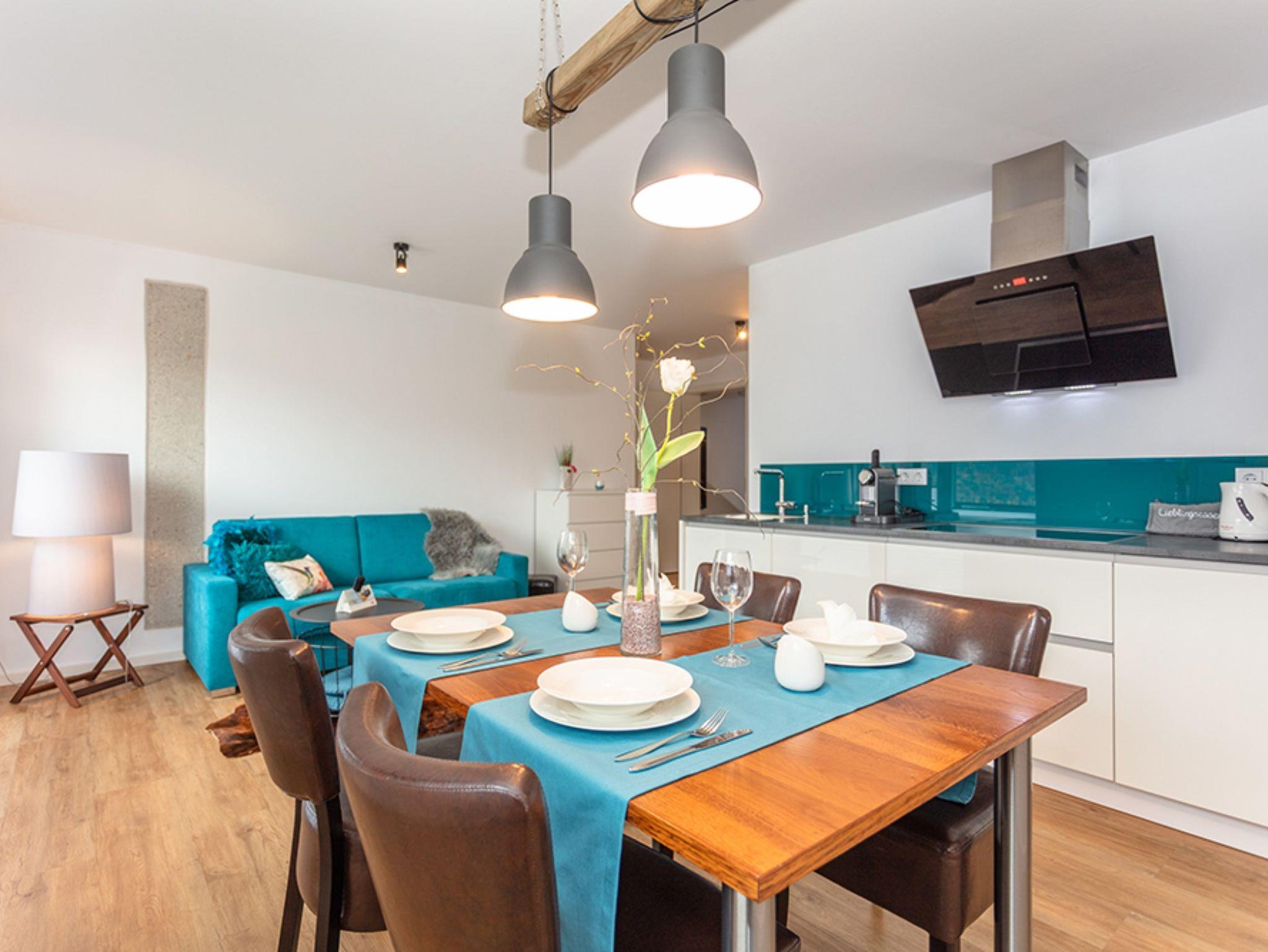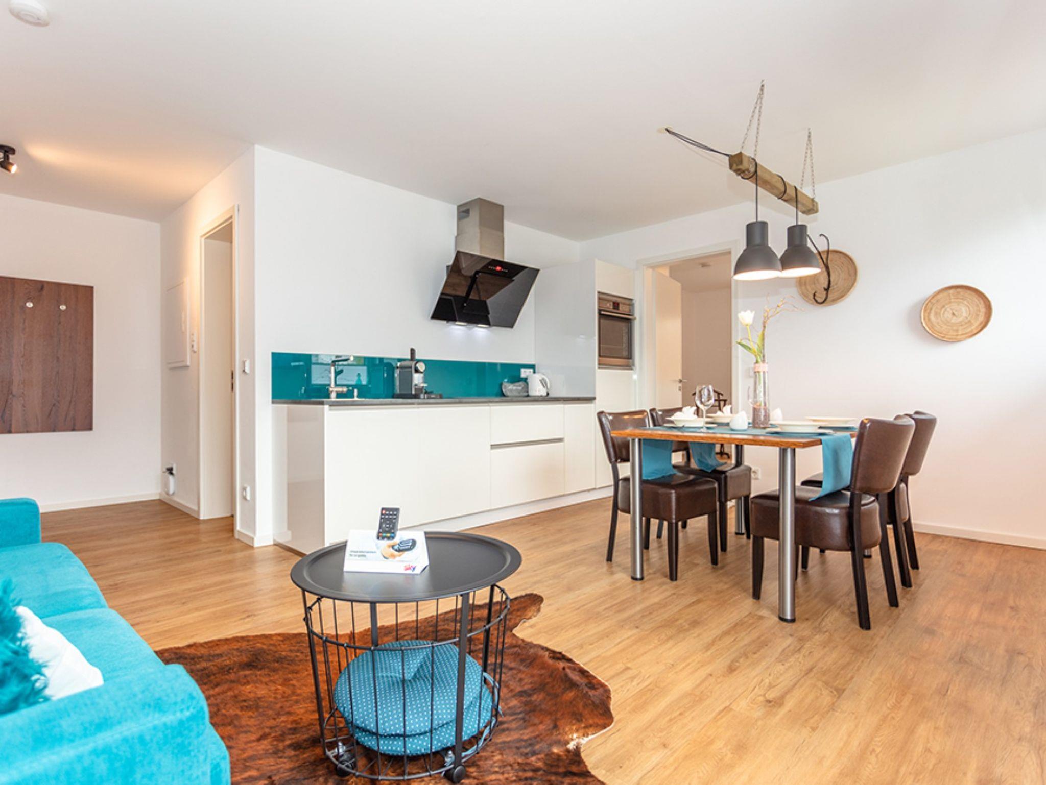 Unsere Deluxe Studio Ferienwohnung verfügt über geräumige 54 qm. Die Ferienwohnung hat 2 Balkone mit herrlichem Ausblick durch das Panoramafenster. Die Fußbodenheizung sorgt für ein wohnliches und warmes Ambiente. Die Wohnung ist vollständig eingerichtet und verfügt über ein separates Schlafzimmer mit Boxspringbett und 40 Zoll Fernseher mit SAT-TV. Im Wohnzimmer haben Sie einen zusätzlichen Fernseher. In der voll ausgestatteten Küche befindet sich ein Herd mit Induktionskochplatten, Backofen, Kühlschrank, Geschirrspüler sowie Geschirr - und Kochutensilien. Das Bad mit Dusche und WC ist mit hochwertigen italienischen Fliesen gestaltet.