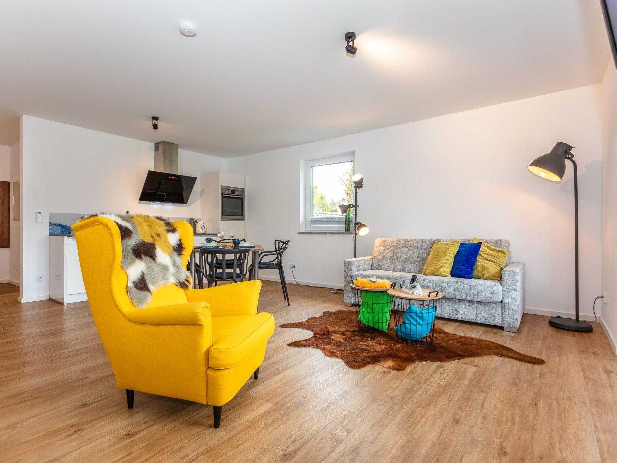 Genießen Sie unser 50 qm Deluxe Studio und beginnen Sie den Tag auf dem Balkon oder lassen Sie die Aussicht durch das Panoramafenster auf sich wirken. Die Fußbodenheizung sorgt für ein wohnliches und warmes Ambiente. Das Studio ist vollständig eingerichtet und verfügt über einen kombinierten Wohn - und Schlafbereich, eine Küche mit Induktionskochplatten, Backofen, Kühlschrank, Geschirrspüler und Geschirr - und Kochutensilien. Im kombinierten Wohn - und Schlafbereich steht Ihnen ein 40 Zoll Fernsehen mit SAT-TV zur Verfügung. Das Bad mit Dusche und WC ist mit hochwertigen italienischen Fliesen gestaltet.