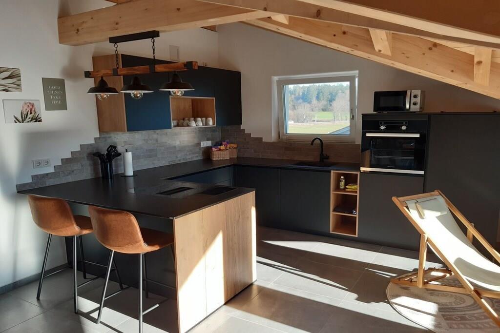 Carport + Stellplatz, große Garderobe, Bad mit Wanne und Dusche (Dachfenster), vollausgestattete top moderne Küche (Ofen, Herd, Mikrowelle, Kaffeemaschine etc.), beide Schlafzimmer je mit Kleiderschrank und TV, großer Esstisch (6 Personen), bequeme Couch (Ausziehfunktion) und Leselampe; TV, Internetradio, DVDs und Bücher im Wohnzimmer, Loggia mit Rattanmöbel und Panoramablick, Waschmaschine + Trockner, gute Internetverbindung (inkl.), Bettwäsche, Handtücher, Reinigungsmittel inkl., alle Räume mit Fußbodenheizung, die vollumfängliche Dämmung mit dezentraler Lüftung sorgt bei allen Temperaturen für angenehmes Raumklima; auf Anfrage ist auch Kinderausstattung verfügbar, bei Sonderwünschen stellen wir gerne auch andere Dinge zur Verfügung