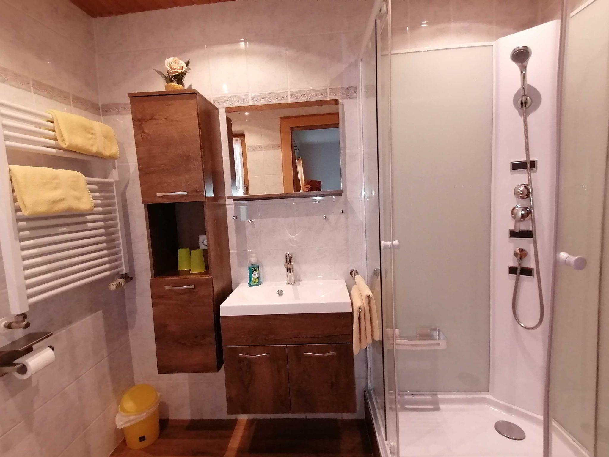 Ein neu renoviertes, attraktives Badezimmer mit Dusche/WC bietet Ihnen alles, was man zum wohlzufühlen braucht.