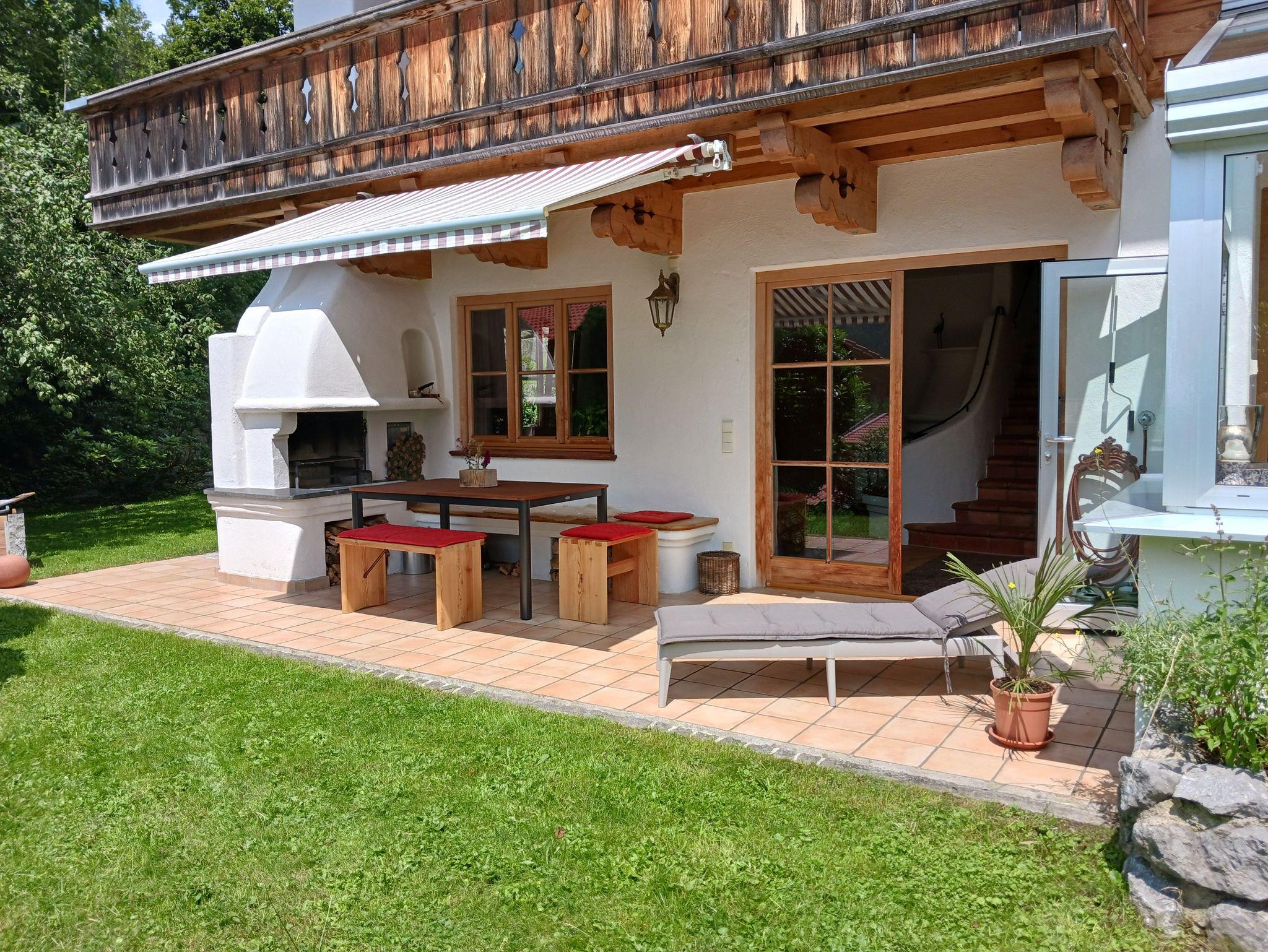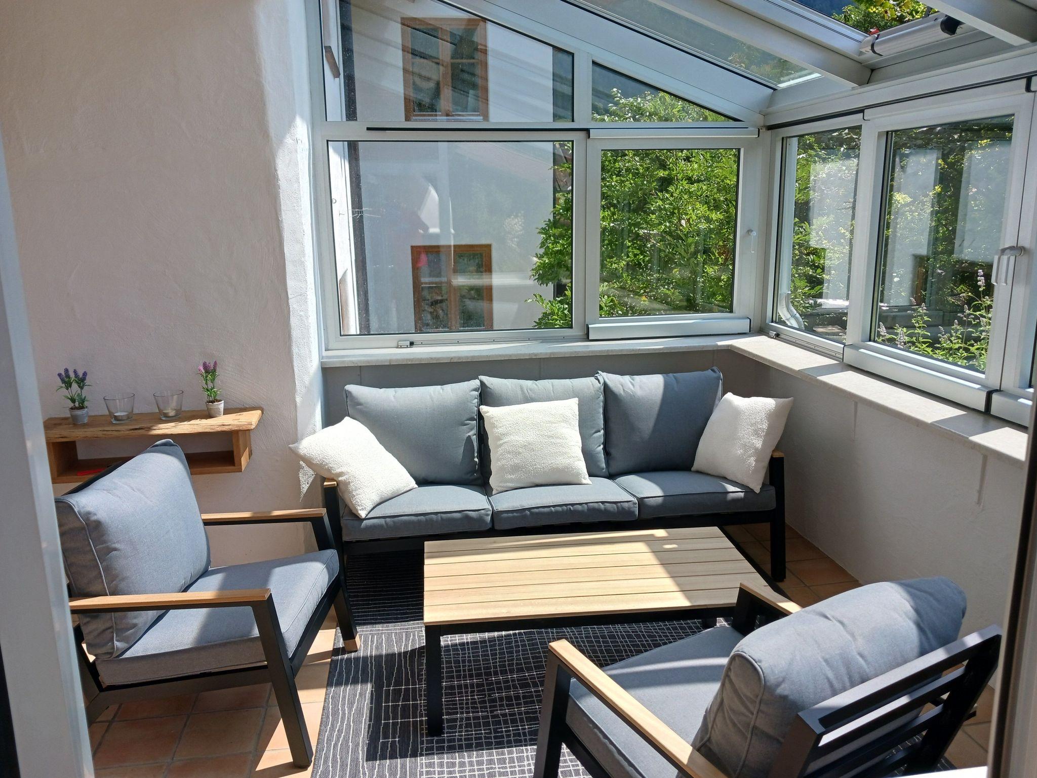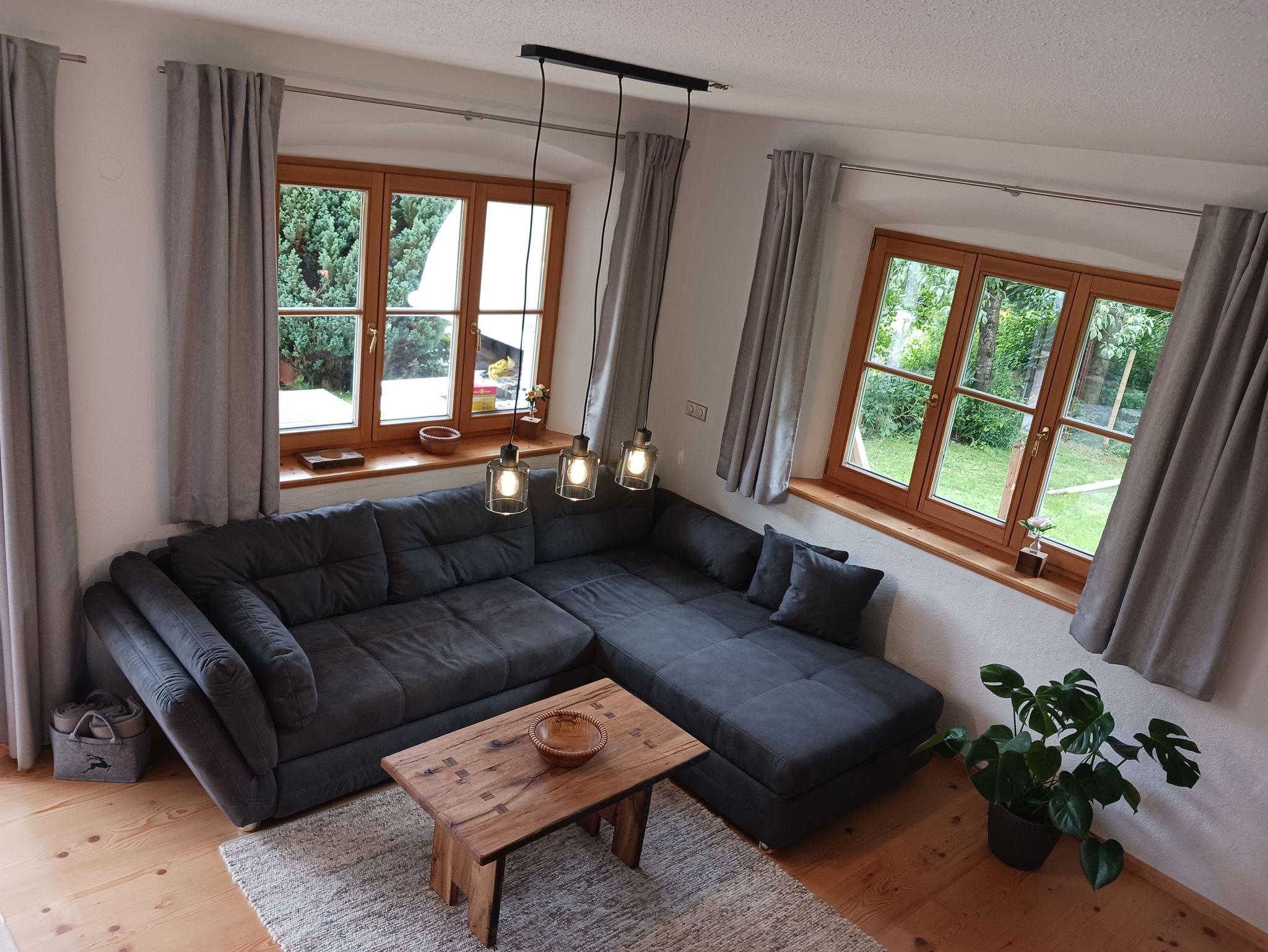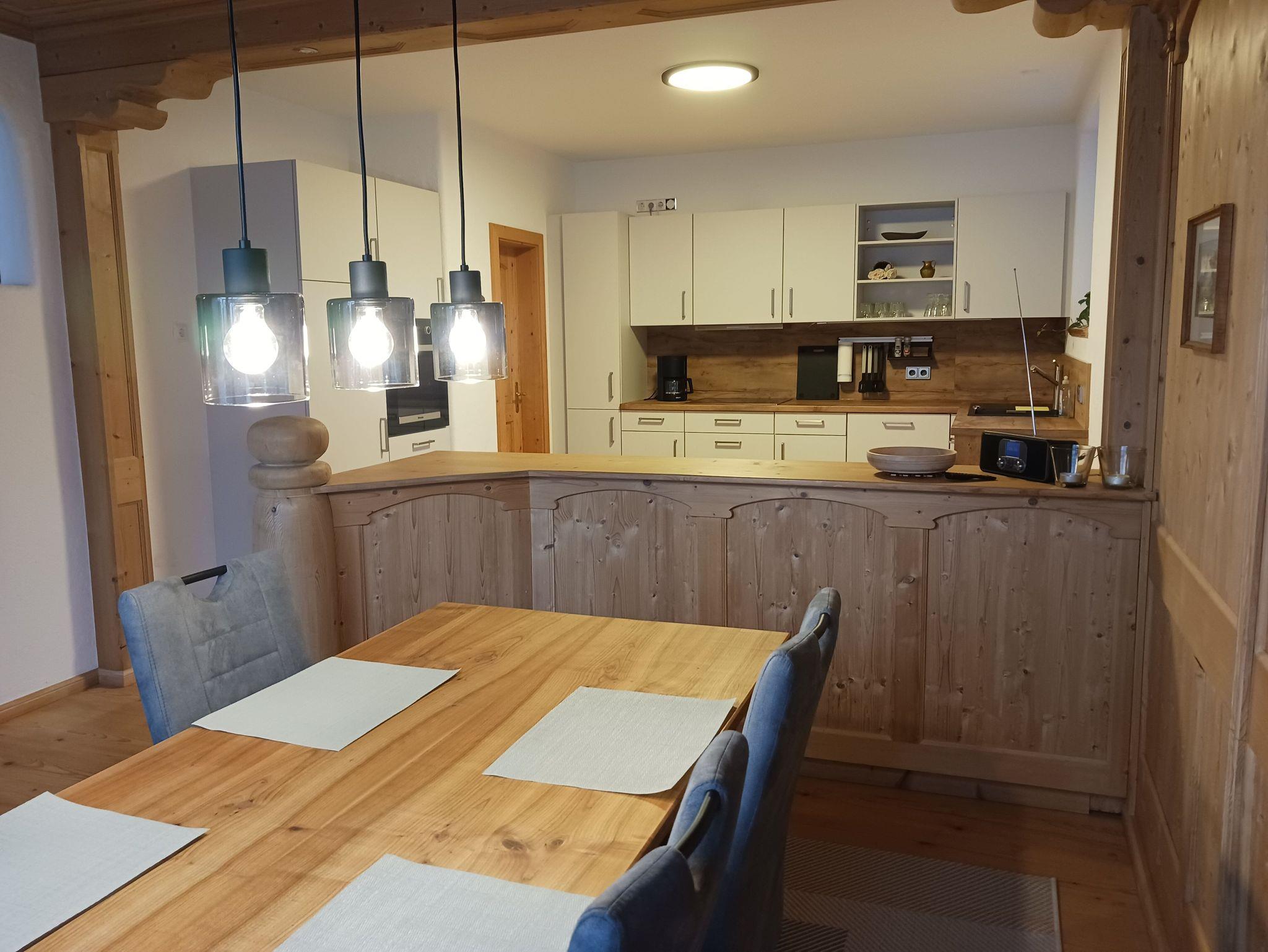 Im Erdgeschoss befindet sich ein offener Koch-Essbereich, ein gemütliches Wohnzimmer mit Kamin und direktem Zugang zum Wintergarten und zur sonnigen Terrasse mit atemberaubendem Blick auf die Berge und das idyllische Bayrischzell.