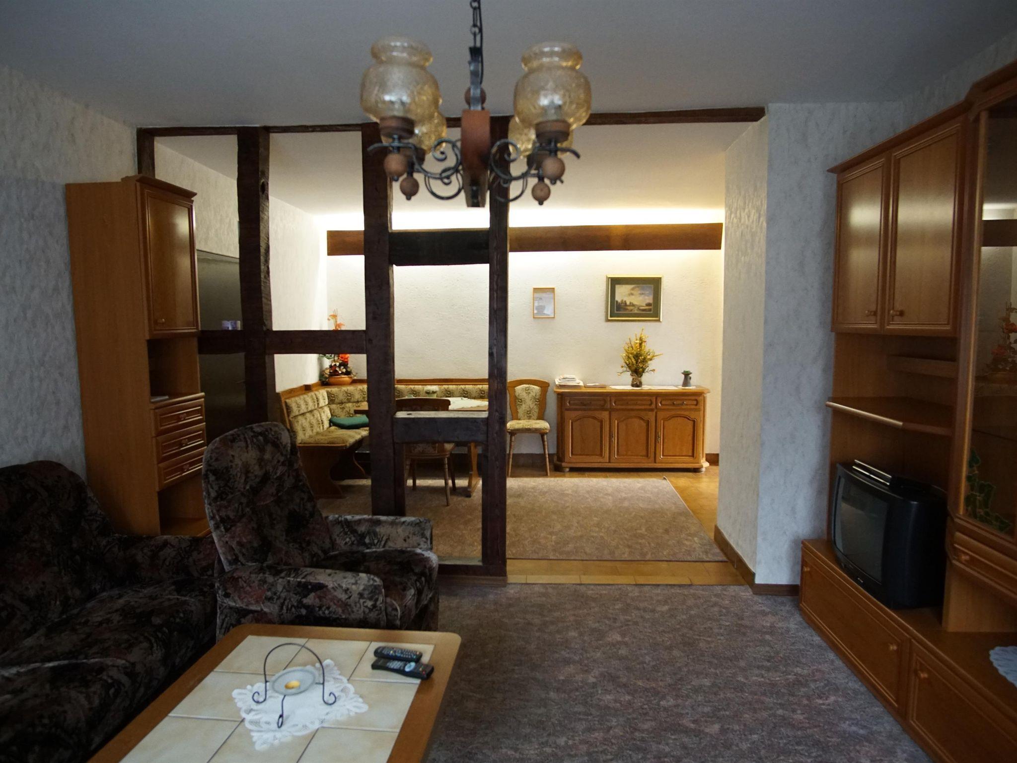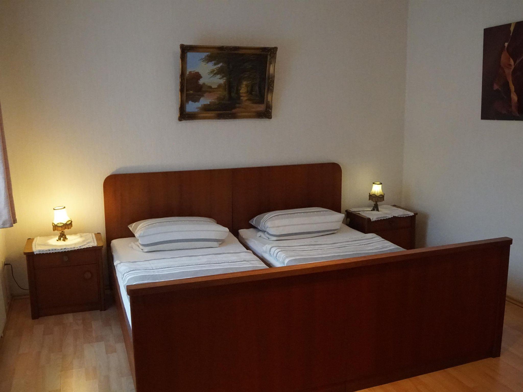 Die Wohnung verfügt über 1 Wohnzimmer mit Schlafcouch, 2 Schlafzimmer mit Doppelbett, 1 Esszimmer,1 Küche, 1 Vorratsraum, 1 Bad mit Wanne und Dusche, WC und Waschbecken, 1 Gäste-WC und Flur.