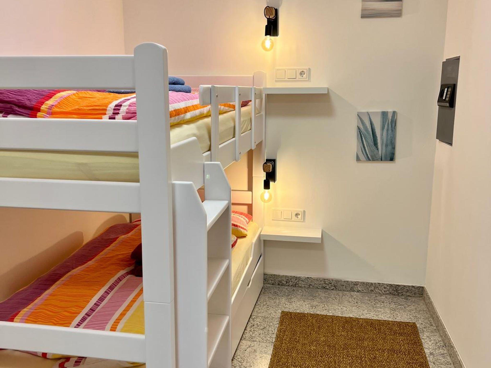 Diese Ferienwohnung ist ca. 120 m² groß und ist besonders für Familien mit Kindern, aber auch für Paare oder kleine Gruppen ideal. Sie verfügt über ein Schlafzimmer mit Doppelbett und angrenzendem Bad mit ebenerdiger Dusche, ein Schlafzimmer mit Etagenbett, einem großen Wohn/Essbereich mit voll ausgestatteter Küche und einem Extra-WC. Im Wohnbereich steht außerdem eine Schlafcouch zur Verfügung. Die großzügige Terrasse mit Blick zum Wald lädt bei schönem Wetter zum Entspannen ein. Die Ferienwohnung liegt im Erdgeschoss und ist barrierefrei.