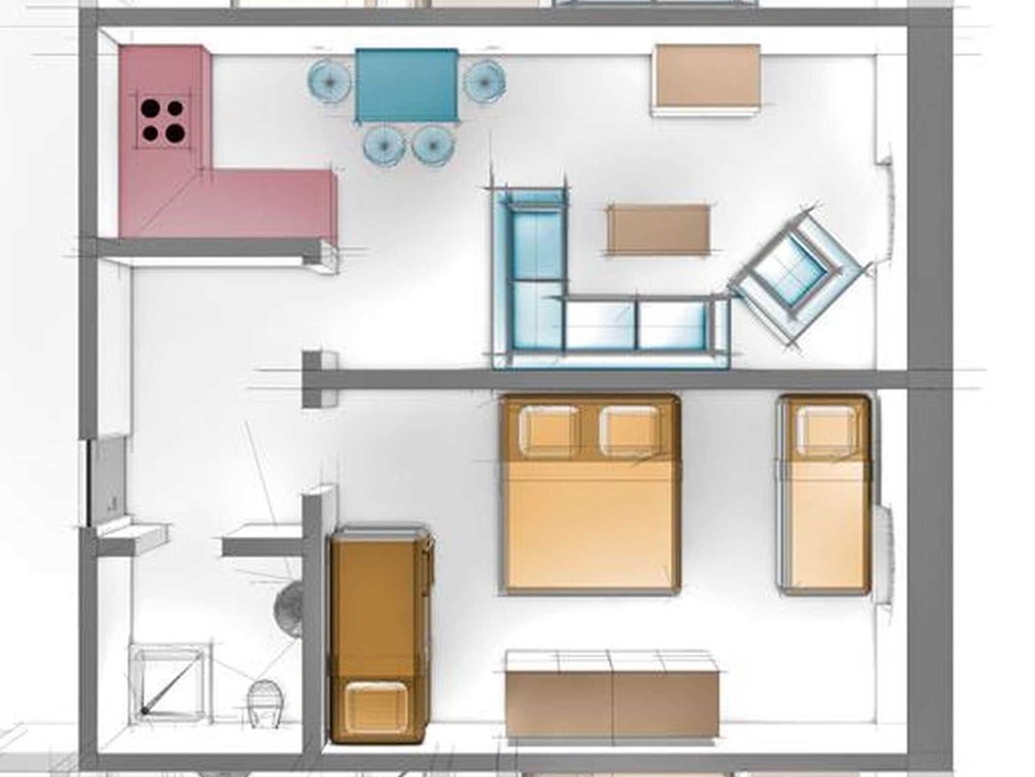 - 1 Schlafzimmer (20qm) mit einem Doppelbett, Etagenbett und Einzelbett