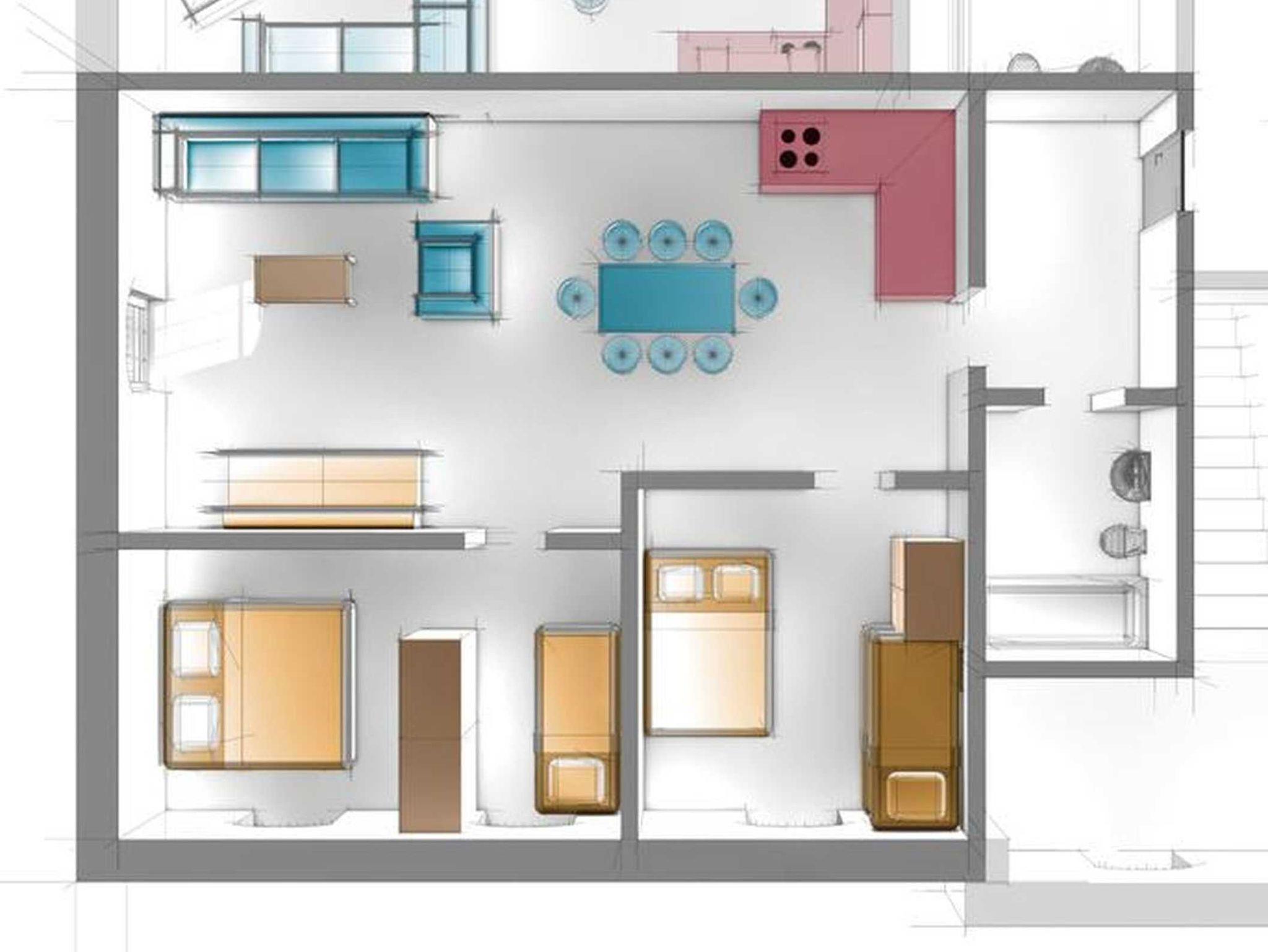 - Schlafzimmer (18qm) mit Doppelbett und einem Einzelbett