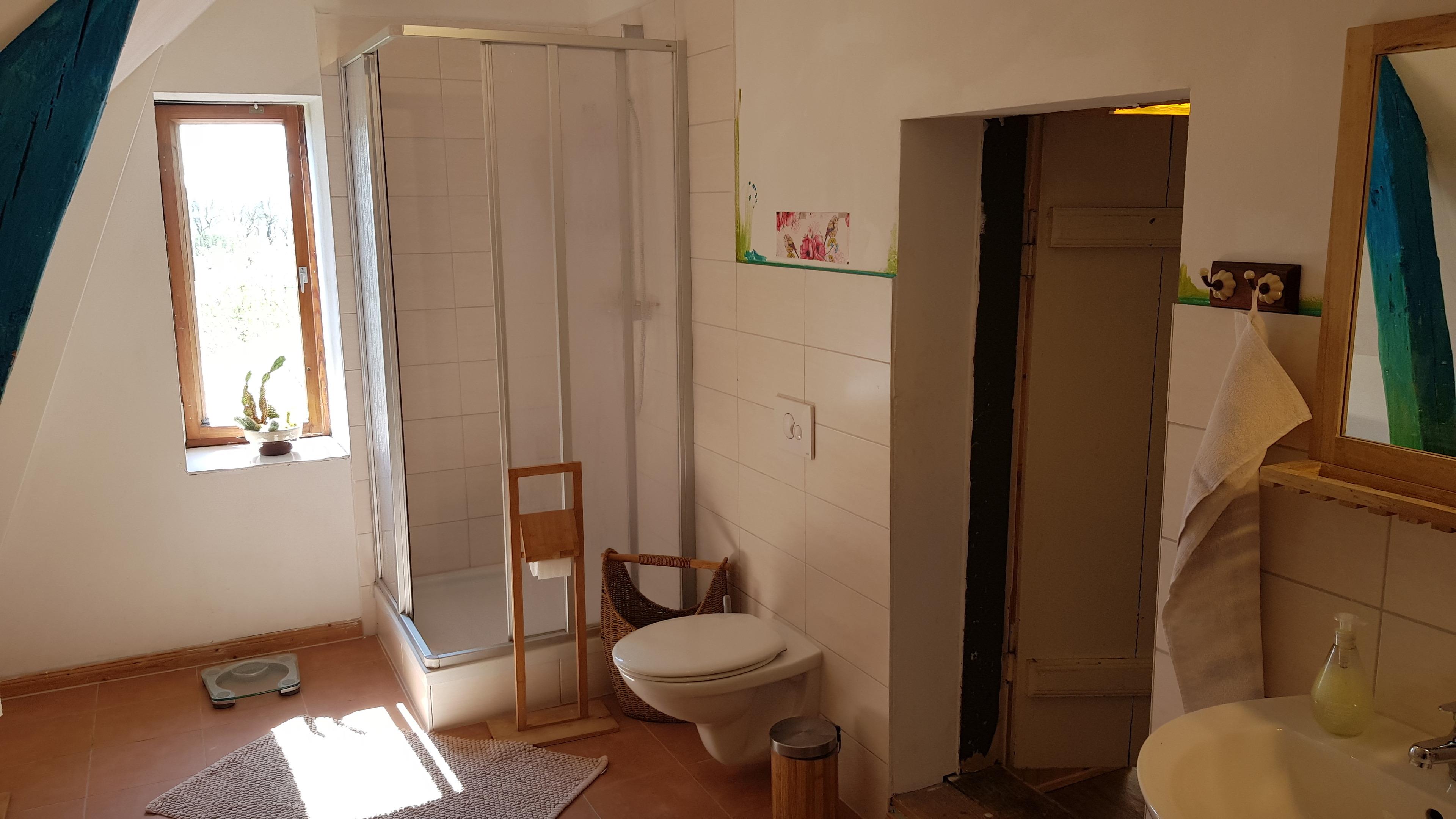 Zweiraumwohnung, 60 m² im 1. Stockwerk. Das Oberstübchen im Alten Pfarrhaus hat einen besonderen Charme mit alten Balken und Türen und bietet dennoch alle modernen Annehmlichkeiten. Das Haus ist umgeben von einem traumhaft großen Garten mit altem Baumbestand.