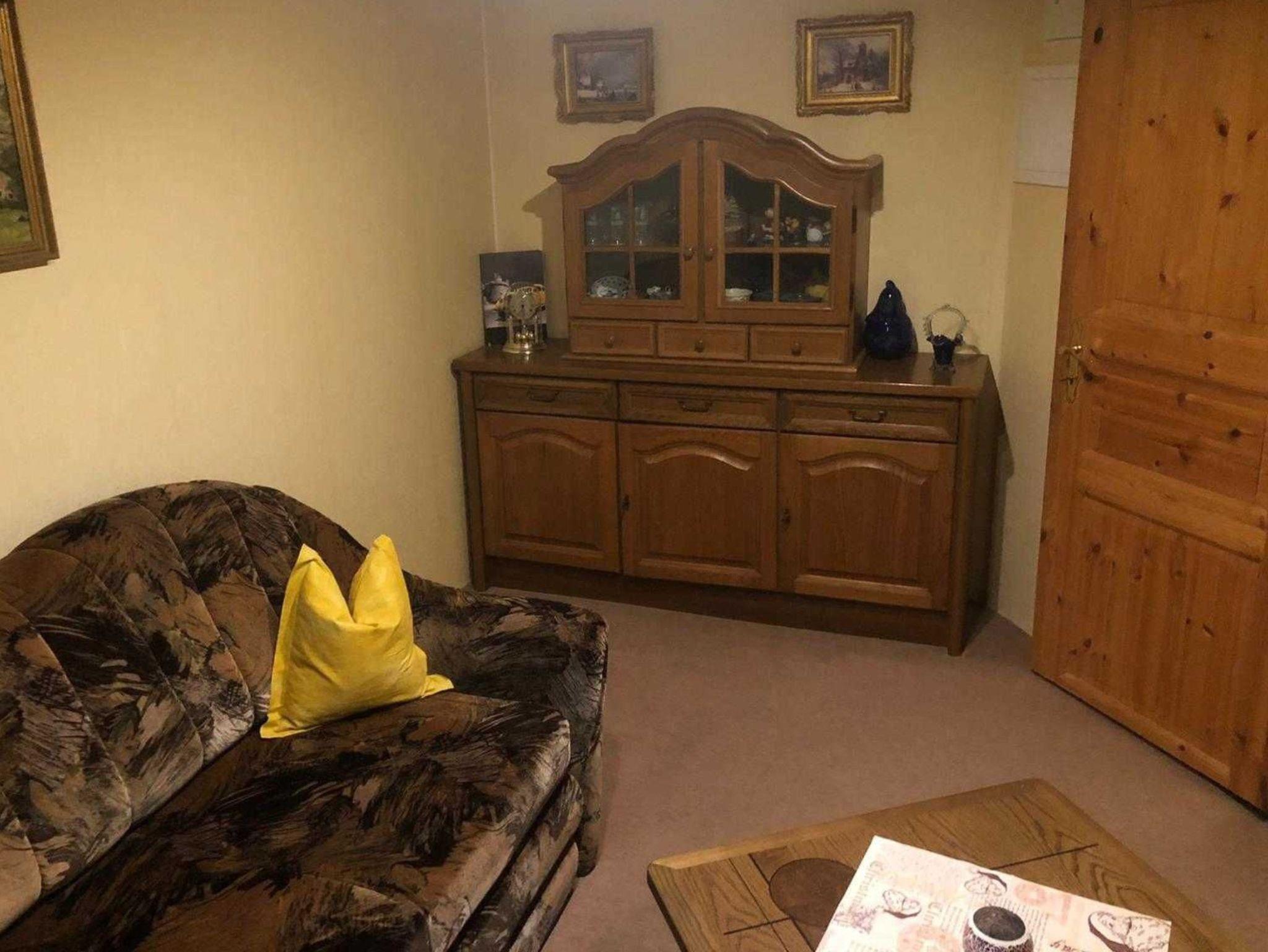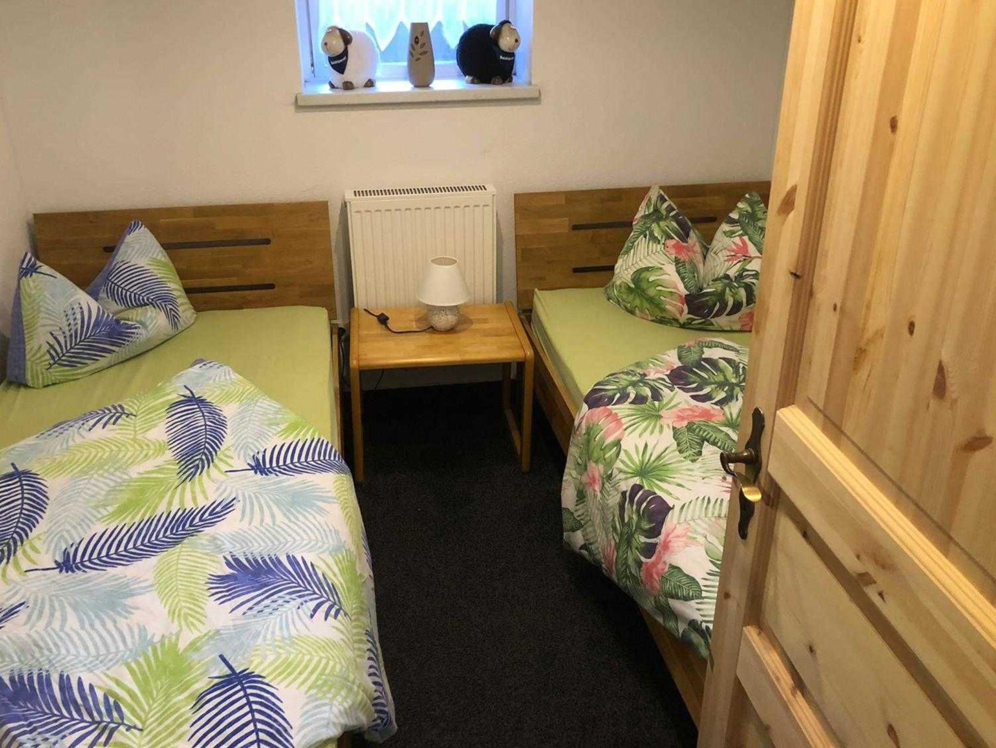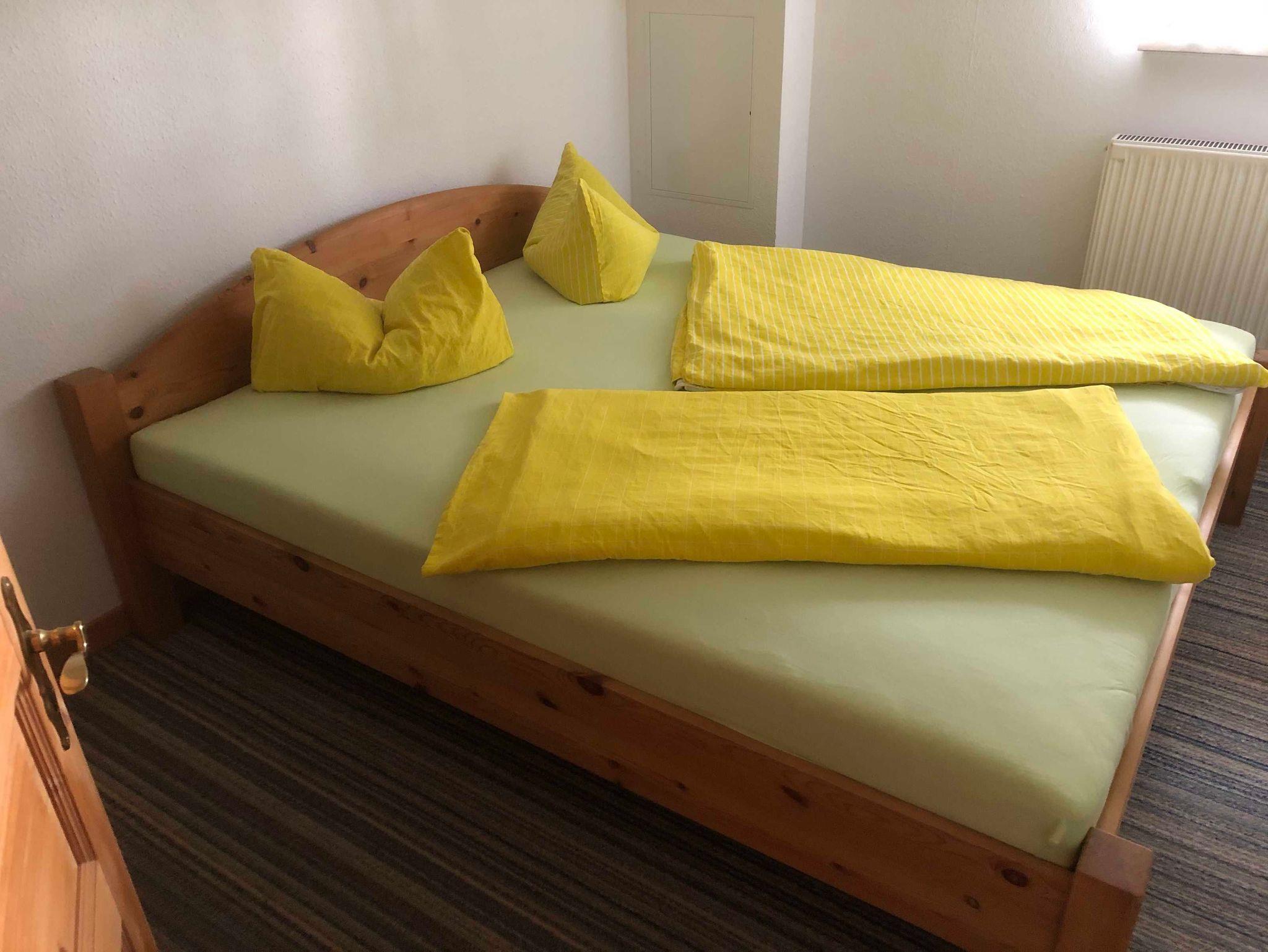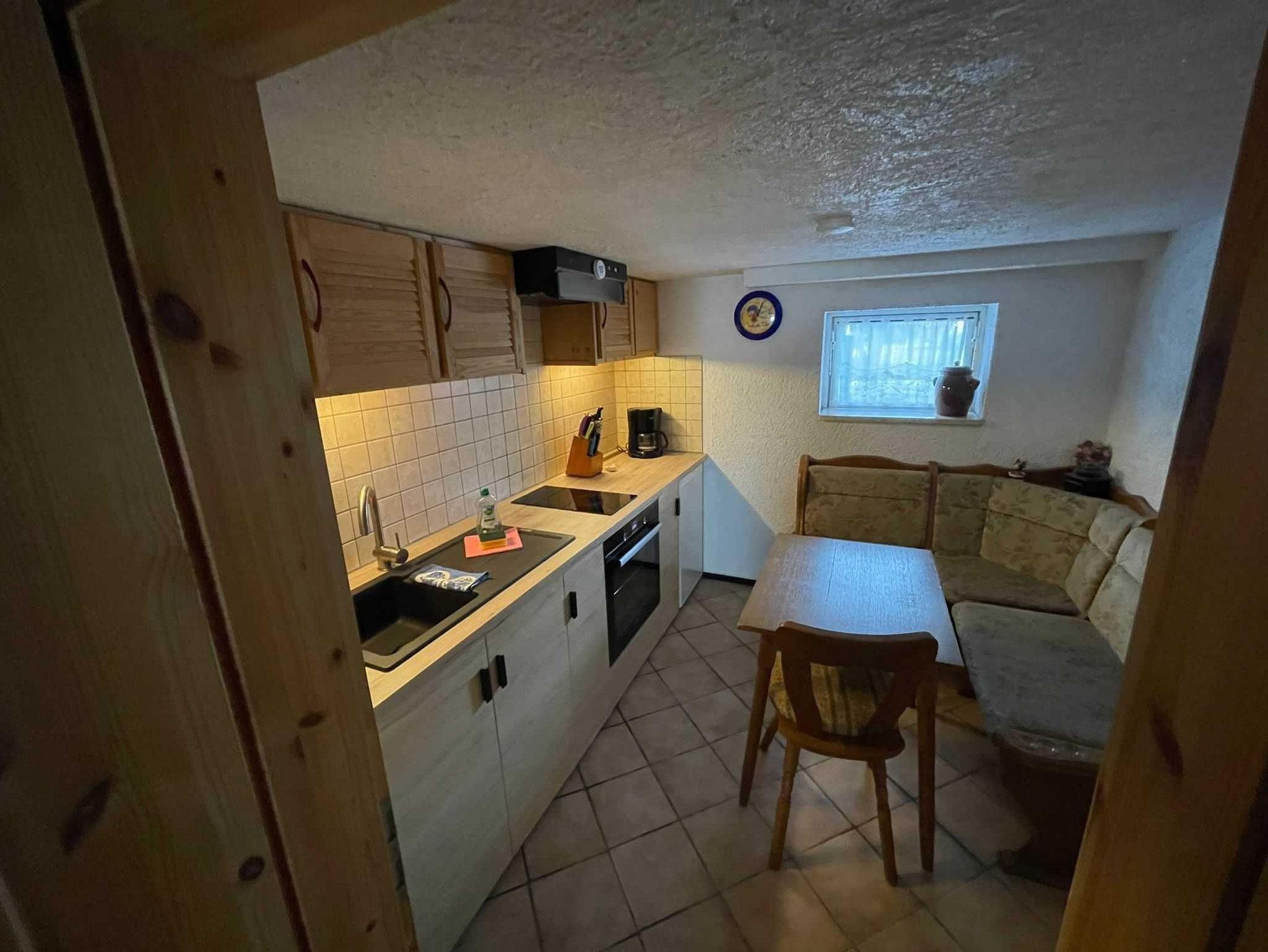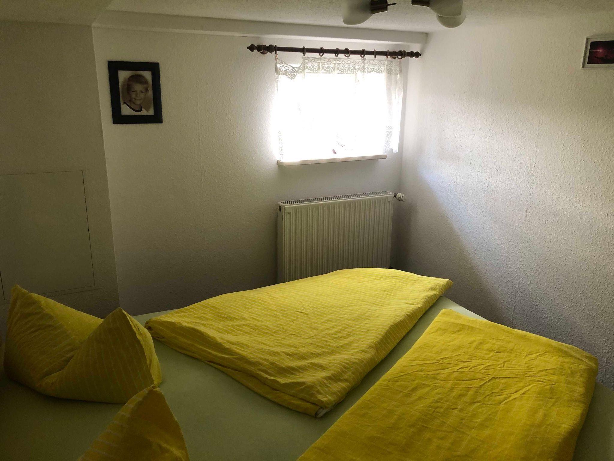 Die Ferienwohnung befindet sich im ausgebauten Keller des Wohnhauses des Vermieters. Sie ist 48 m² groß und familiengerecht eingerichtet. Sie besteht aus einem Wohnraum mit Sitzgruppe, Radio, TV, einem Schlafraum mit Doppelbett, einem Schlafraum mit zwei Einzelbetten, einer Küche mit Sitzgruppe und einem Bad mit WC und Dusche. Eine Terrasse mit Grill und Gartenmöbel steht zur Verfügung. Auf dem Hof befindet sich ein Pool (7mx4m, 1,20m tief), der genutzt werden kann. Bettwäsche und Handtücher sind vorhanden. Ein Hund (Risthöhe 40 cm) ist erlaubt für 4,00 Euro pro Tag. Fahrräder können für 4,00 Euro pro Tag ausgeliehen werden. Anreise ab 16.00 Uhr, Abreise bis 10.00 Uhr