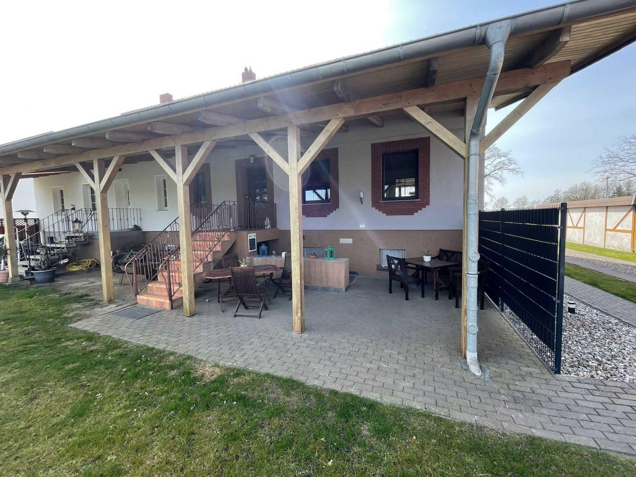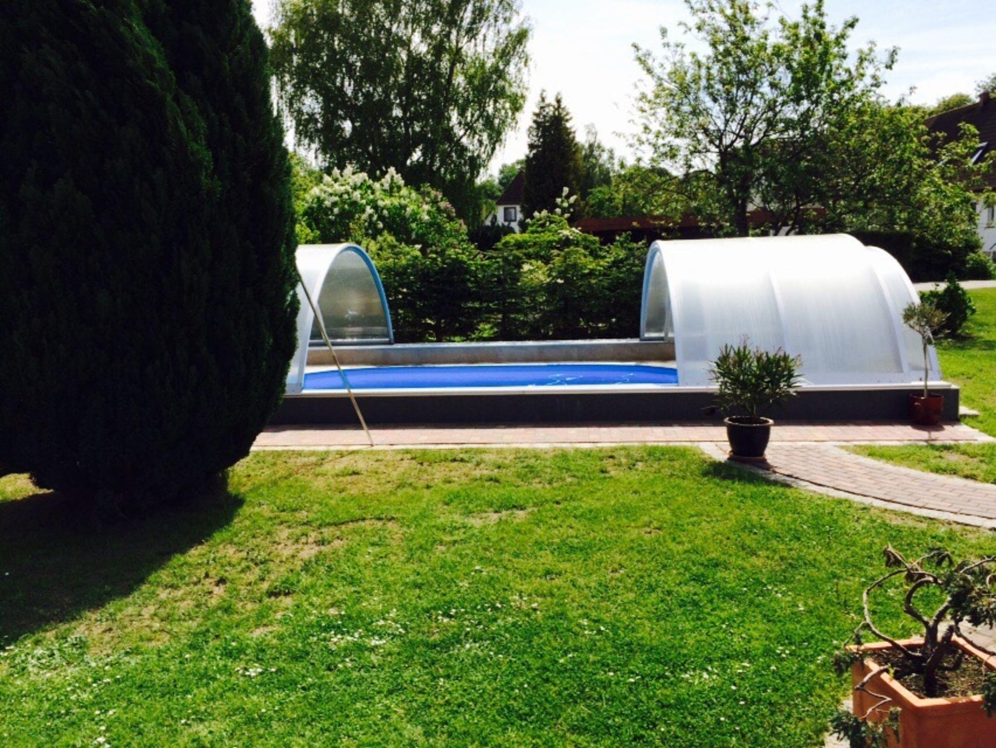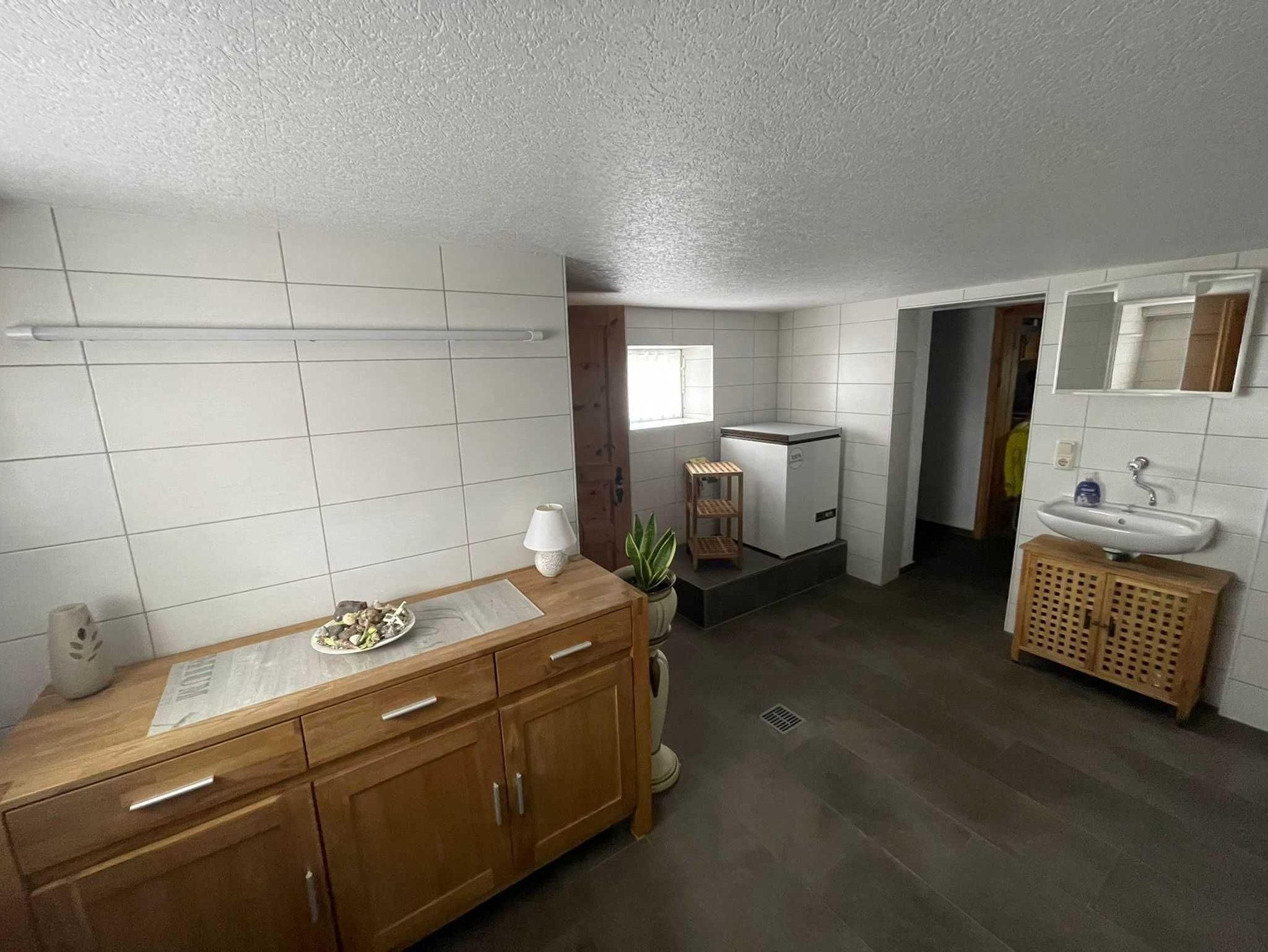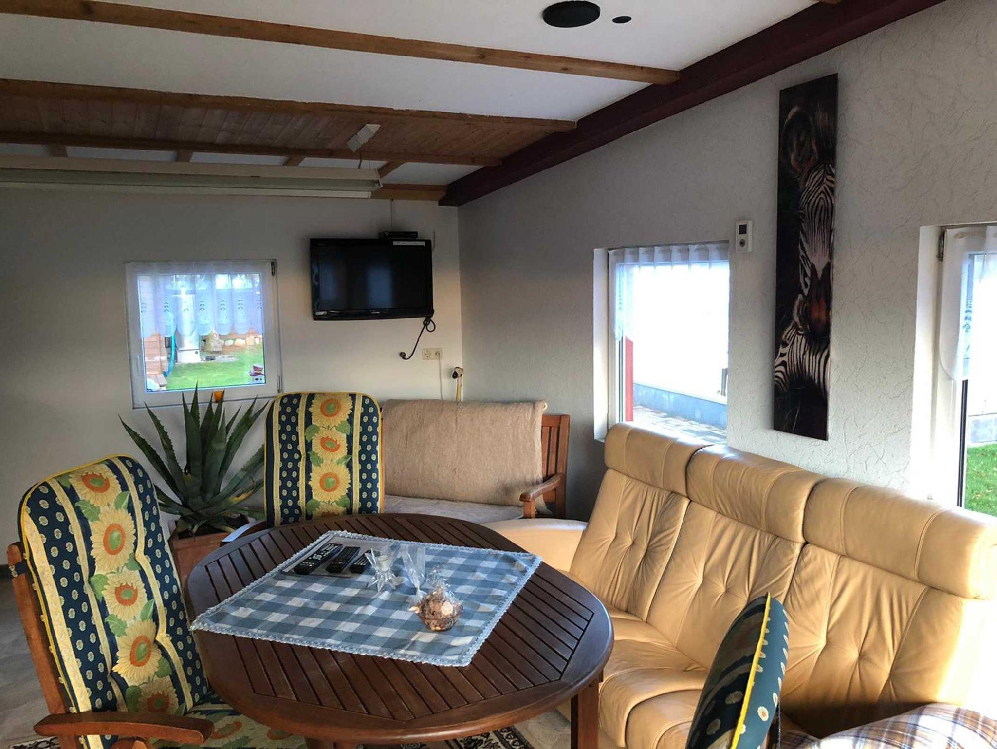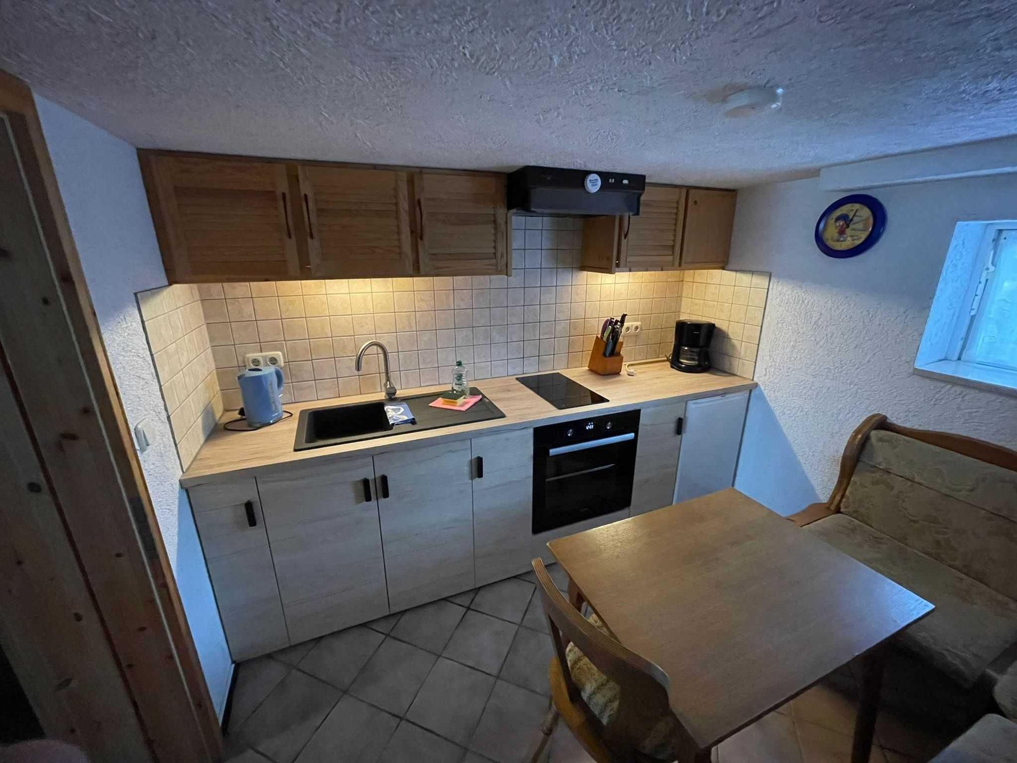 Die Ferienwohnung befindet sich im ausgebauten Keller des Wohnhauses des Vermieters. Sie ist 48 m² groß und familiengerecht eingerichtet. Sie besteht aus einem Wohnraum mit Sitzgruppe, Radio, TV, einem Schlafraum mit Doppelbett, einem Schlafraum mit zwei Einzelbetten, einer Küche mit Sitzgruppe und einem Bad mit WC und Dusche. Eine Terrasse mit Grill und Gartenmöbel steht zur Verfügung. Auf dem Hof befindet sich ein Pool (7mx4m, 1,20m tief), der genutzt werden kann. Bettwäsche und Handtücher sind vorhanden. Ein Hund (Risthöhe 40 cm) ist erlaubt für 4,00 Euro pro Tag. Fahrräder können für 4,00 Euro pro Tag ausgeliehen werden. Anreise ab 16.00 Uhr, Abreise bis 10.00 Uhr