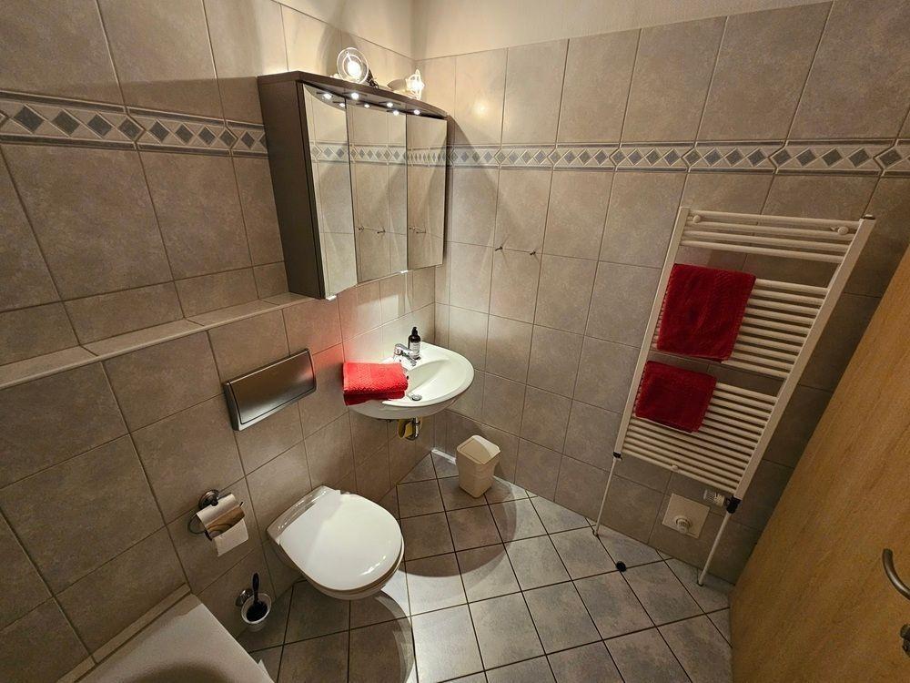 Das erste Schlafzimmer ist mit einem komfortablen Doppelbett und Kleiderschrank ausgestattet, während das zweite Schlafzimmer zwei Einzelbetten bietet. Das Badezimmer ist mit einer Dusch-Badewanne, Waschbecken, WC und Ablageflächen für Utensilien ausgestattet. Diese Wohnung bietet eine gemütliche, familienfreundliche Atmosphäre für einen erholsamen Aufenthalt.