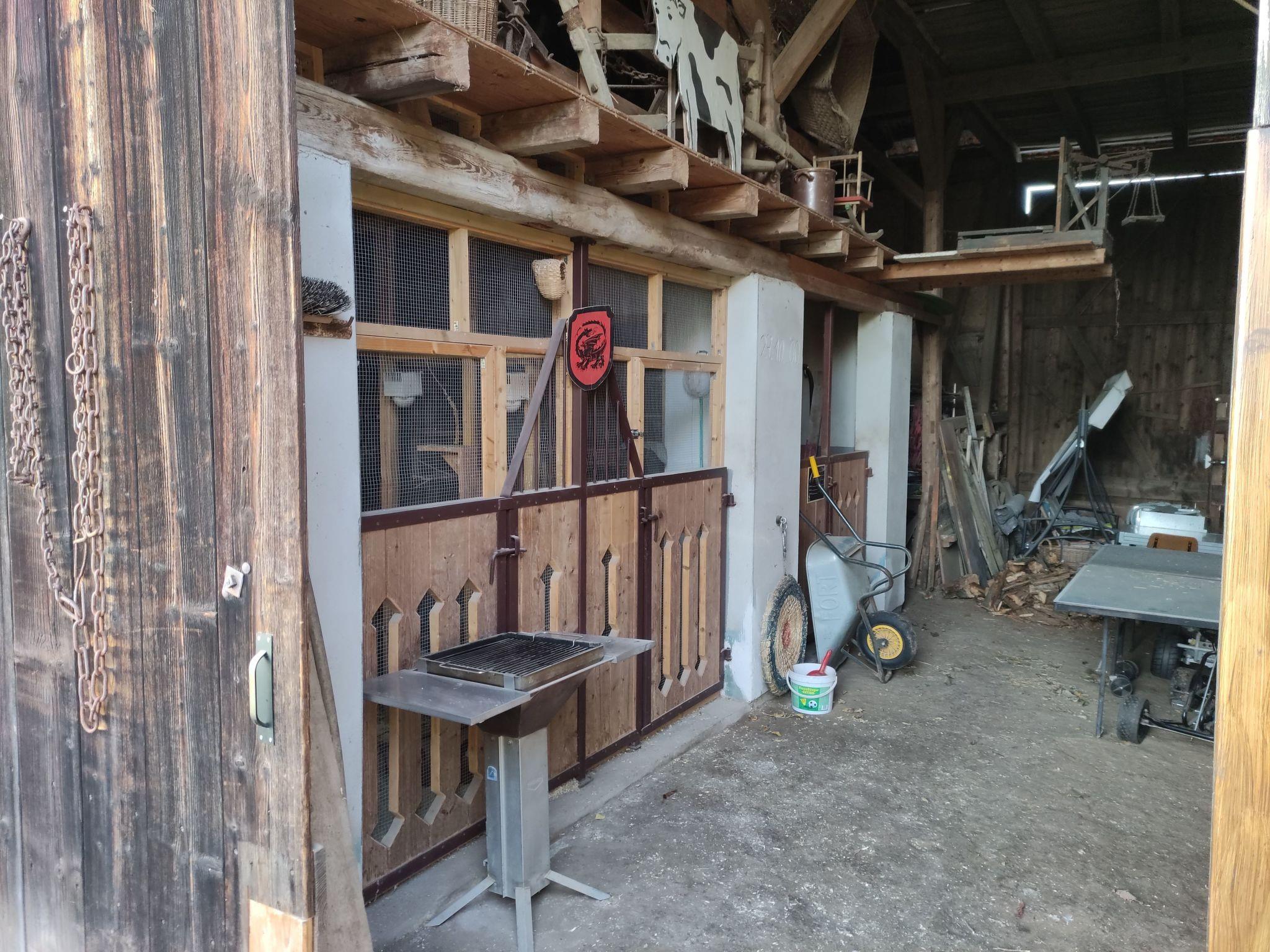 The garden holiday flat is located on the south side of the barn, which has been converted into a "holiday barn", with a view of the garden. The non-smoking holiday flat is located next to another identical apartment on the 1st floor. The property is equipped with central heating. On the first floor, in front of the holiday flats, there is a seating area and a playroom with a view of the terrace and our chicken farm. We therefore rent out two identical 40 m2 holiday flats and one rental flat in the property.