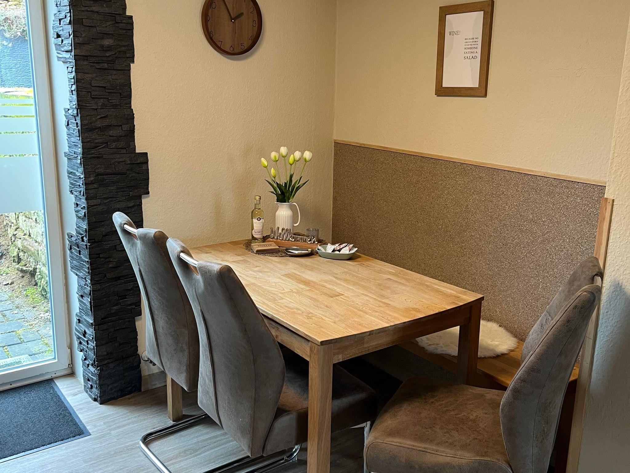 Das Casa Eifel empfängt Sie auf 90 qm, verteilt auf 3 Etagen mit Terrasse und bietet Platz für bis zu 5 Personen. Es verfügt über eine voll ausgestattete Küche mit Backofen, Ceranfeld, Kühl- Gefrierkombination, Geschirrspüler und einer Padmaschine. Ein Bad mit Badewanne und ebenerdiger Dusche, 2 Schlafzimmer und einem Wohnzimmer mit Flachbild- TV. Kostenloses WLAN, Parkplatz direkt vorm Haus, Reisebett, Hochstuhl und Haartrockner stehen Ihnen zur Verfügung. Bettwäsche und Handtücher werden gestellt. E- Ladestation gegen Aufpreis nutzbar.
