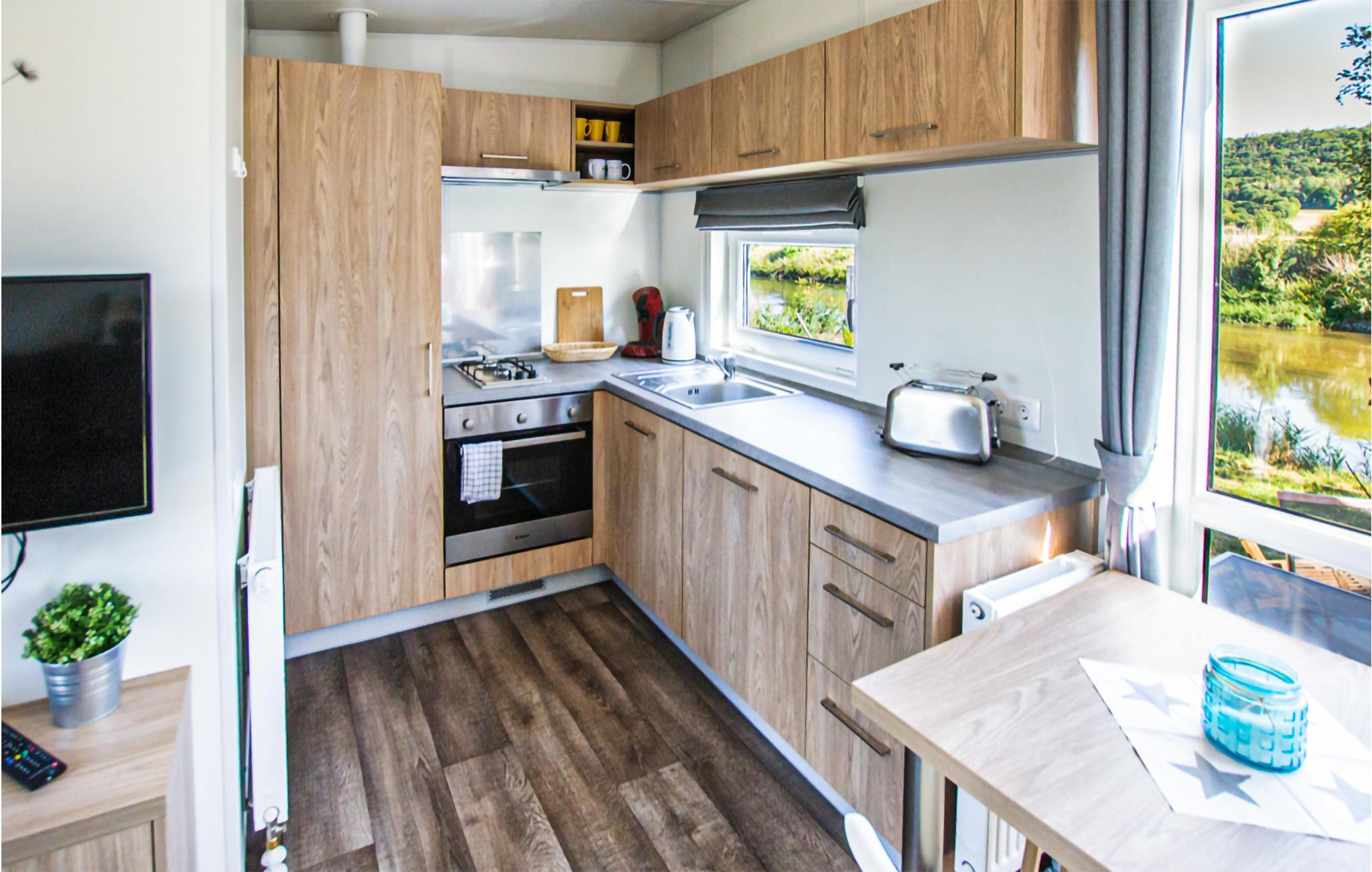 Velkommen til dette lille hus i naturparken NATURAMA® i Beilngries, i hjertet af Altmühltal. Jeres lille feriehus er funktionelt, moderne og indrettet med materialer af høj kvalitet, og ligger lige ned til floden. Den hyggelige opholdsstue med sovesofa, spiseplads og veludstyret tekøkken inviterer jer til at tilbringe mange hyggelige timer sammen. Det separate soveværelse med dobbeltseng skaber de perfekte rammer for en god nats søvn og søde drømme. Sovesofaen er 170 cm lang og er derfor bedst egnet til børn. Derudover har det lille hus eget badeværelse med brus/toilet.