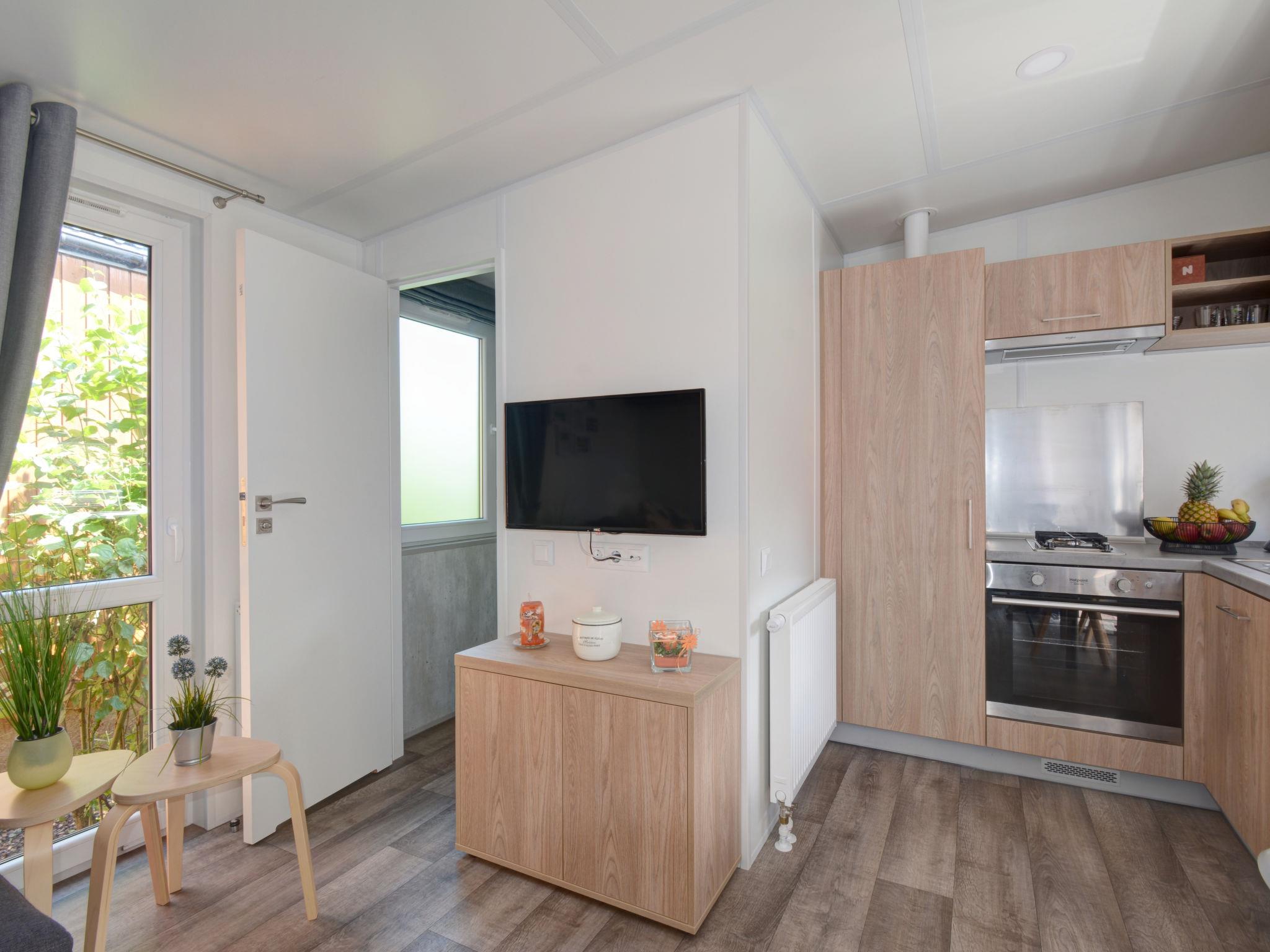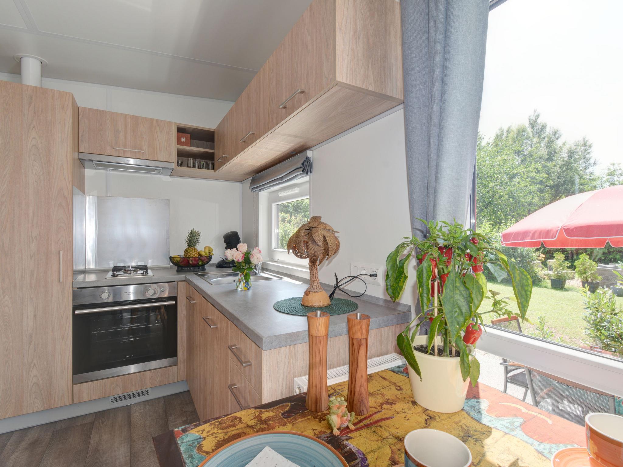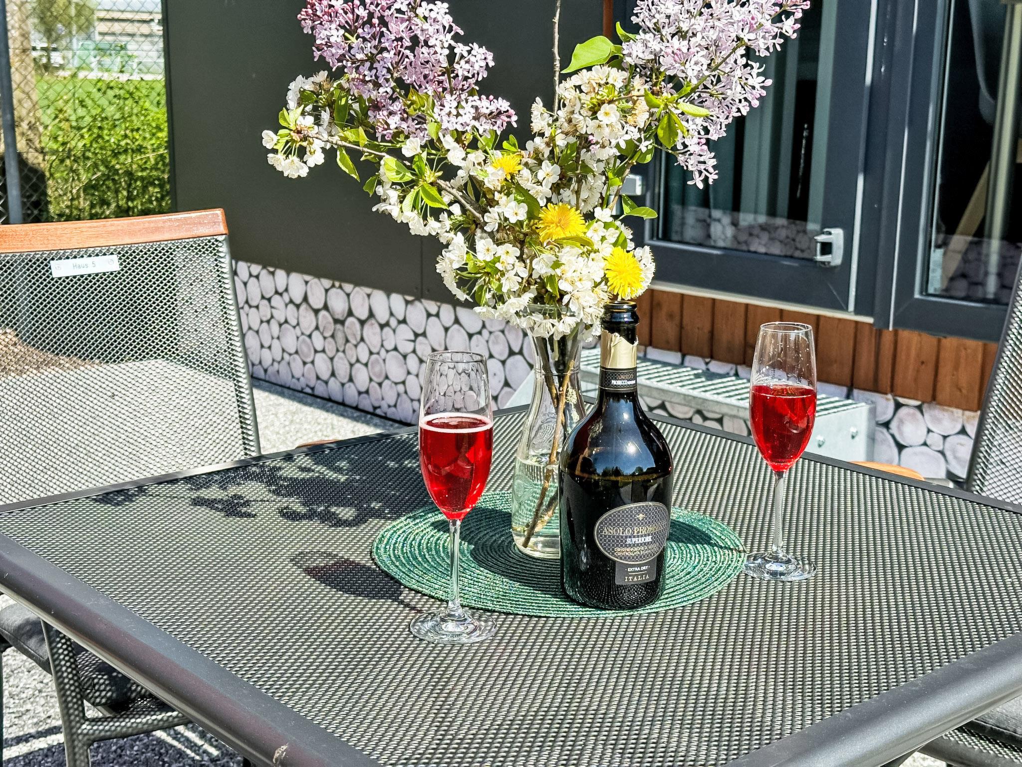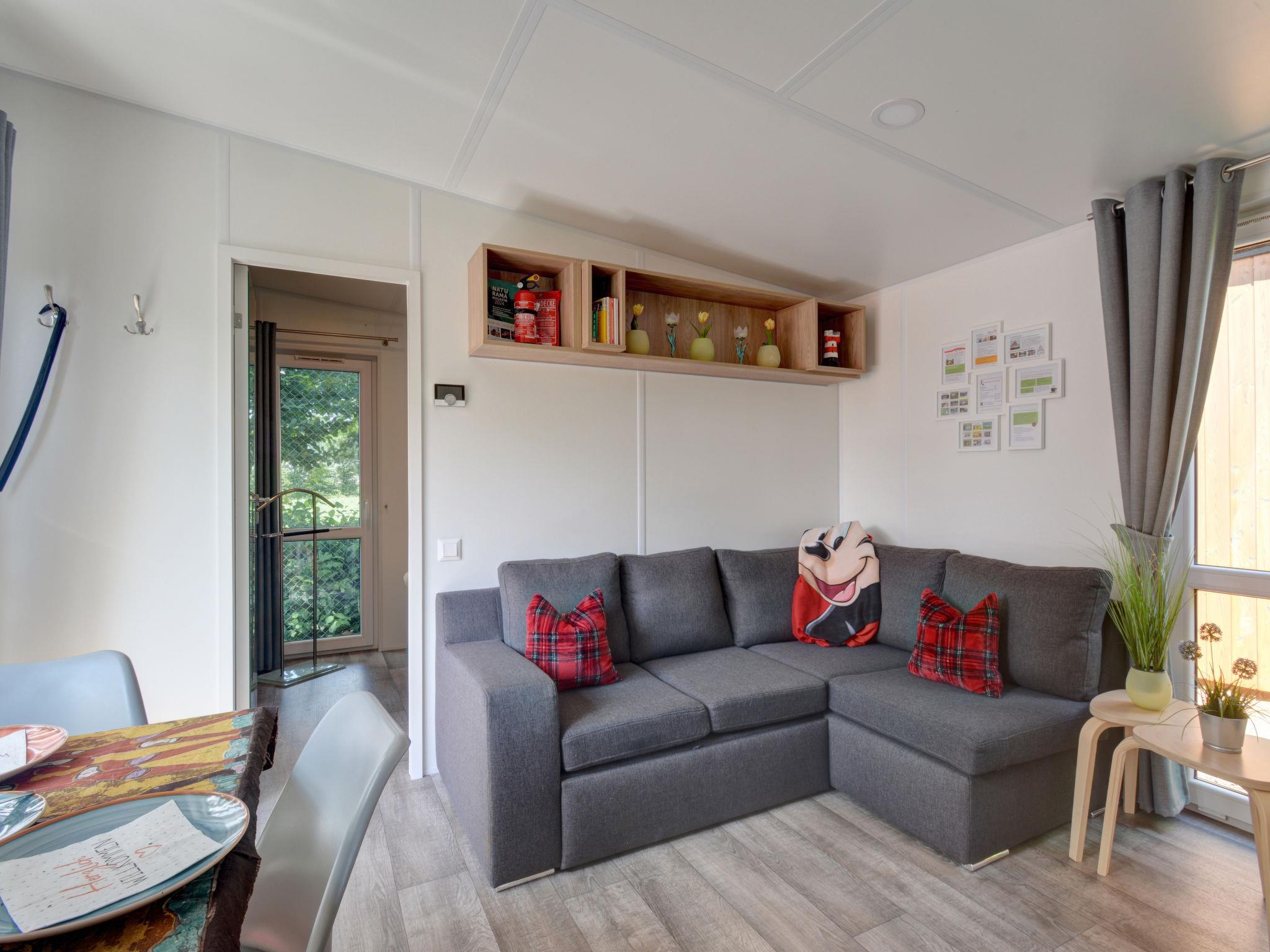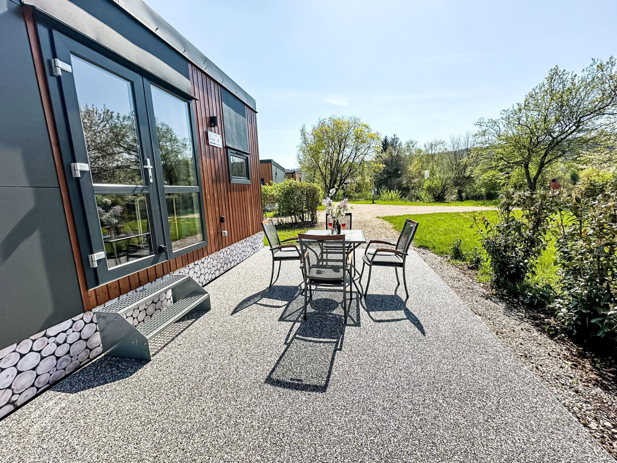 "Tiny Haus Hirschberg", 2-room mobile home 25 m2. Object suitable for 2 adults + 2 children. Cosy furnishings: living/sleeping room with 1 sofabed (120 cm, length 170 cm), satellite TV. 1 room with 1 french bed (140 cm, length 200 cm). Open kitchen (oven, Gas stove, 2 gas rings, kettle, electric coffee machine). Shower/WC. Gas heating. Large terrace 20 m2. Terrace furniture. Parking (1 car) at the house. Please note: non-smoking house. Maximum 1 pet/ dog allowed. Smoke alarm.