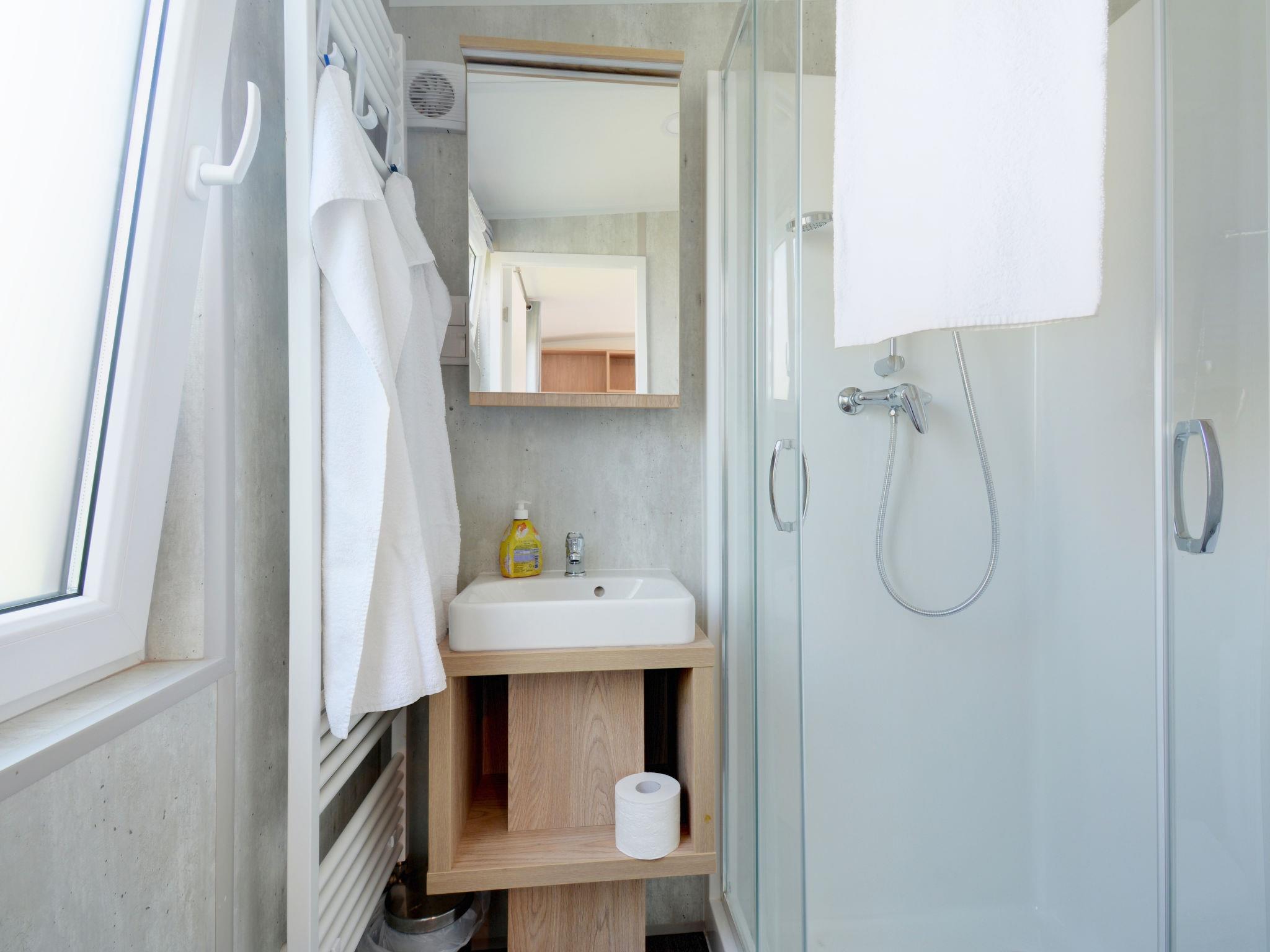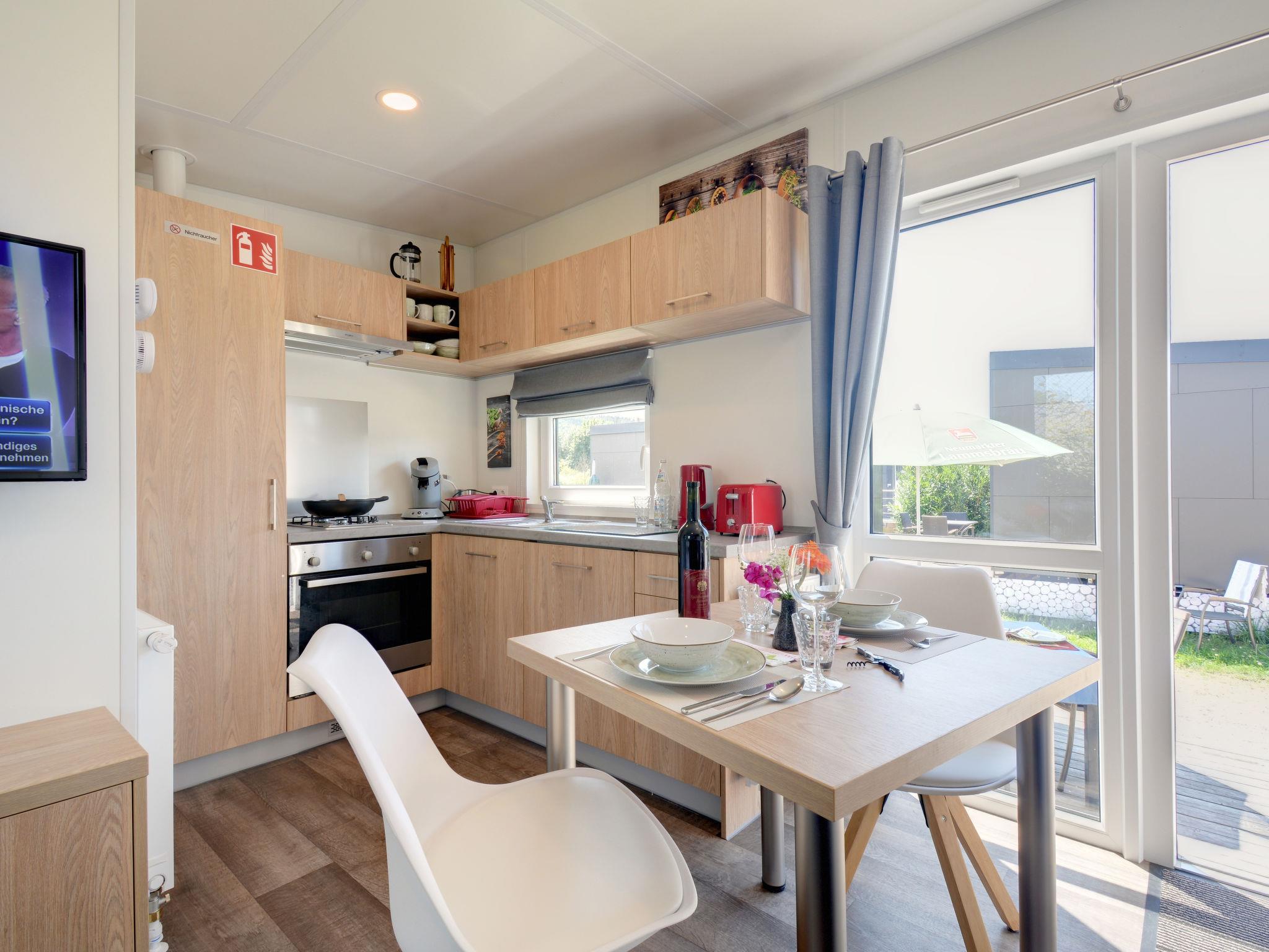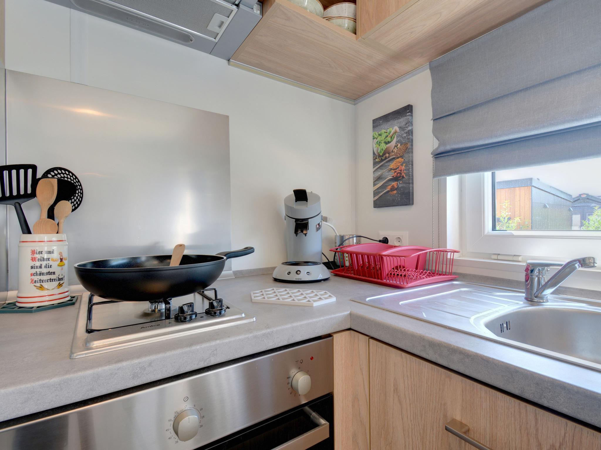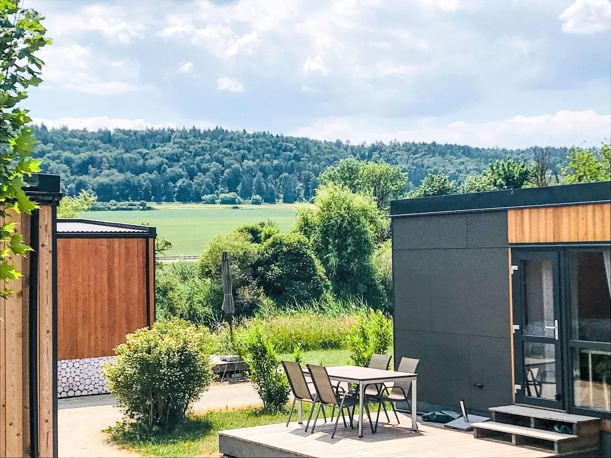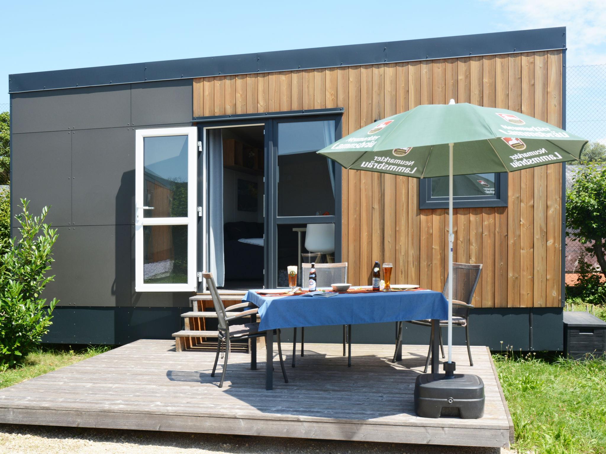"Tiny Haus Andreas", 2-room mobile home 25 m2. Object suitable for 2 adults + 2 children. Cosy furnishings: living/sleeping room with 1 sofabed (120 cm, length 170 cm), satellite TV. 1 room with 1 french bed (140 cm, length 200 cm). Open kitchen (oven, Gas stove, 2 gas rings, kettle, electric coffee machine). Shower/WC. Electric heating. Small terrace. Terrace furniture. Parking at 50 m. Please note: non-smoking house. Maximum 1 pet/ dog allowed.
