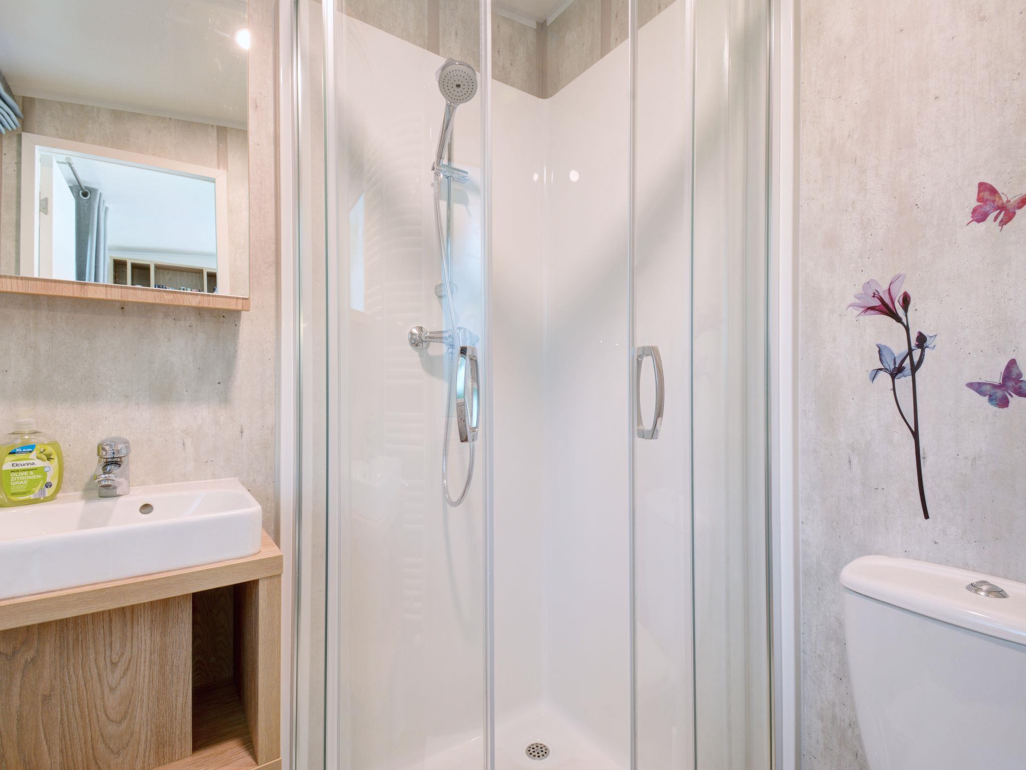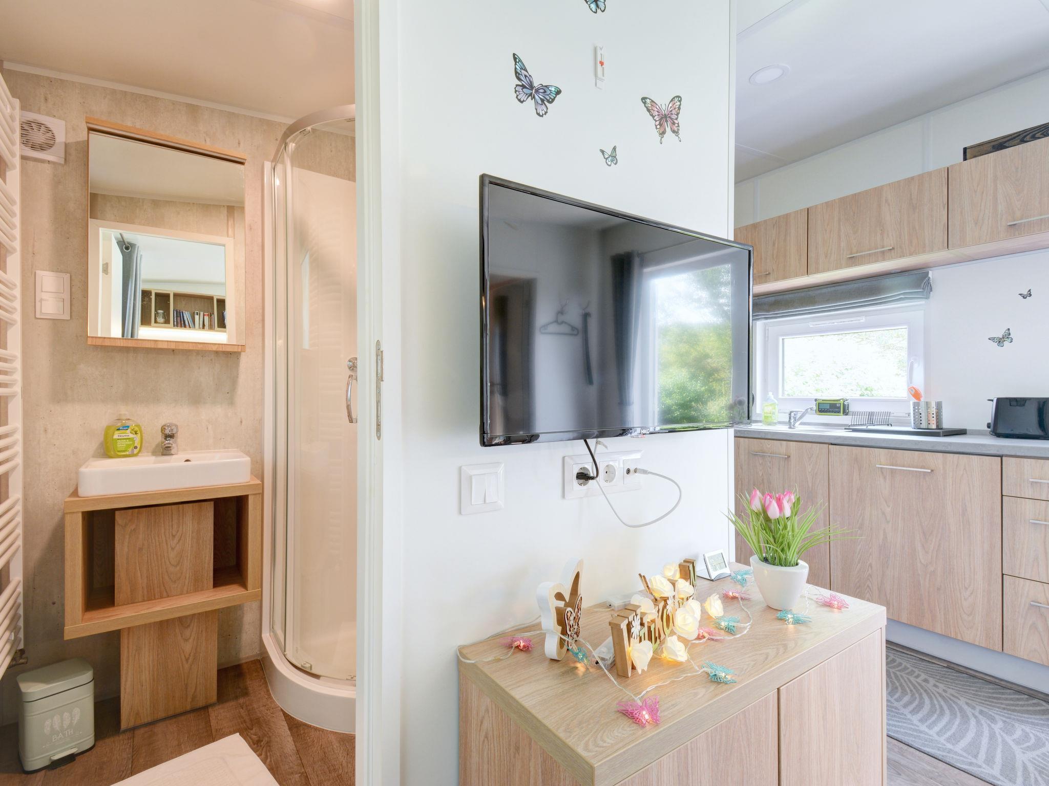 "Tiny Haus Anita", 2-room mobile home 25 m2. Object suitable for 2 adults + 2 children. Cosy furnishings: living/sleeping room with 1 sofabed (120 cm, length 170 cm), satellite TV. 1 room with 1 french bed (140 cm, length 200 cm). Open kitchen (oven, Gas stove, 2 gas rings, toaster, kettle, electric coffee machine). Shower/WC. Gas heating. Small terrace. Terrace furniture. Parking at 50 m. Please note: non-smoking house.
