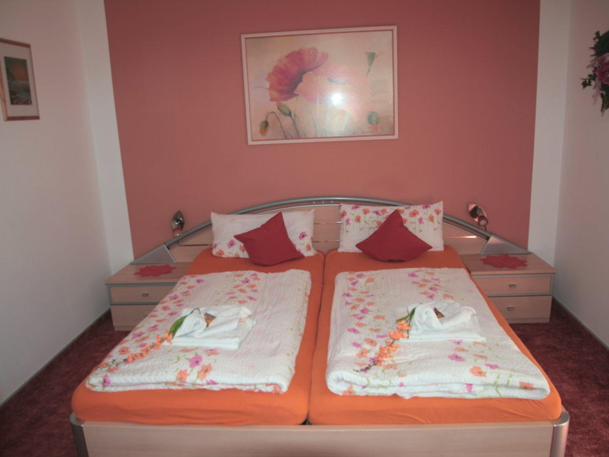 Das gemütliche südseitige Doppelzimmer im Erdgeschoß mit direktem Zugang zur Terrasse und Garten ist komplett ausgestattet. Das dazugehörige Bad mit Dusche und WC ist gegenüber und nur für sie alleine da. Sat TV mit DVD Player und Stereo Anlage sowie kostenloses WLAN sind natürlich ebenfalls vorhanden. Auf der Terrasse mit Markise steht eine bequeme Lounge Gruppe. Im Garten gibt es diverse Sitz- und Liege Möglichkeiten. Im Wintergarten können sie das Frühstück einnehmen und dort auch gemütliche Abende verbringen.