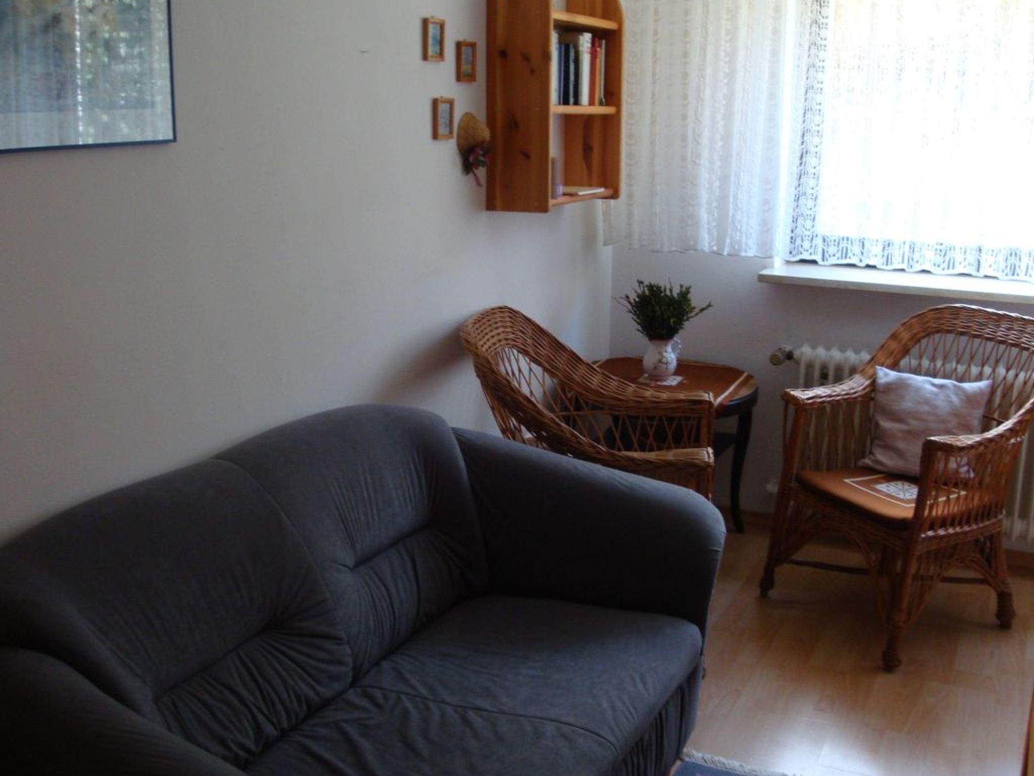 Abgeschlossene, gut ausgestattete Fewo in ruhiger Südlage in einer Wohnsiedlung, separater Eingang, Wohn-/Schlafraum mit TV, gut ausgestattete Küche mit Essplatz, zusätzlicher Schlafraum mit 1 Bett, Kinderbett vorhanden. Du/WC mit Fenster, möblierte Terrasse, großer Garten, kinderfreundlich, W-LAN, Parkplatz auf dem Grundstück, Garage für Fahrräder.