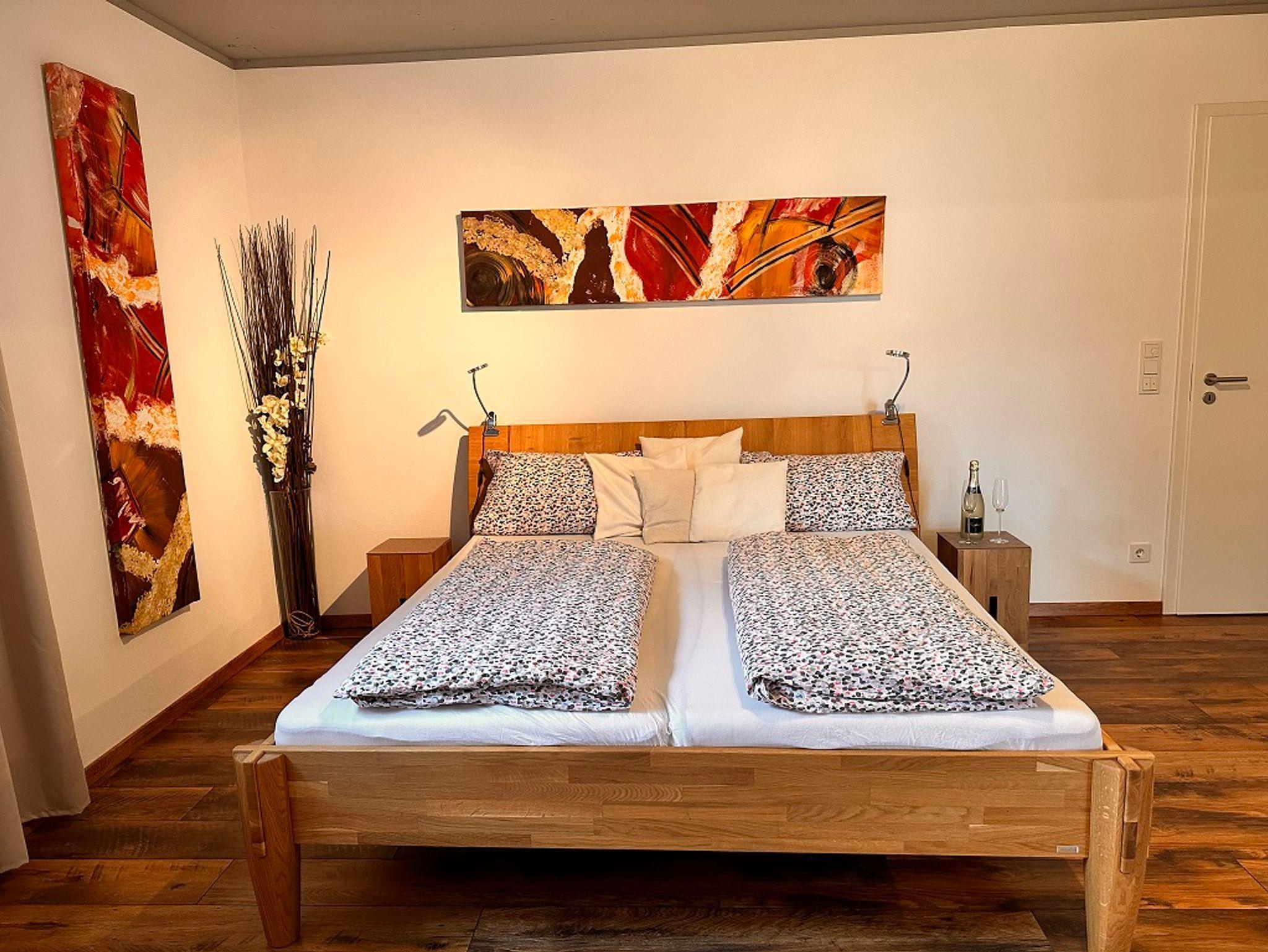 Die neu eingerichtete, harmonisch aufeinander abgestimmte Ferienwohnung, auf der Südseite im Untergeschoss unseres Hanghauses mit separatem Eingang ist 72 m² groß und verfügt über eine Küche mit Essbereich ein Wohnzimmer ein großzügiges Schlafzimmer ein Bad sowie ein separates WC. Die 35 qm großen Südterrasse ist überdacht.