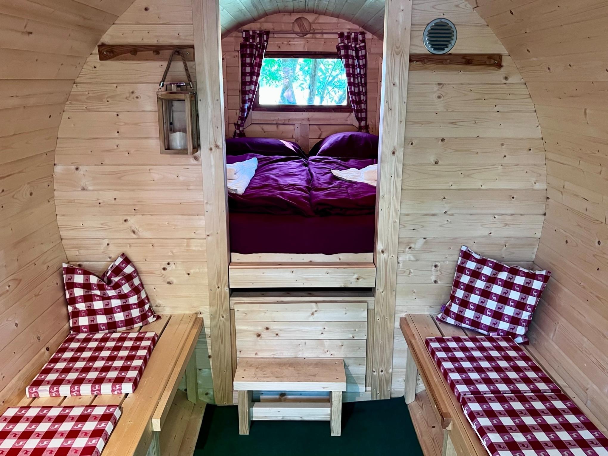 Dazu bieten wir noch eine Schlaffass an für 2 Personen.