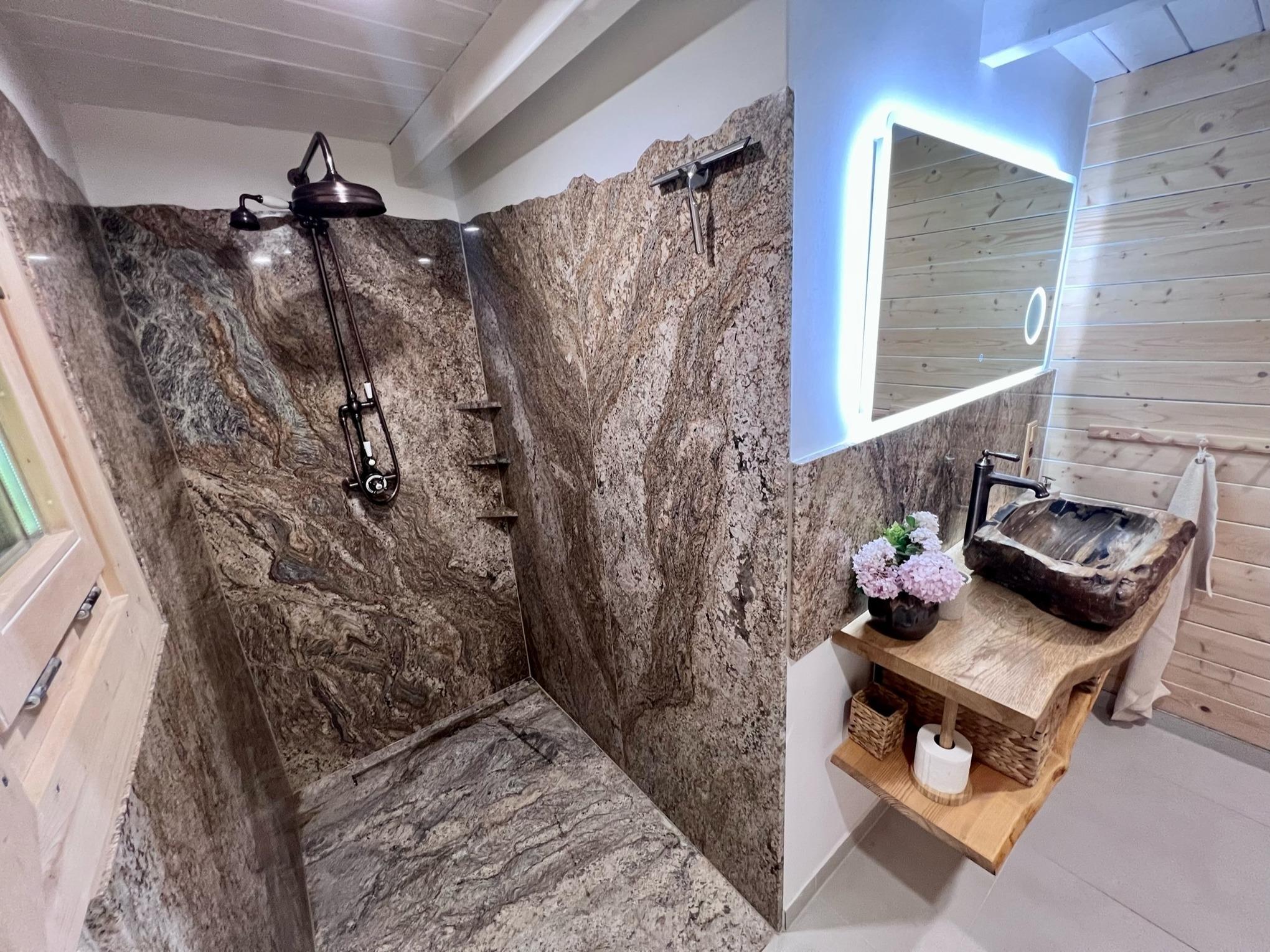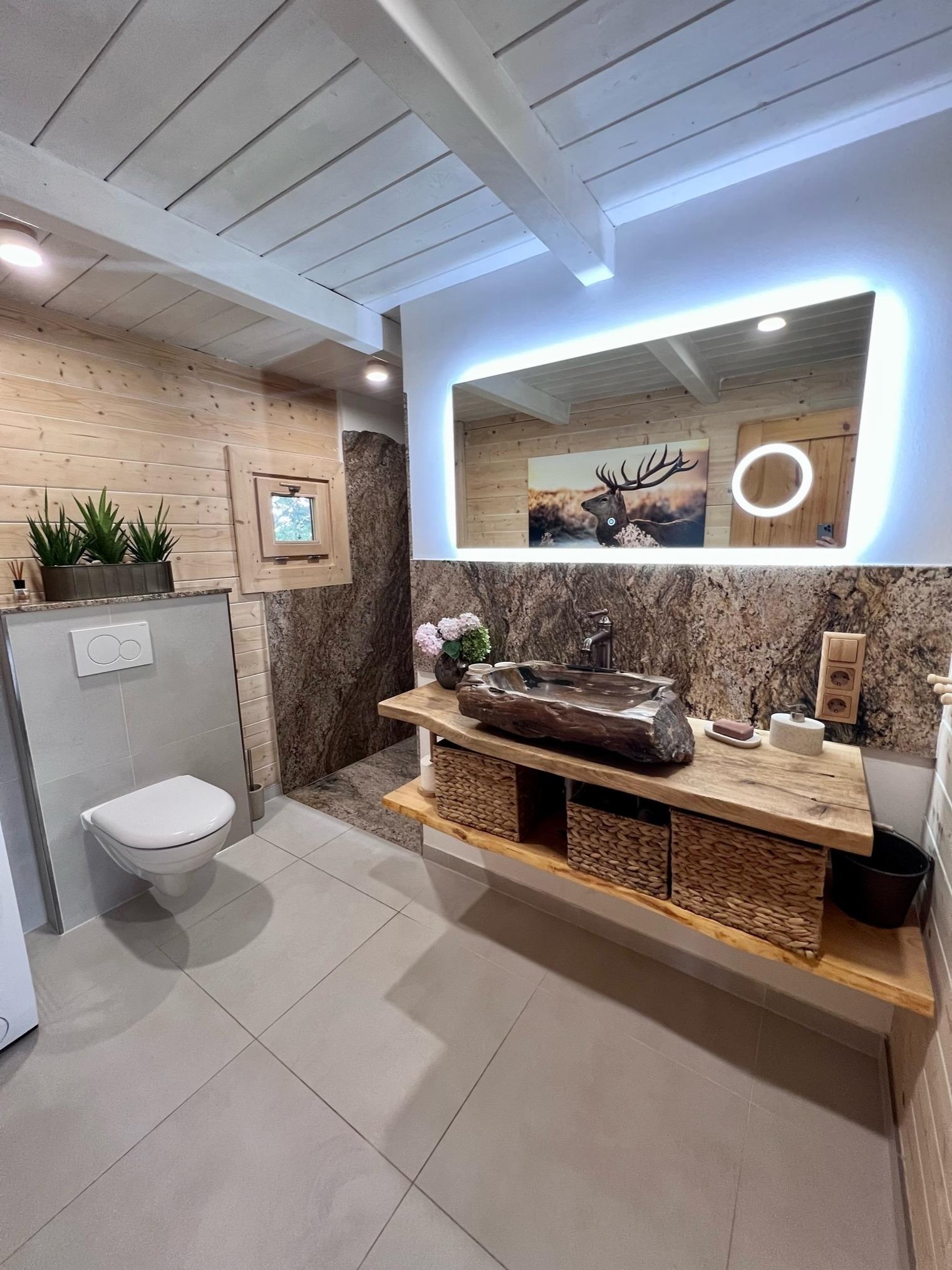 Das gemütliche Jagdhaus mit seiner hochwertigen Ausstattung hat drei separate und individuell ausgestattete Schlafzimmer, einen Wohn- Essbereich und zwei Bäder.