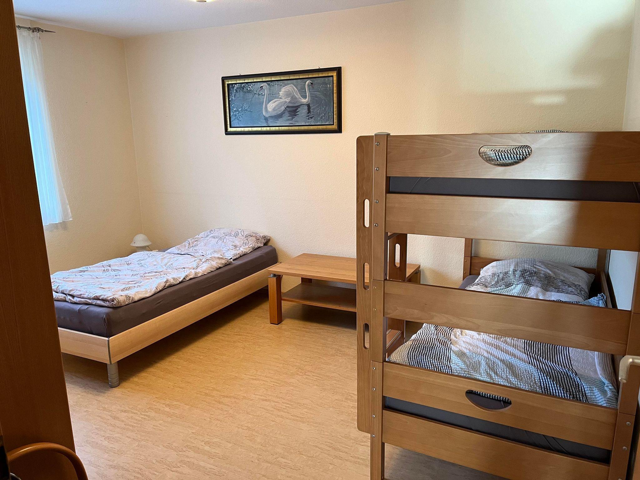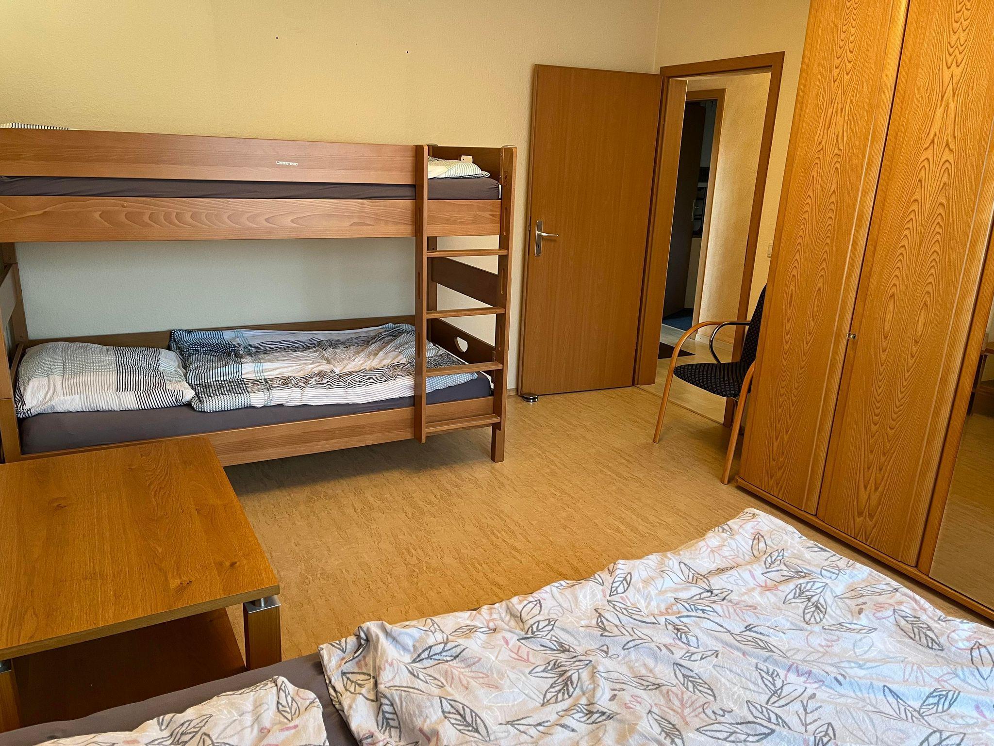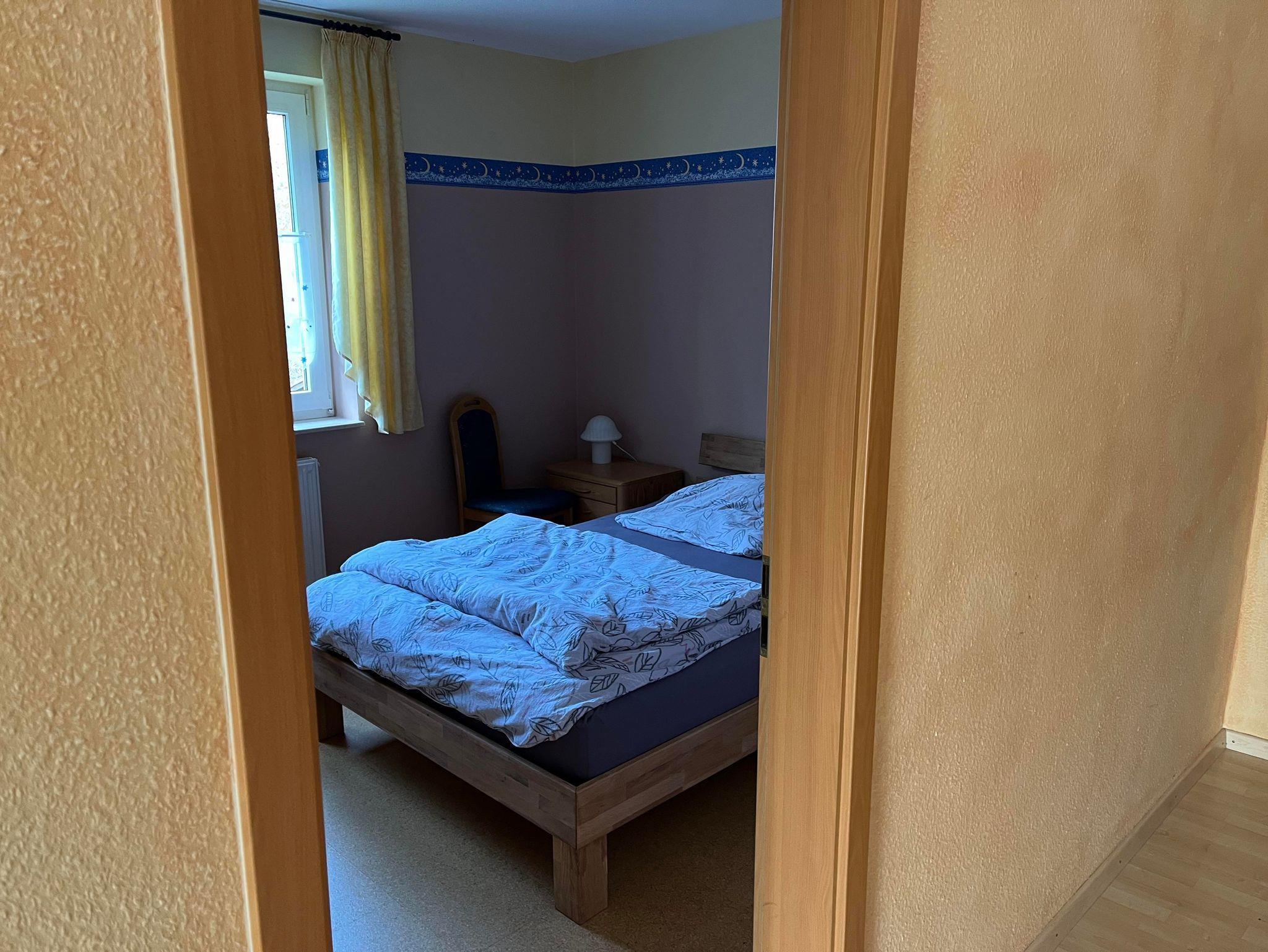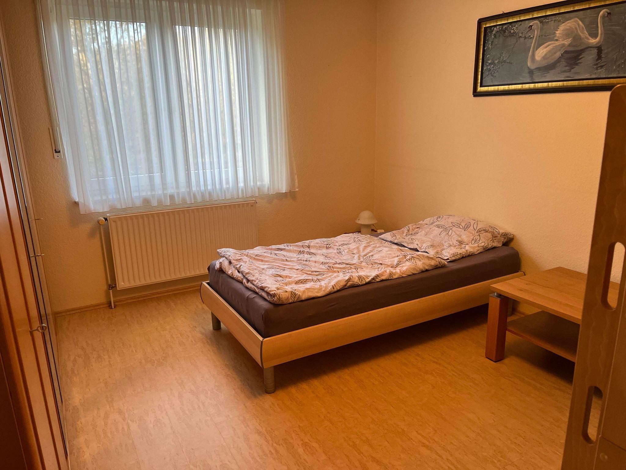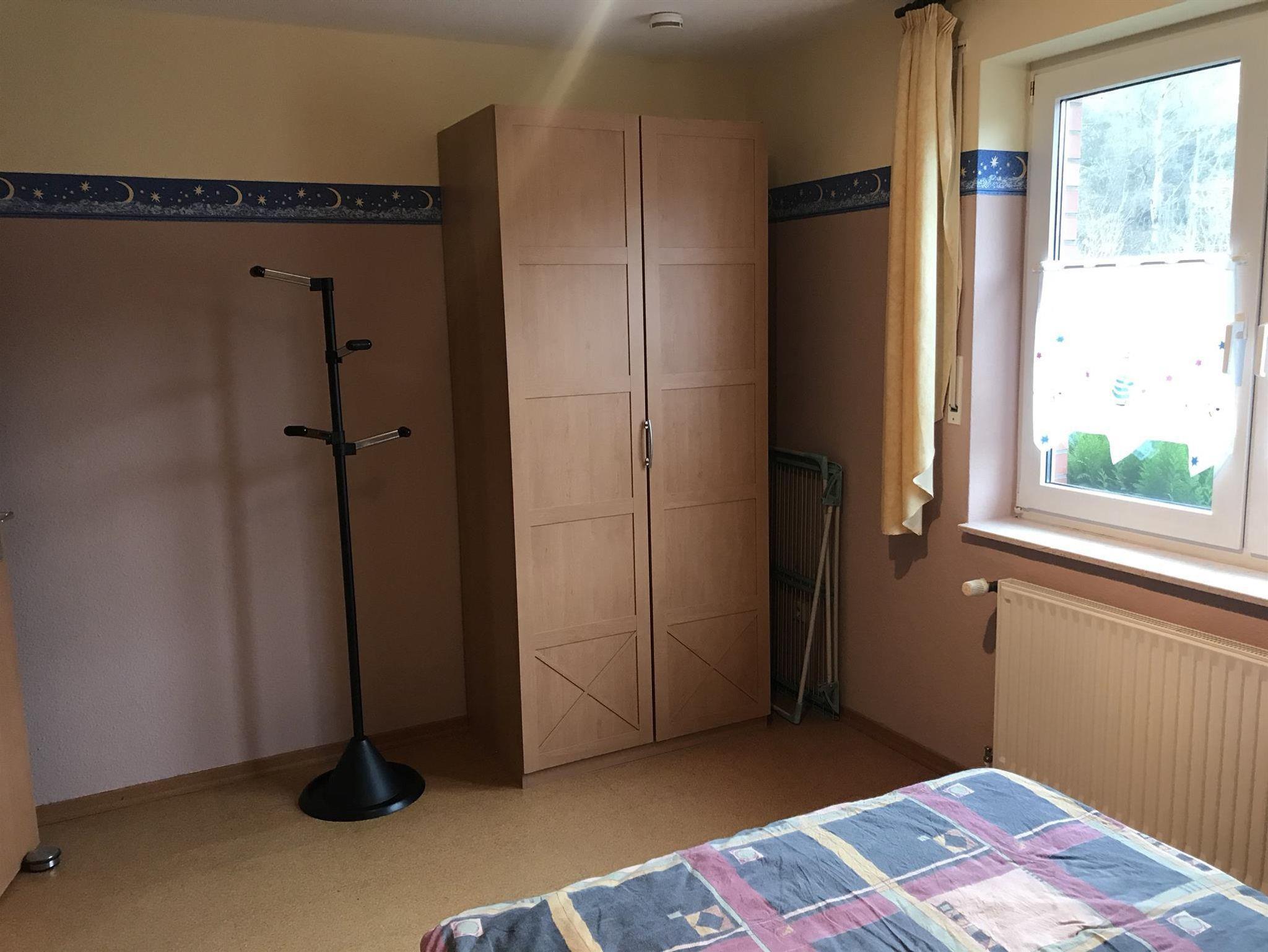 Diese helle Erdgeschosswohnung im Mehrfamilienhaus befindet sich am Rande eines Wohngebiets mit direktem Blick ins Grüne. Gerne können Sie auch im Garten den offenen Sitzplatz nutzen. Fahrradunterstellmöglichkeiten sind im Gerätehäuschen möglich. Vor dem Haus befindet sich ein PKW-Abstellplatz. Die Wohnung ist über wenige Stufen zu erreichen. Waschmaschinennutzung ist nach Absprache möglich und WLan ist vorhanden.